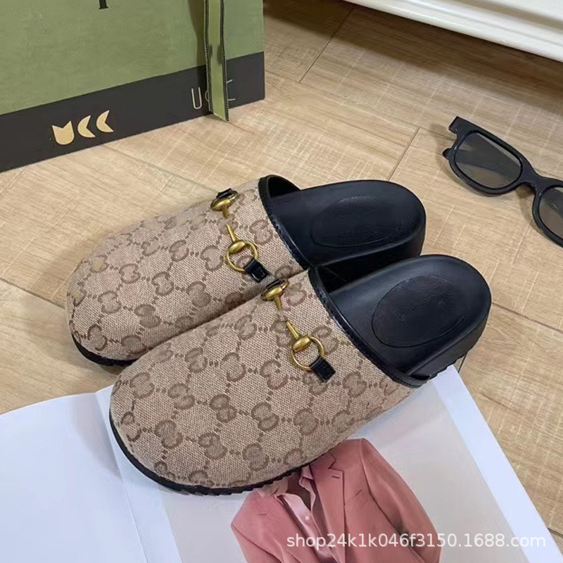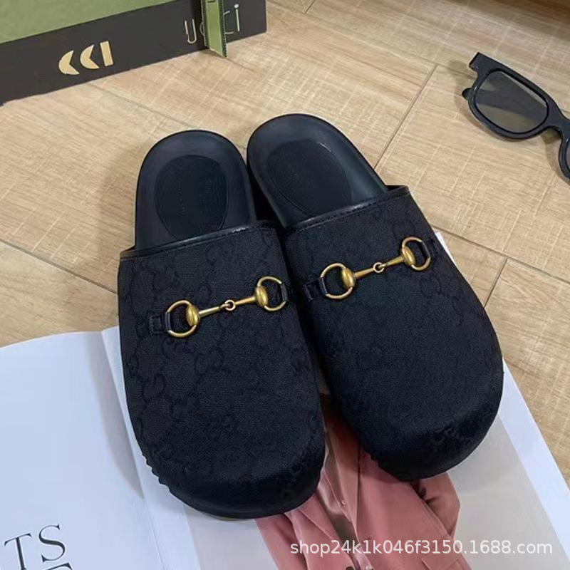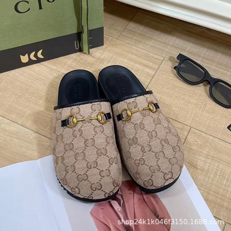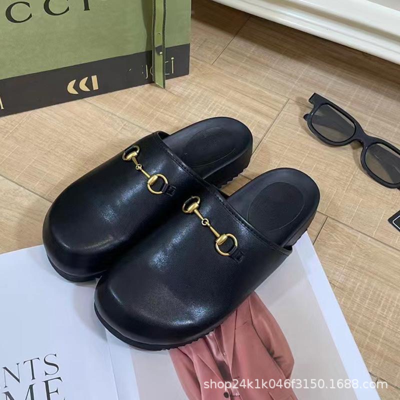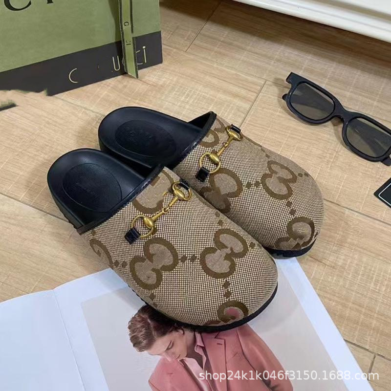 하이 버전 G 홈 Baotou 하프 지원 여성의 2024 년 이른 봄 새로운 패션 자수 외부 착용 편평한 말 버클 게으른 신발스토어 가기