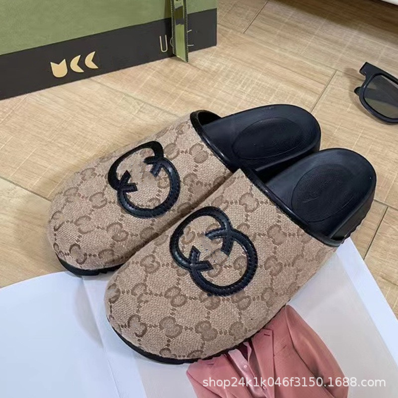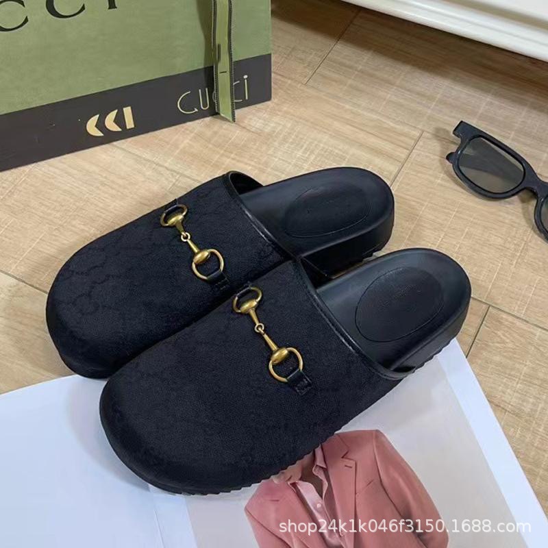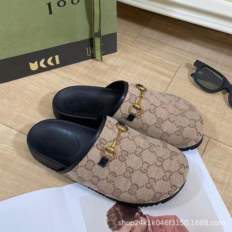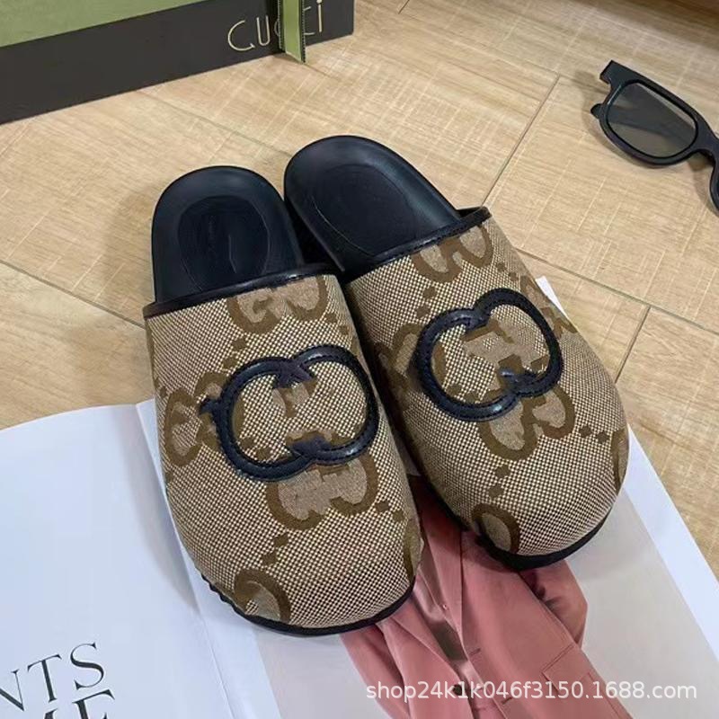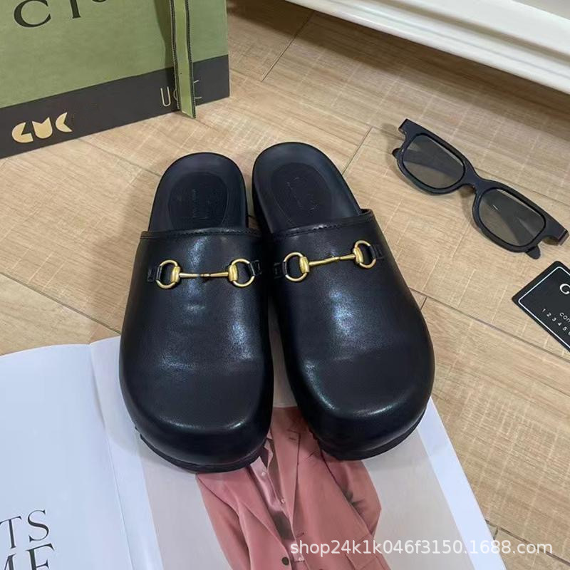 하이 버전 G 홈 Baotou 하프 지원 여성의 2024 년 이른 봄 새로운 패션 자수 외부 착용 편평한 말 버클 게으른 신발스토어 가기