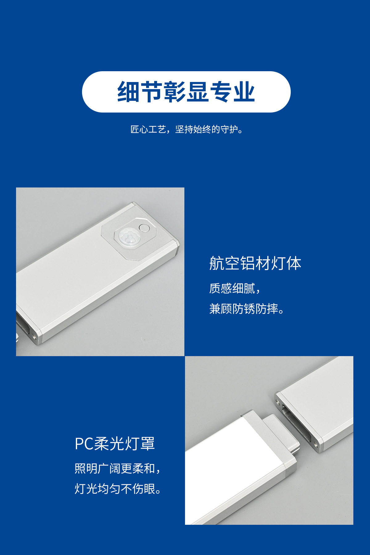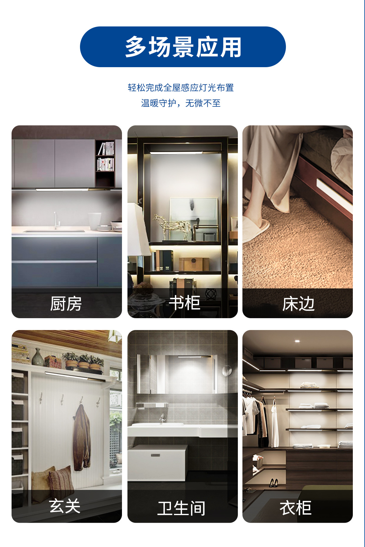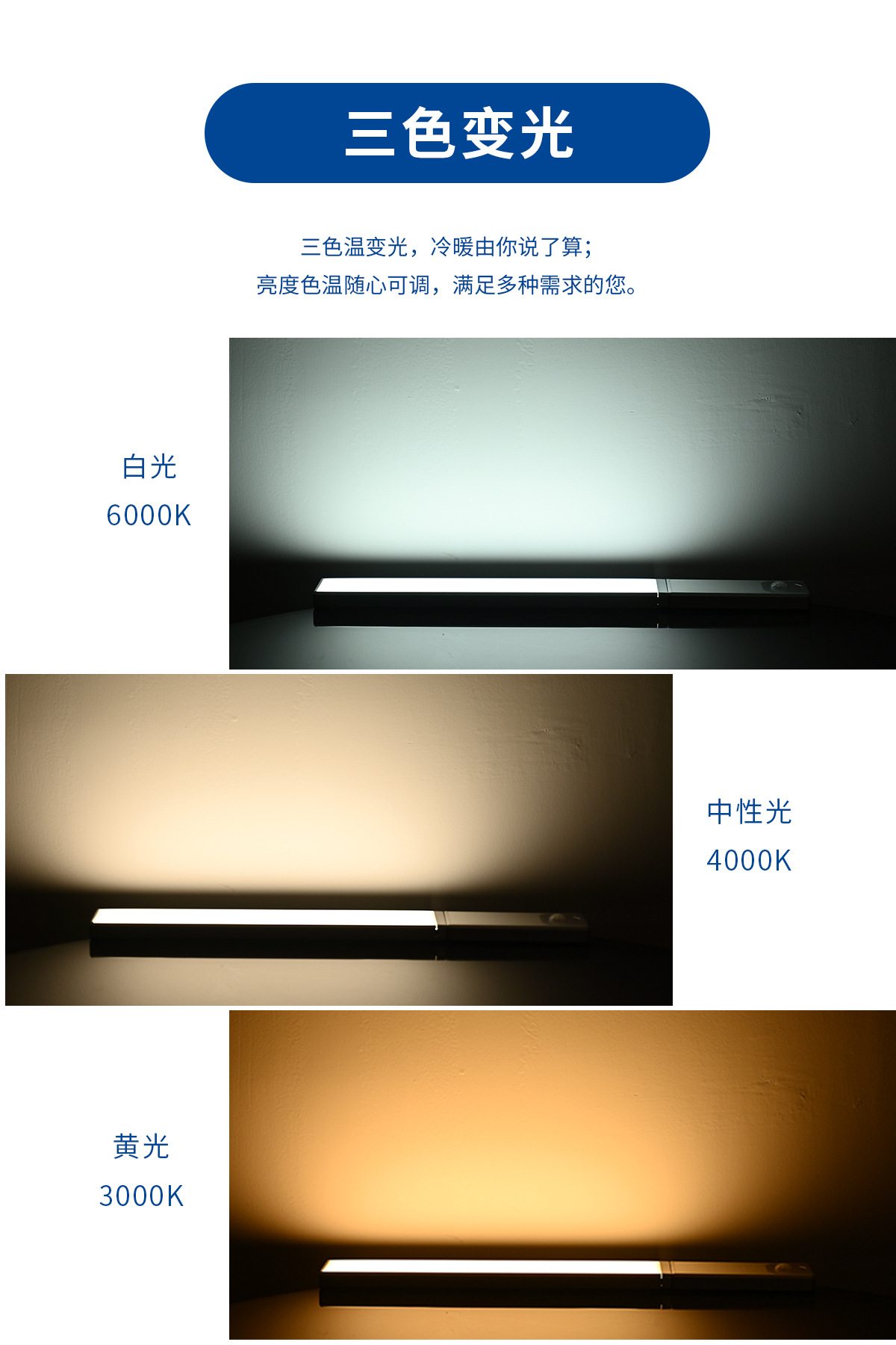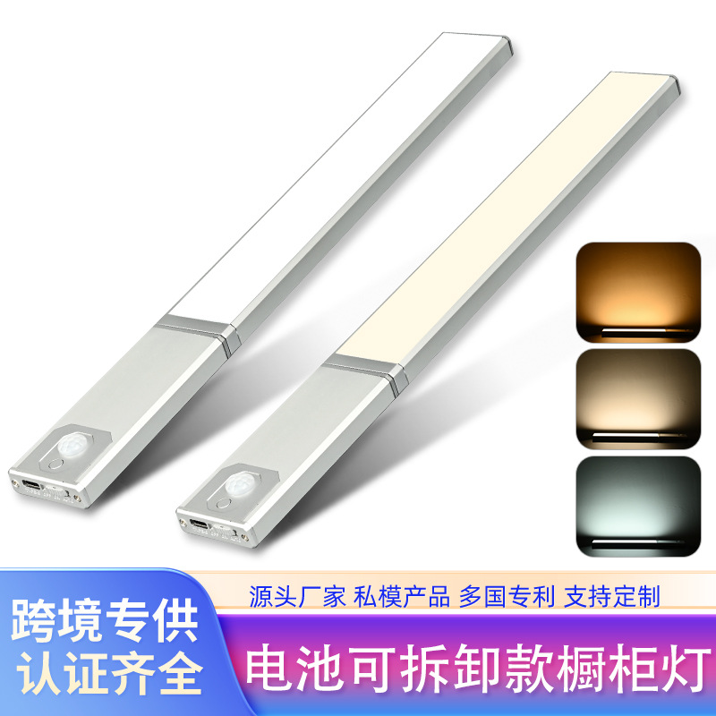 LED 새로운 바디 센서 라이트 탈착식 배터리 초박형 캐비닛 옷장 조명 분할 디밍 컬러 야간 조명