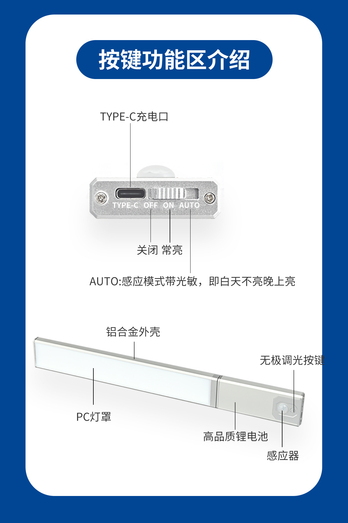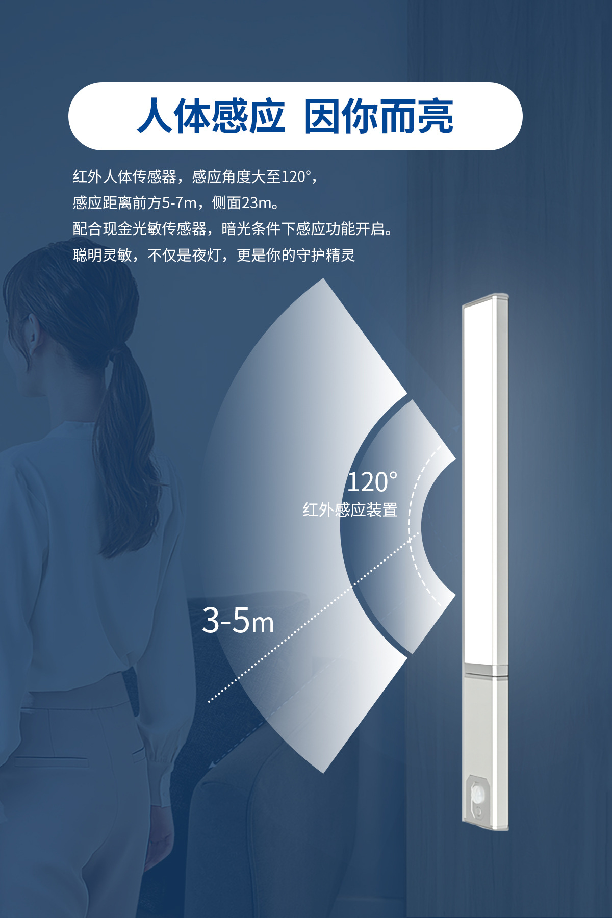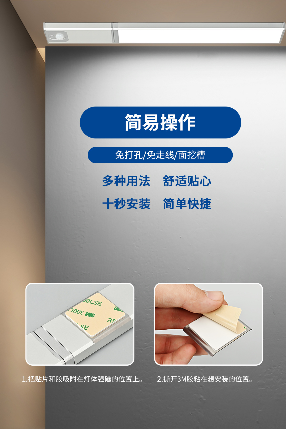 LED 새로운 바디 센서 라이트 탈착식 배터리 초박형 캐비닛 옷장 조명 분할 디밍 컬러 야간 조명