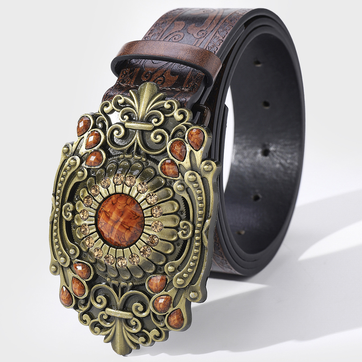 레트로 벨트 남자의 예술적 성격 pu 모조 가죽 벨트 내셔널 스타일 양각 조커 벨트 제조 업체 도매