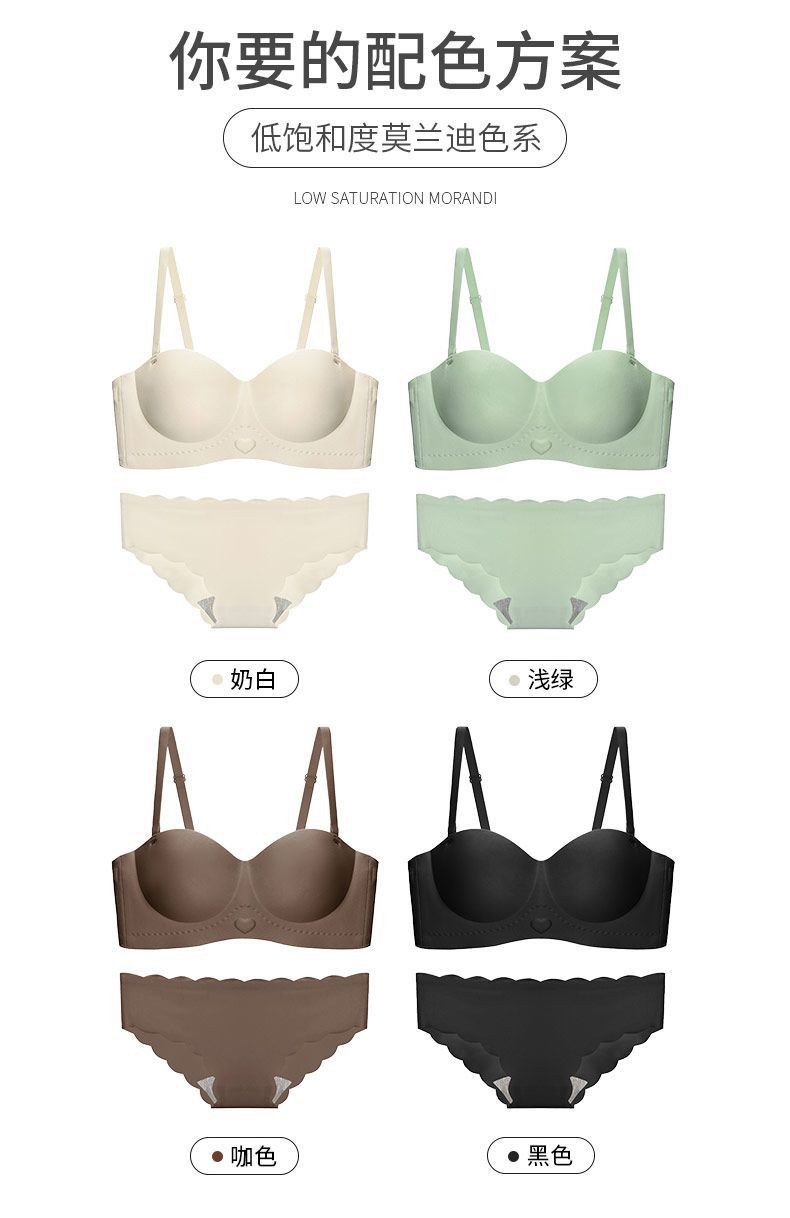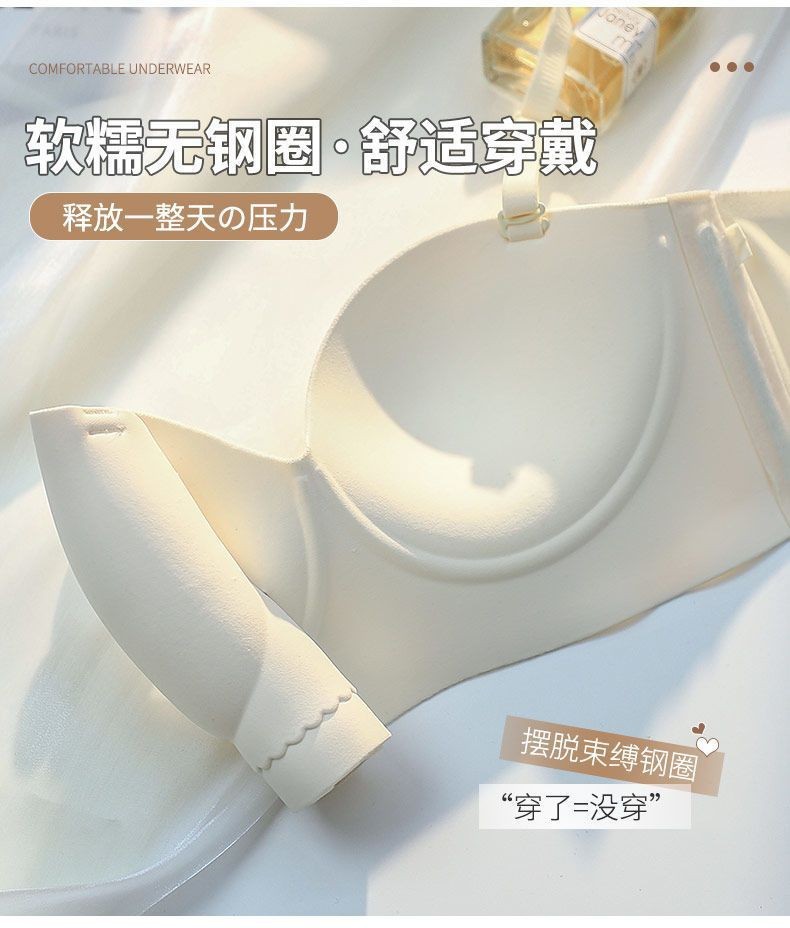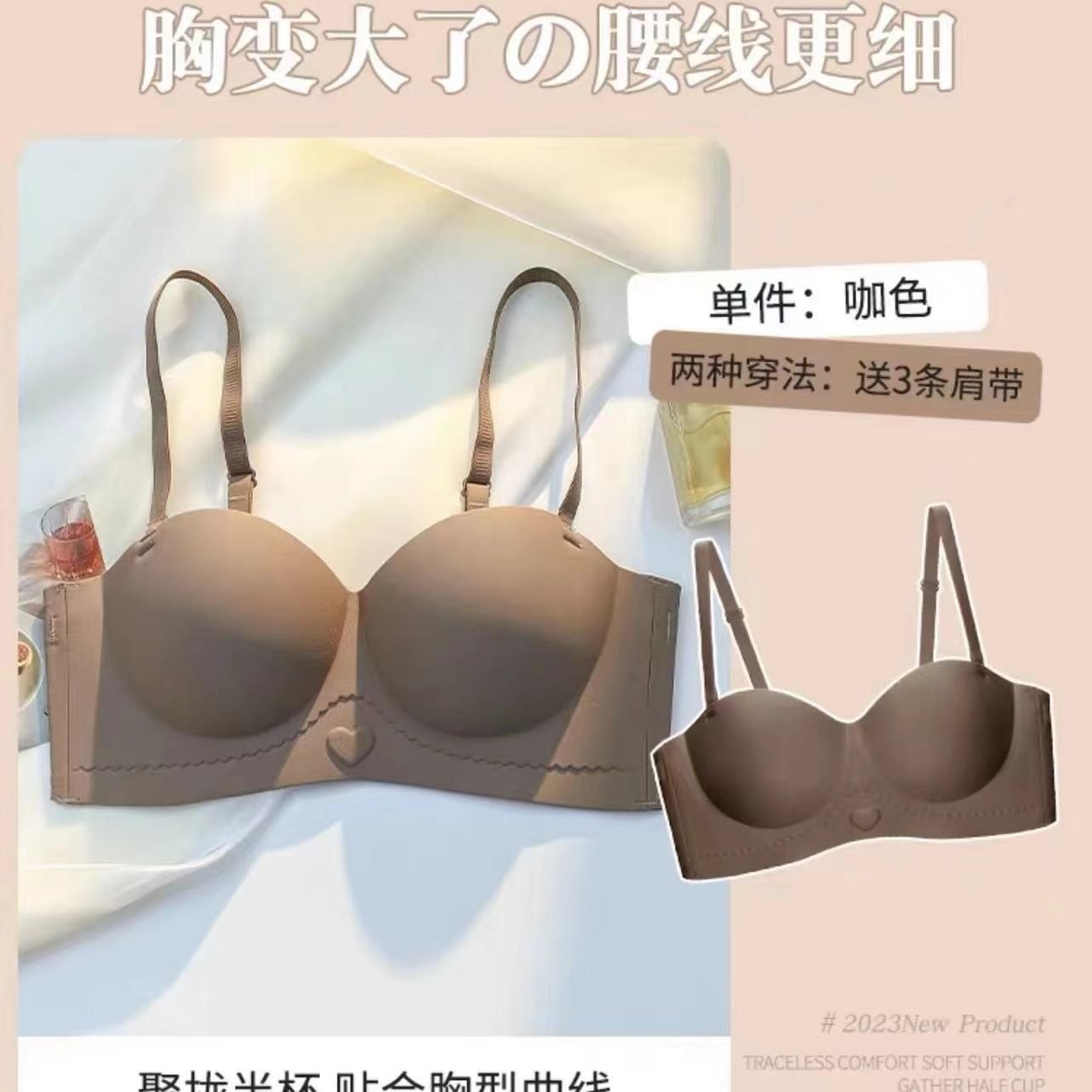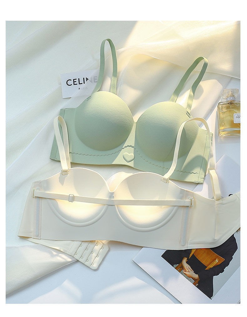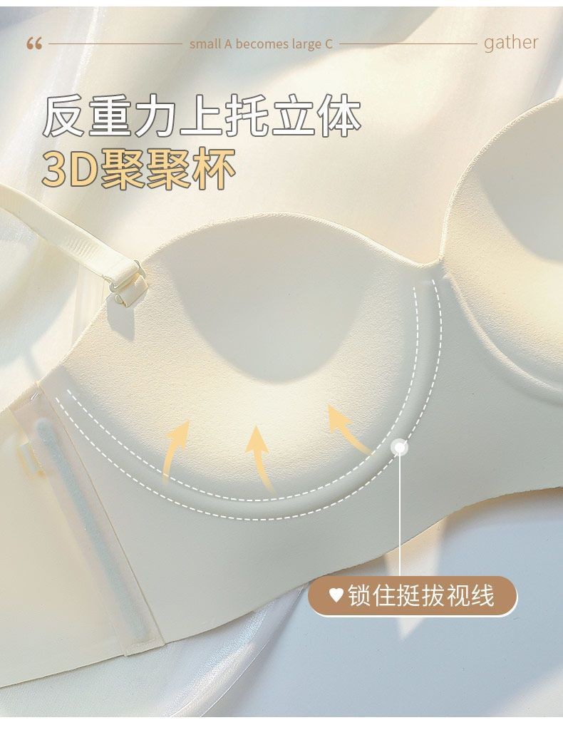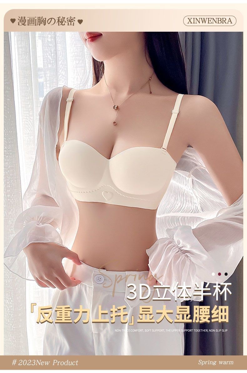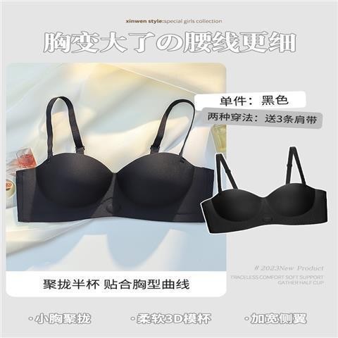 폭발적인 확장 여아 끈이 없는 속옷 여성용 작은 가슴 개더링 대형 미끄럼 방지 하프 컵 흔적없는 두꺼운 컵 브라스토어 가기