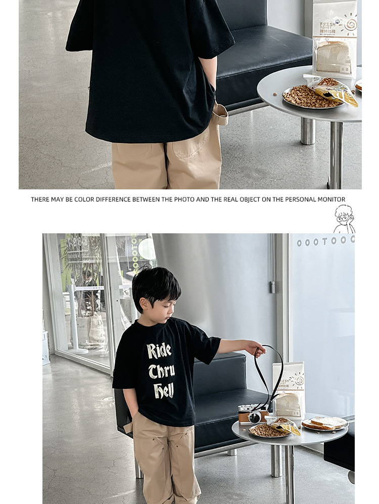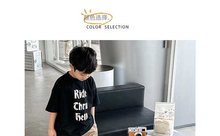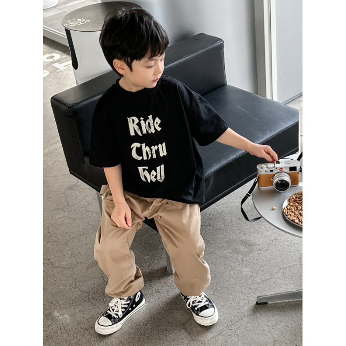 남아 반팔 2023 봄 여름 새로운 아이들의 아름다운 트렌디 루즈한 티셔츠 아기의 모든 매치 웨스턴 스타일 쿨 탑스토어 가기