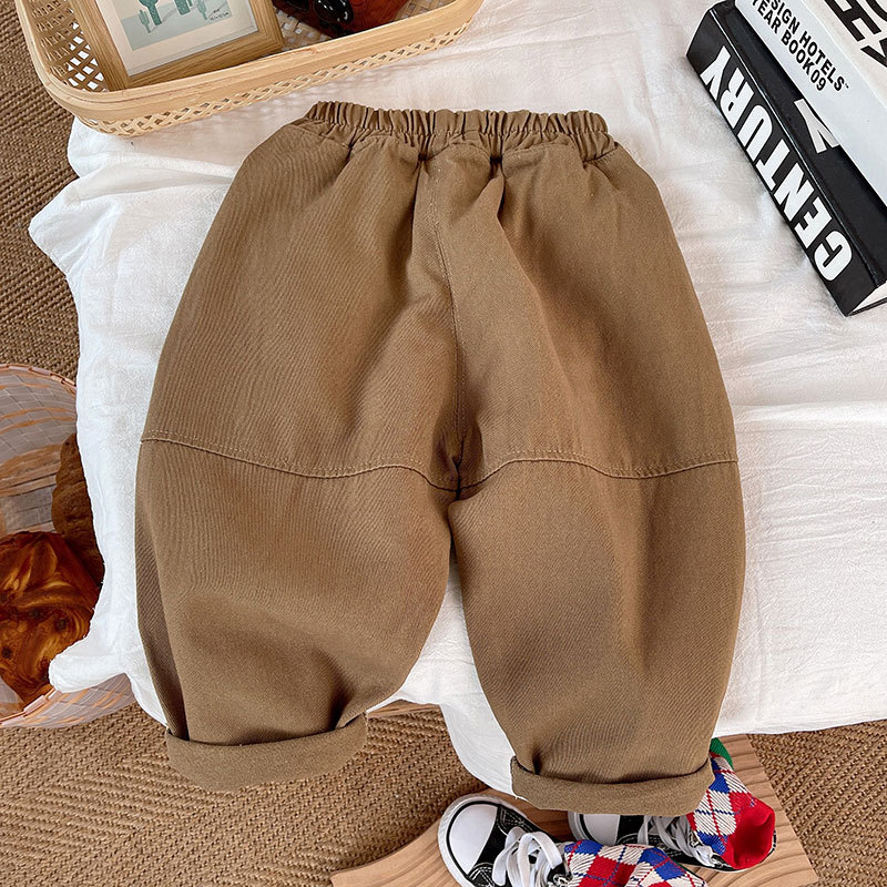 2025 새로운 소년 바지 봄 한국 스타일 캐주얼 작업복 바지 일본식 느슨한 단색 어린이 바지
