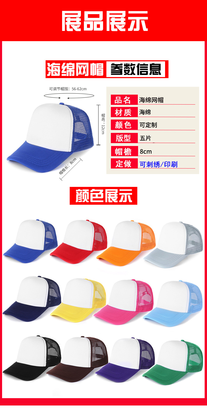 스폰지 넷 캡 인쇄 로고 광고 캡 도매 여행 모자 트럭 캡 자수 오리 혀 야구 모자스토어 가기