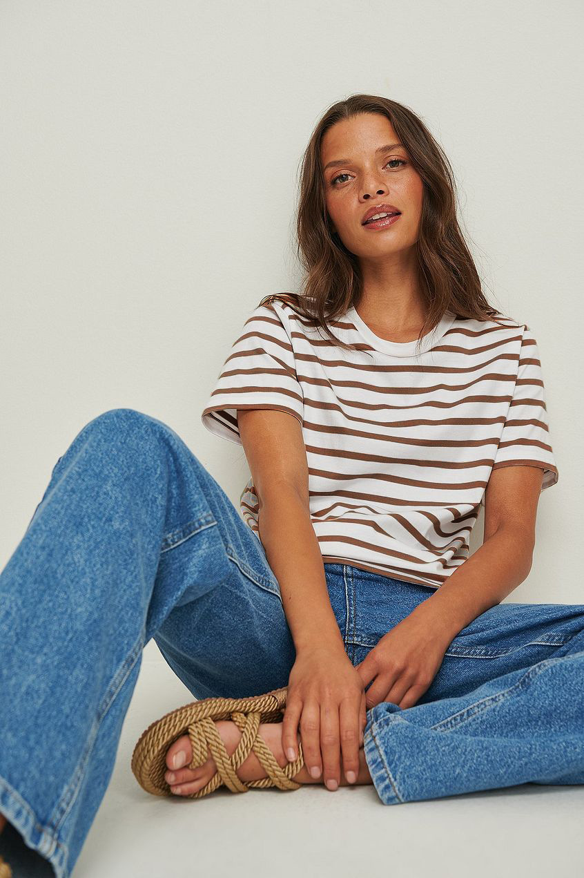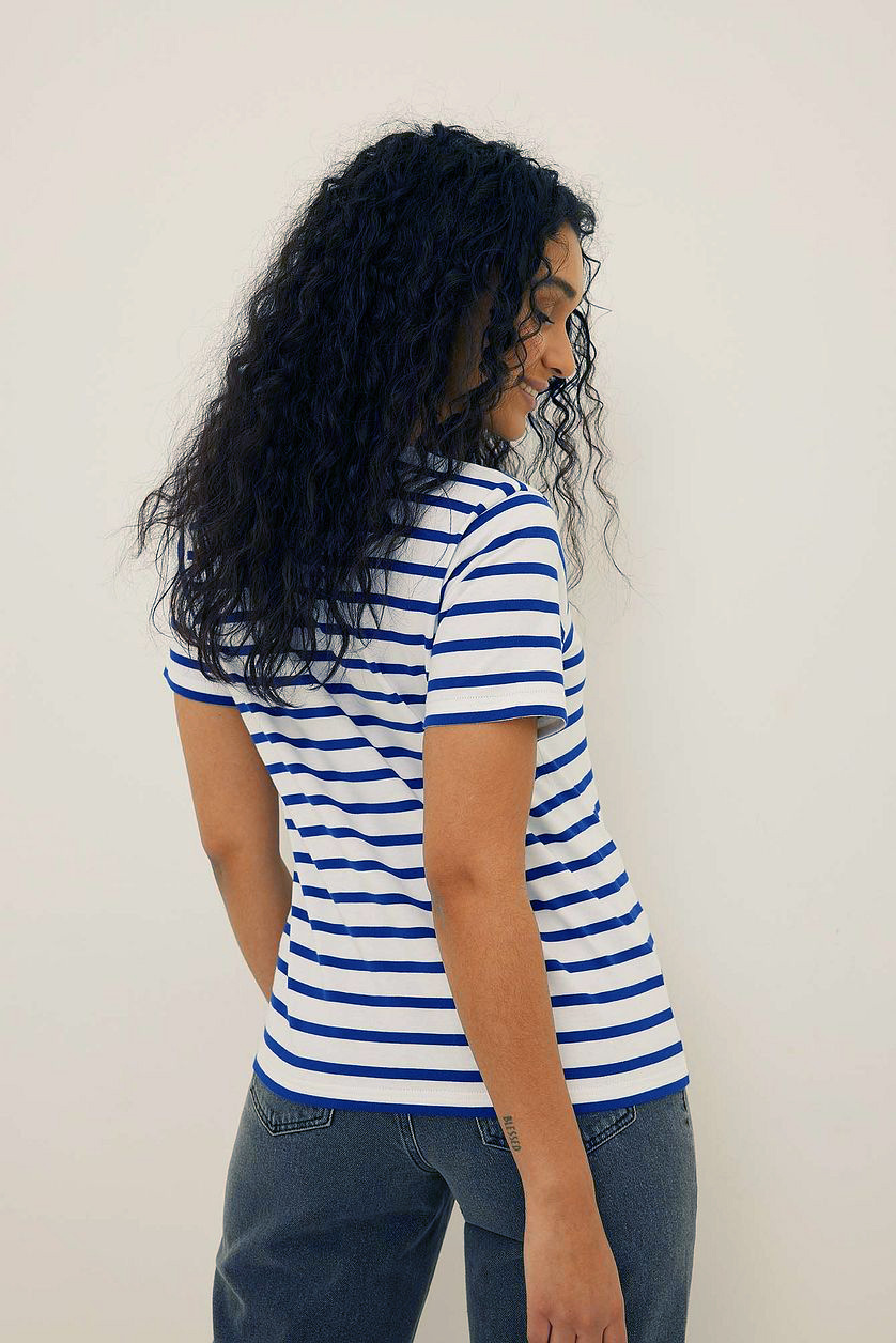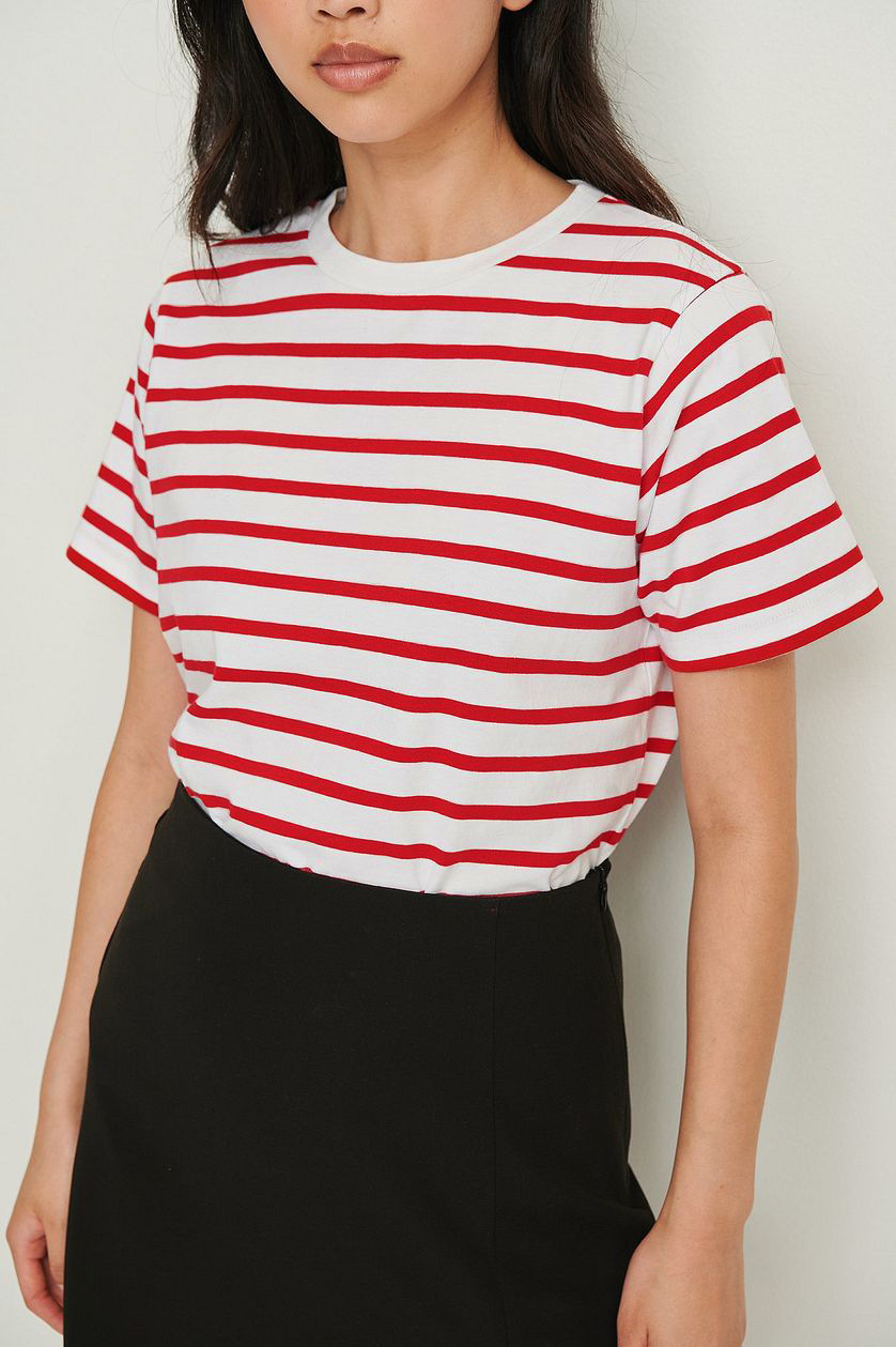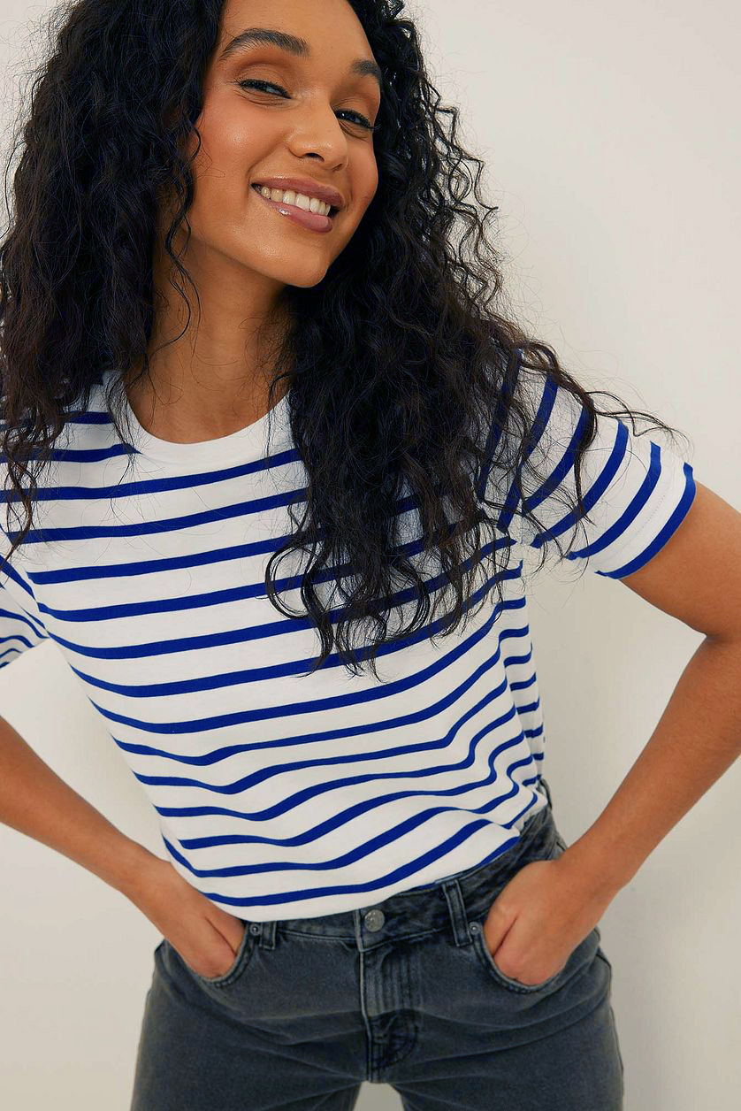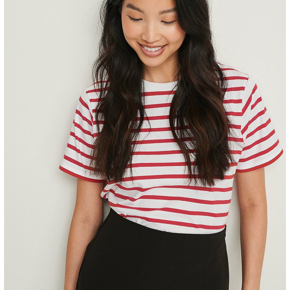 국경 라운드 넥 스트라이프 반팔 유럽과 미국 2025 봄 여름 새로운 패션 트렌드 다목적 캐주얼 반팔 스트라이프 티셔츠스토어 가기