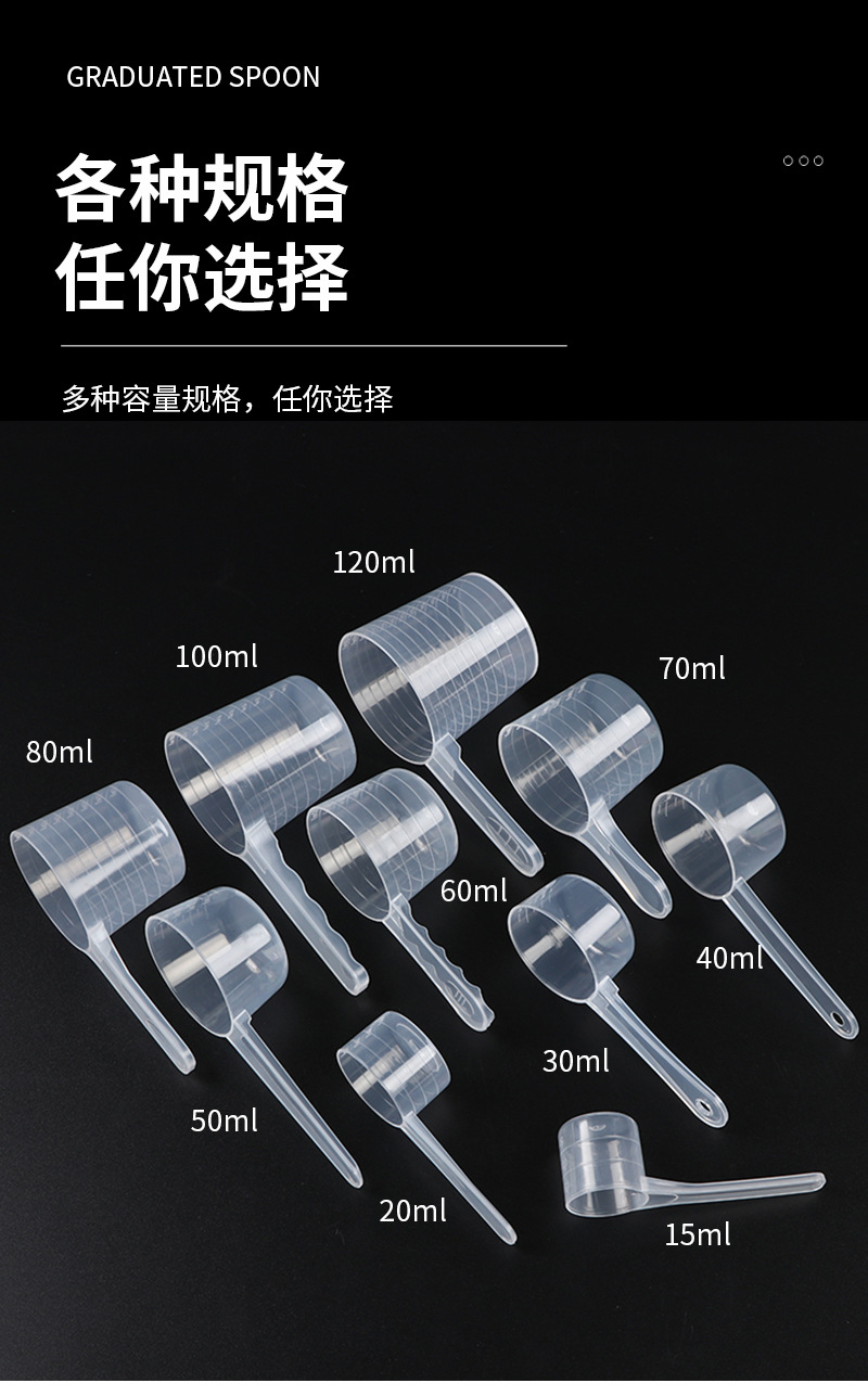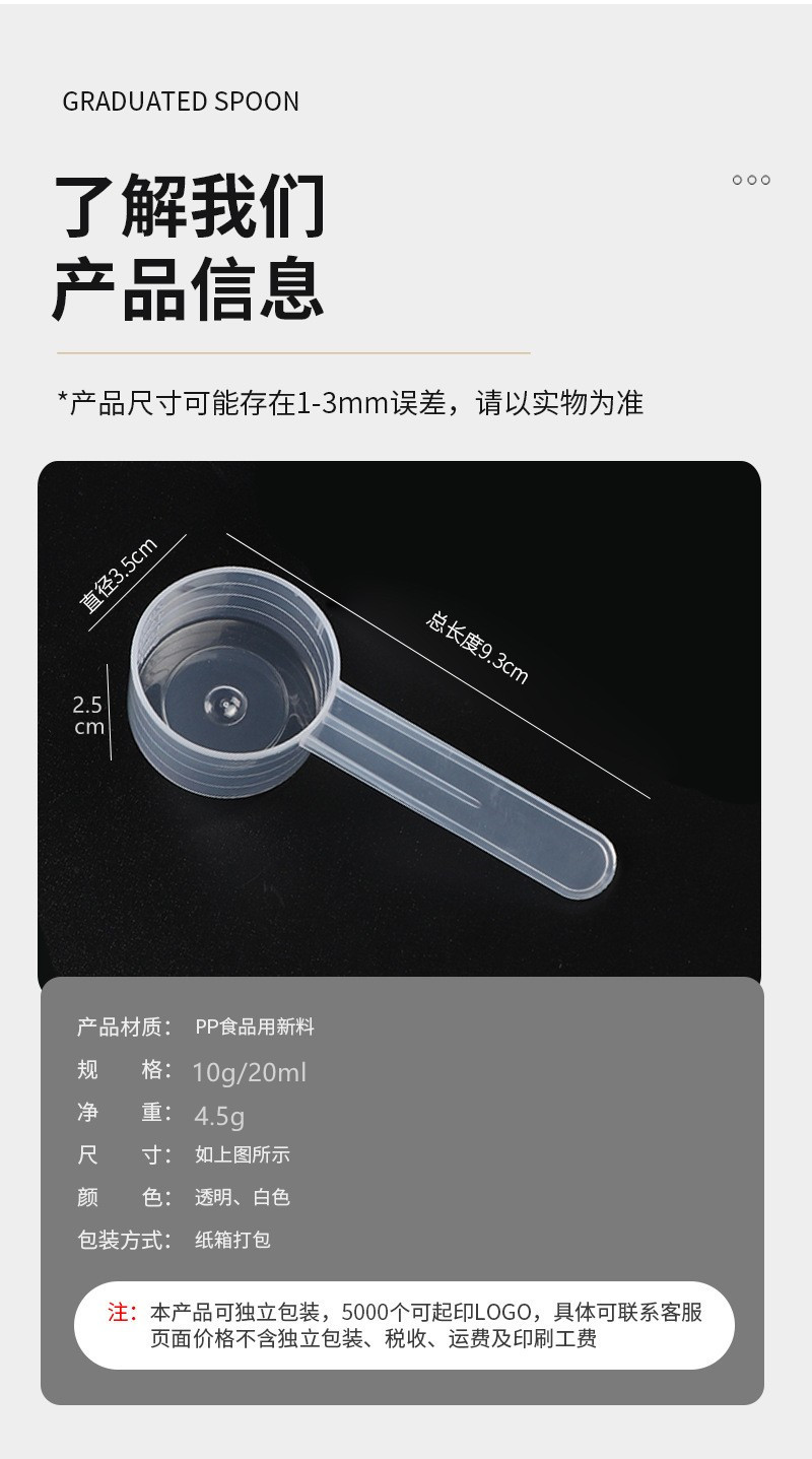 공장 직접 투명 PP 스푼 10G 20 ml 액체 스푼 ML 스케일 스푼 파우더 측정 스푼 벌크 도매스토어 가기