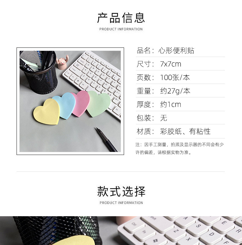 국경 간 사랑 포스트잇 노트 컬러 포스트잇 페이퍼 스틱 하트 모양의 메모장 특수 모양의 메모장 메시지 메모 스티커스토어 가기