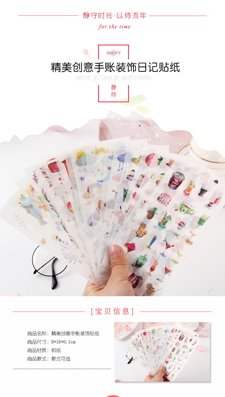 창조적 인 손 계정 스티커 작은 신선한 귀여운 소녀 심장 일기 손 계정 DIY 좋은 접시 장식 스티커 세트 6