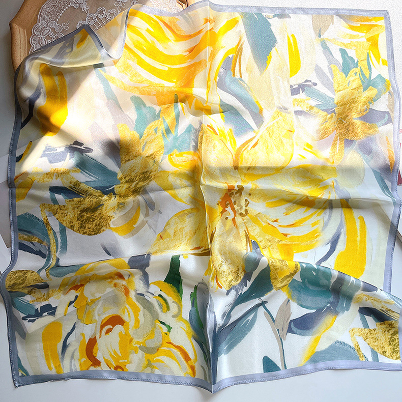 Guofeng 복고풍 꽃 실크 여성 목 스카프 소프트 실크 스카프 뽕나무 실크 새틴 스퀘어 스카프 다양한 도매