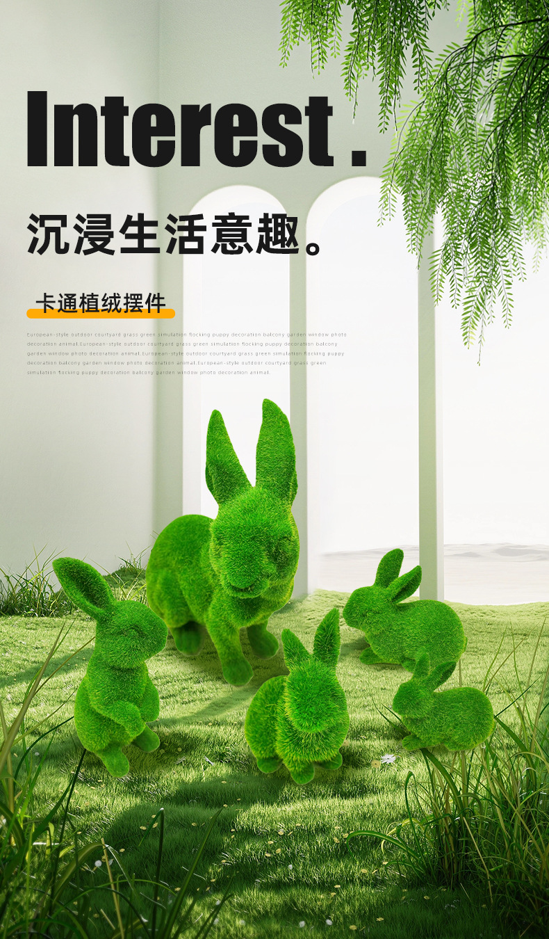 유럽식 수지 시뮬레이션 몰려 드는 토끼 가정 정원 안뜰 잔디 야외 창 촬영 동쪽 장식품