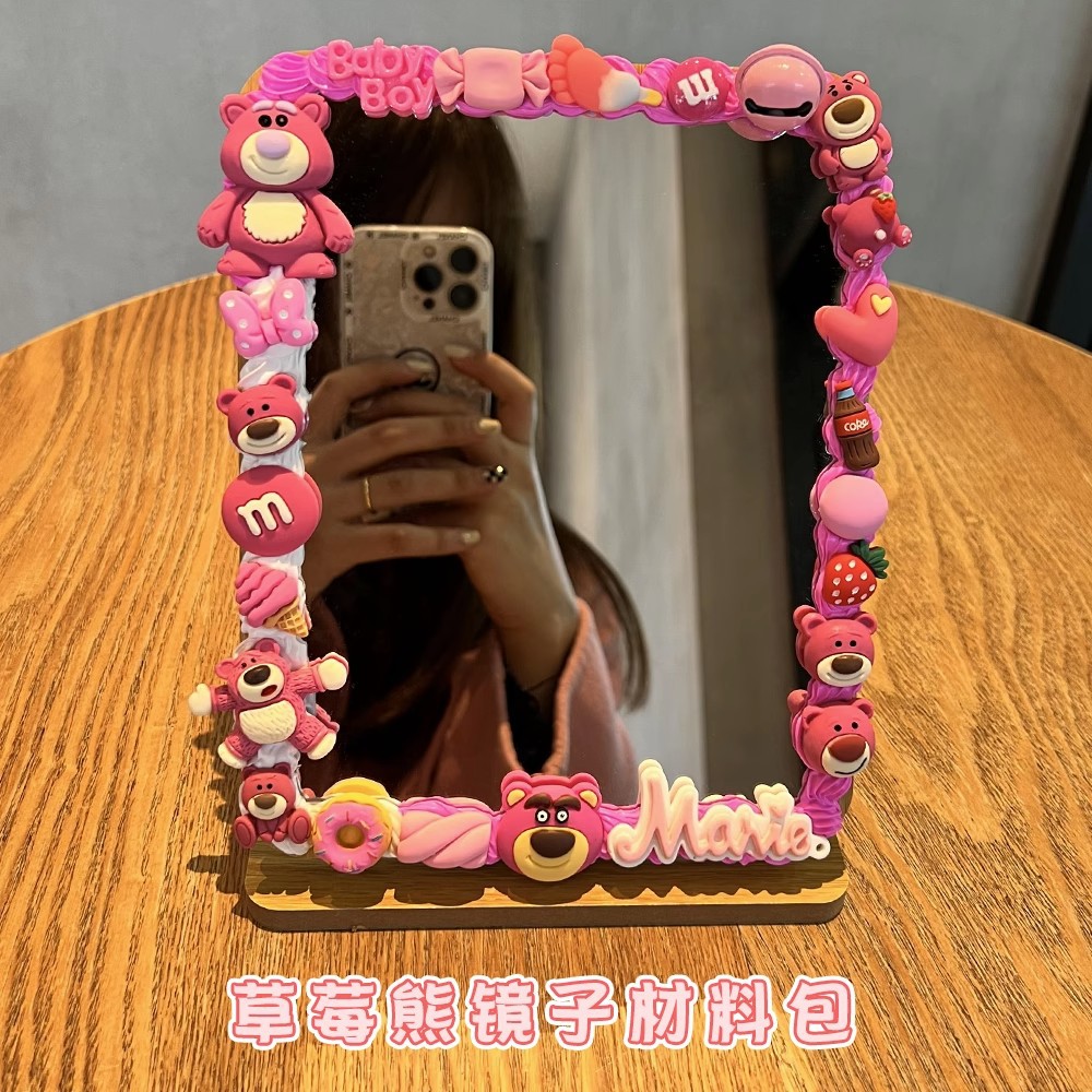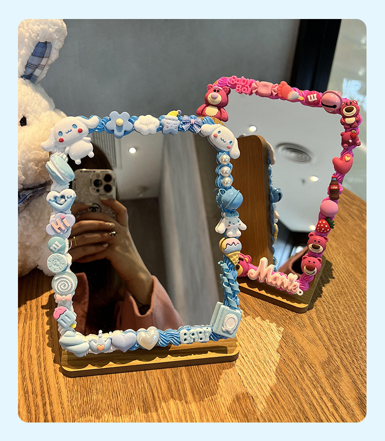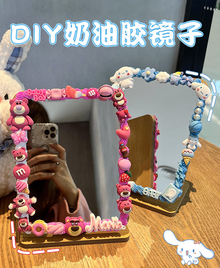 크리 에이 티브 크림 접착제 거울 수제 DIY 재료 가방 나무 접는 메이크업 거울 홈 기숙사 거울