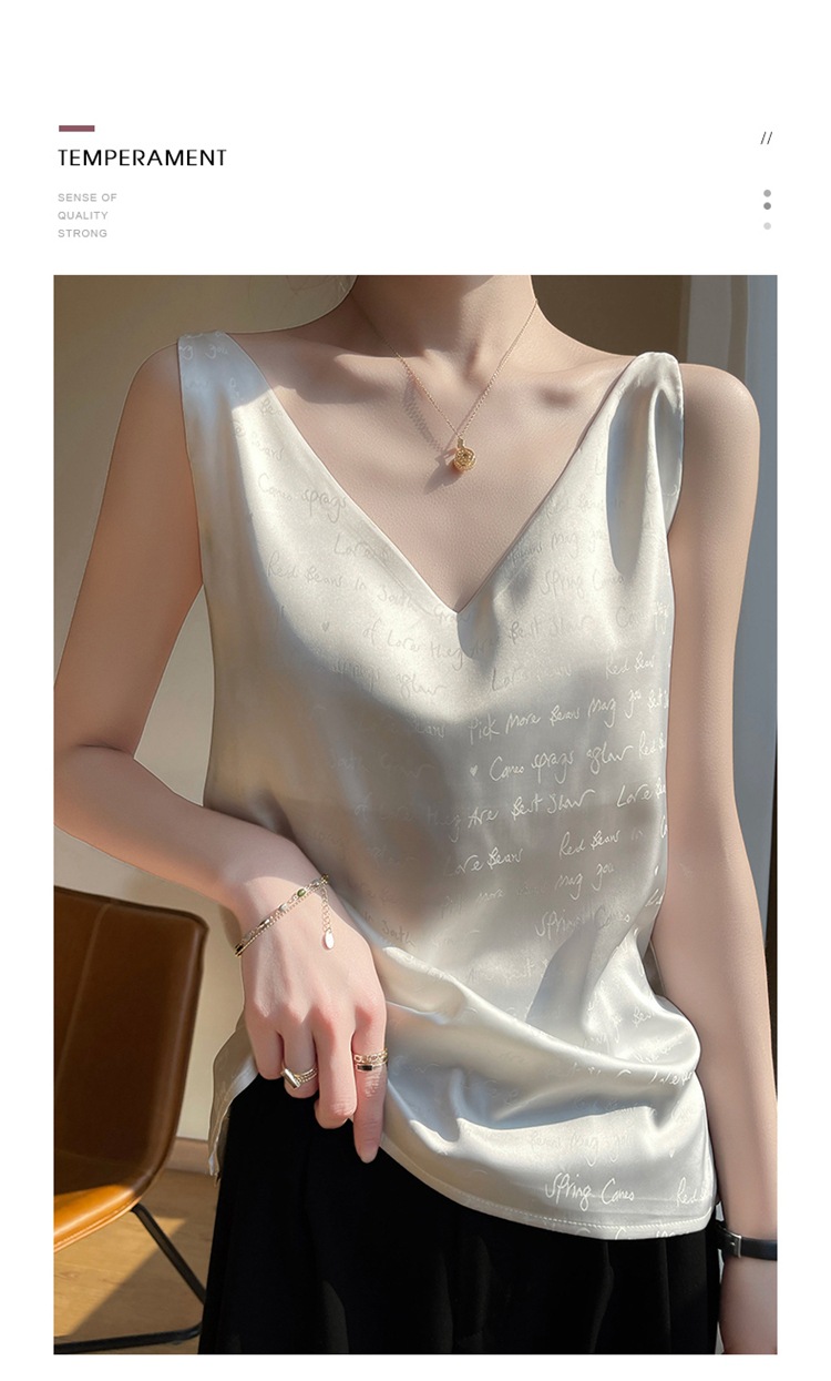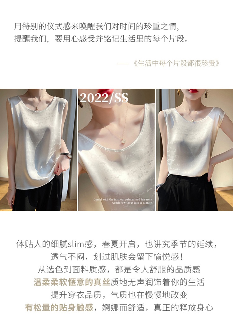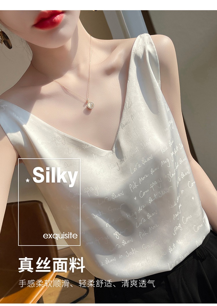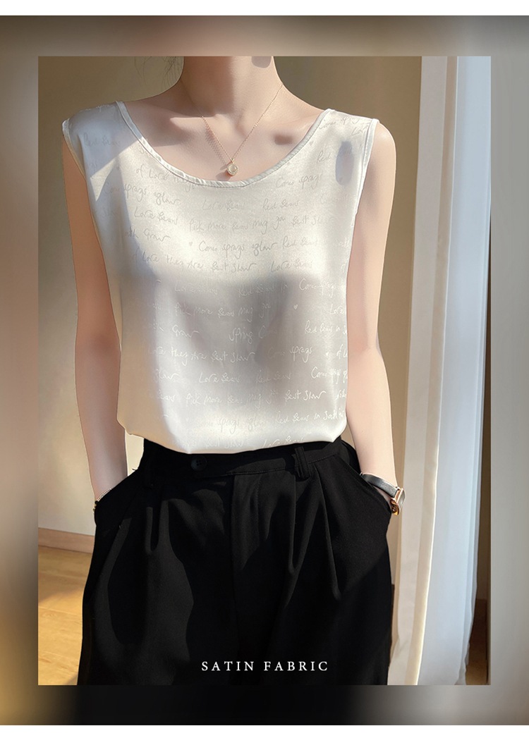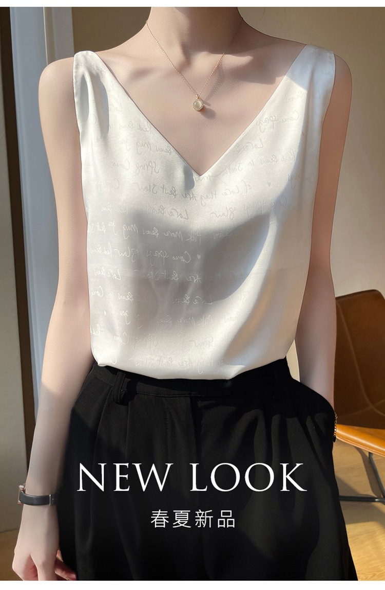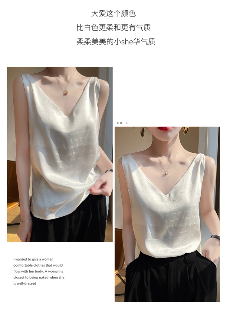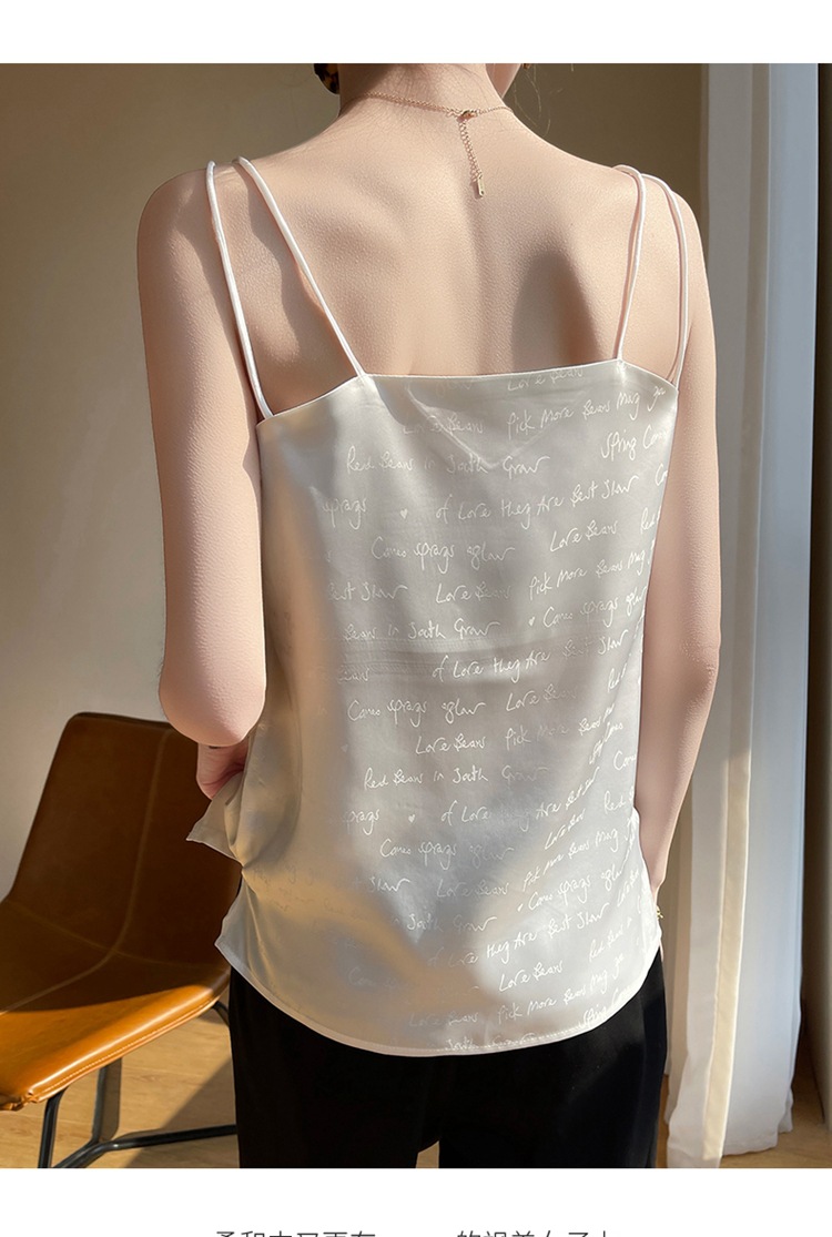조끼 여성 내복 여름 겉옷 모조 뽕나무 실크 넓은 어깨 끈 흰색 글자 밑바닥 슬링 민소매 아세테이트 티셔츠