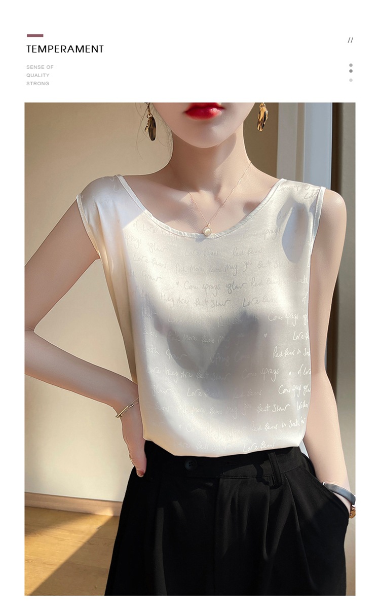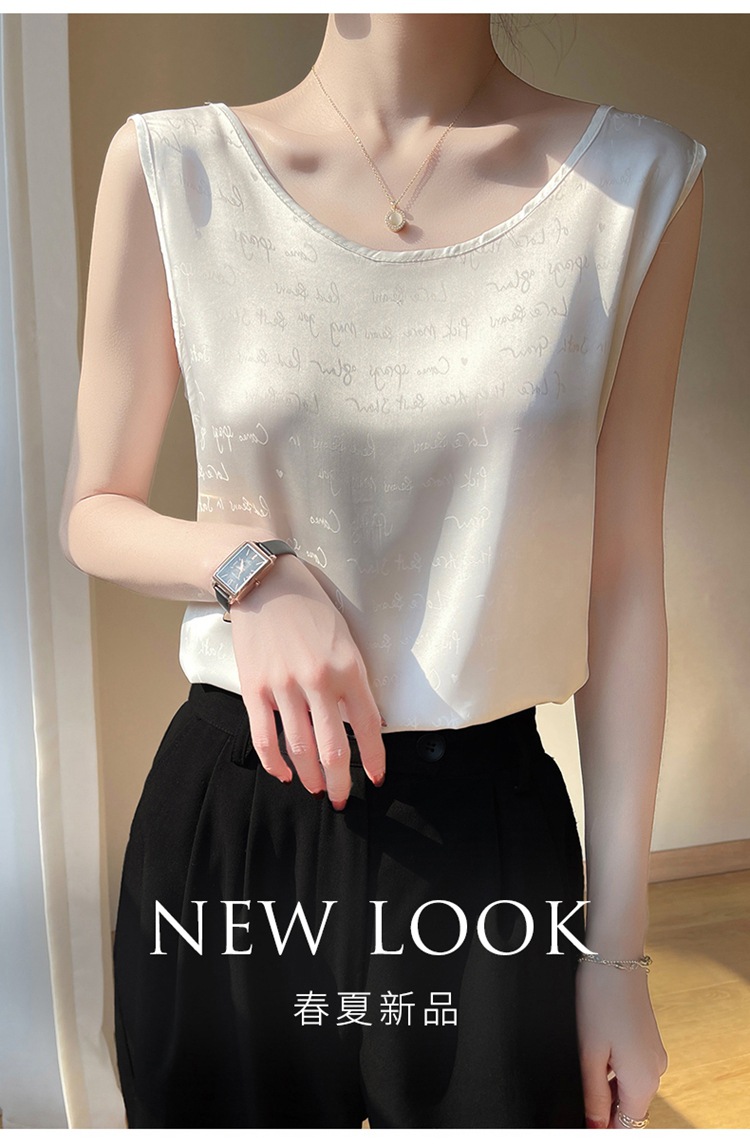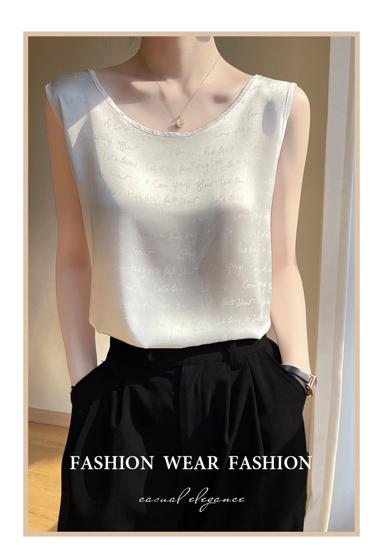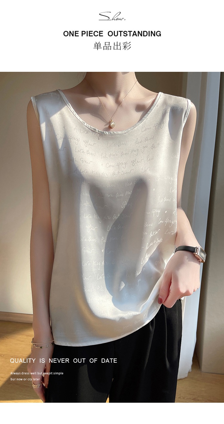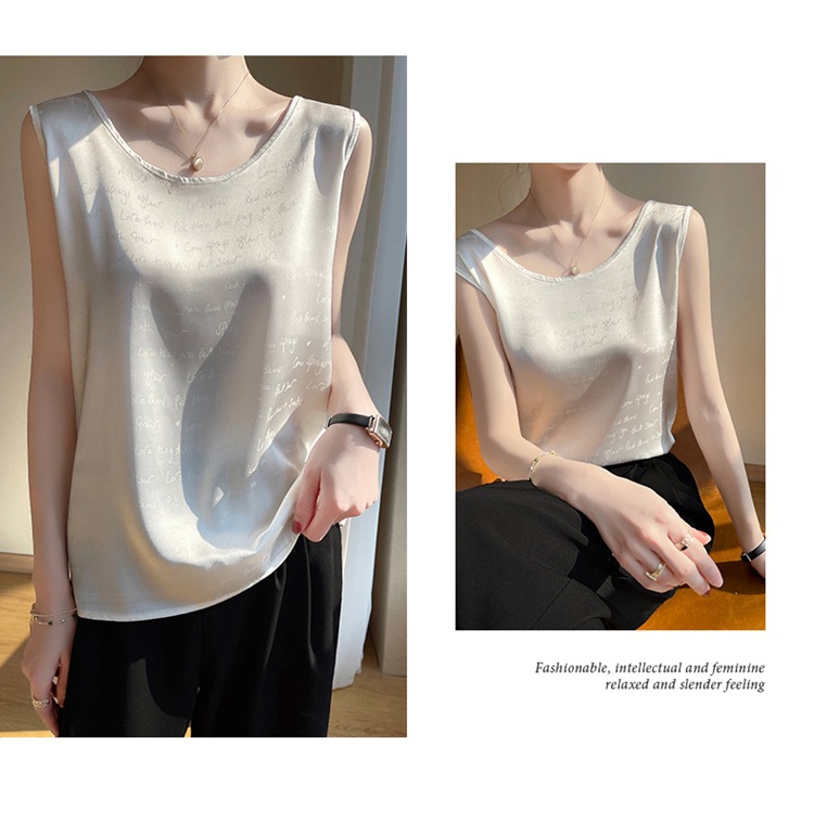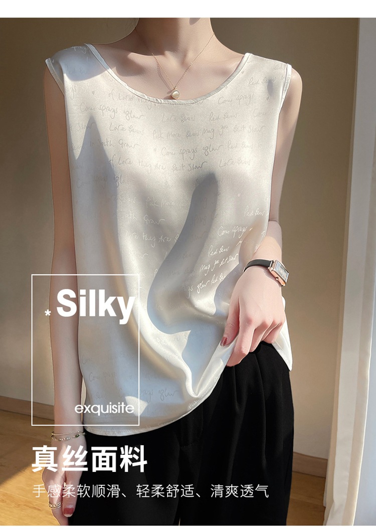 조끼 여성 내복 여름 겉옷 모조 뽕나무 실크 넓은 어깨 끈 흰색 글자 밑바닥 슬링 민소매 아세테이트 티셔츠