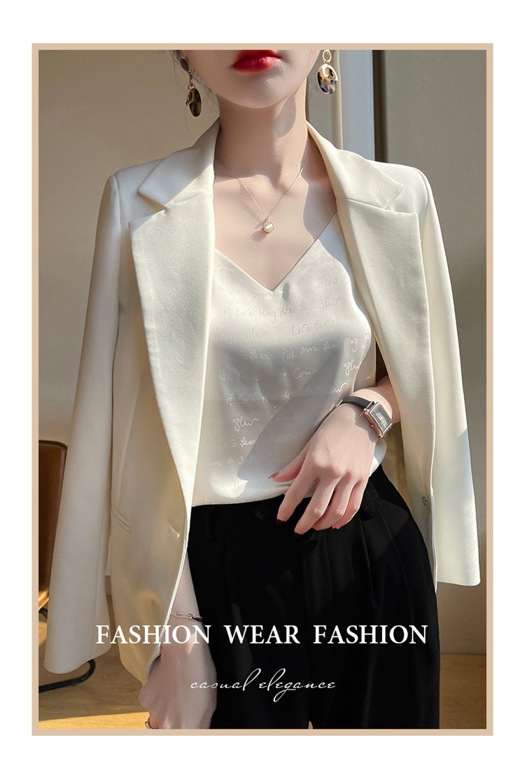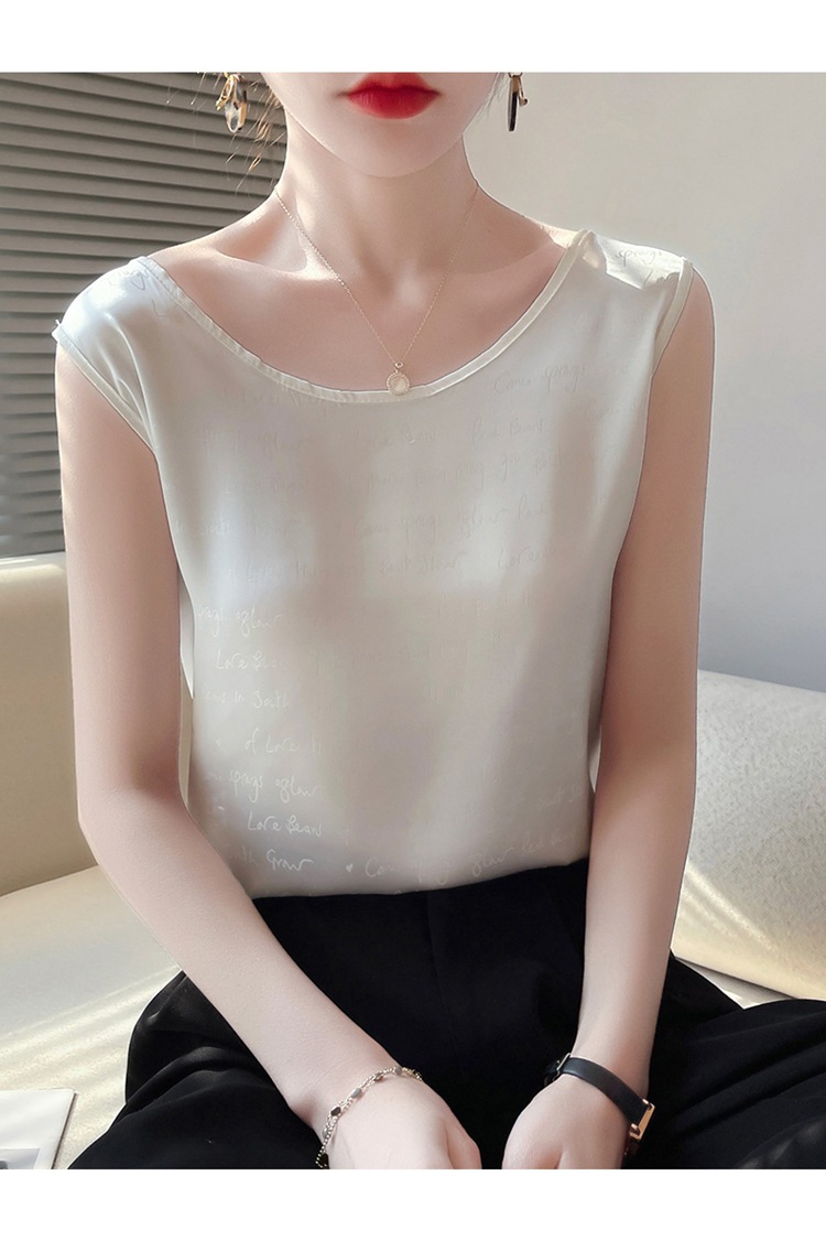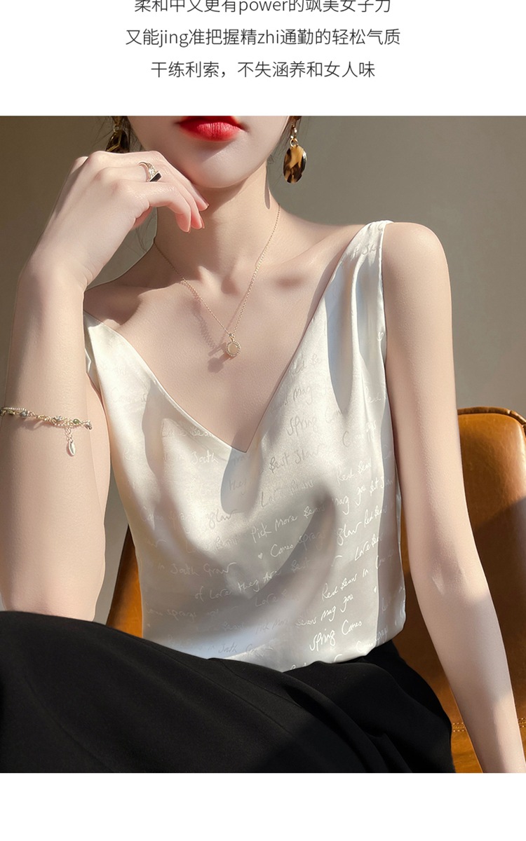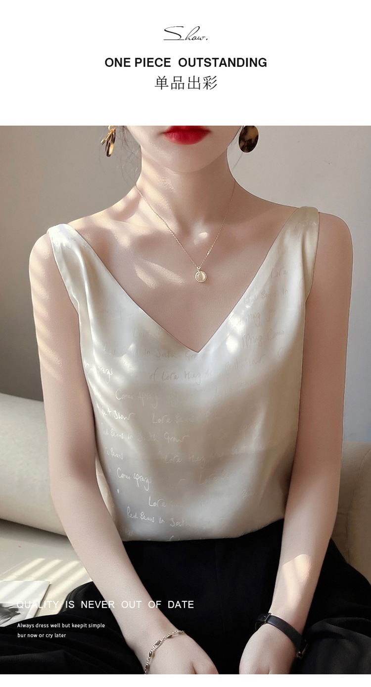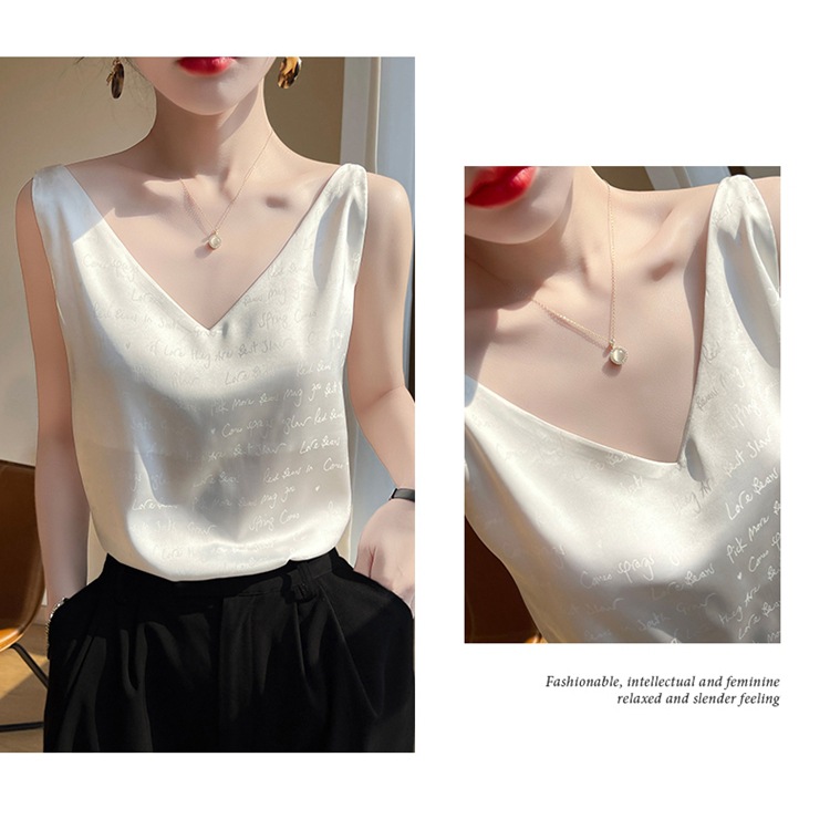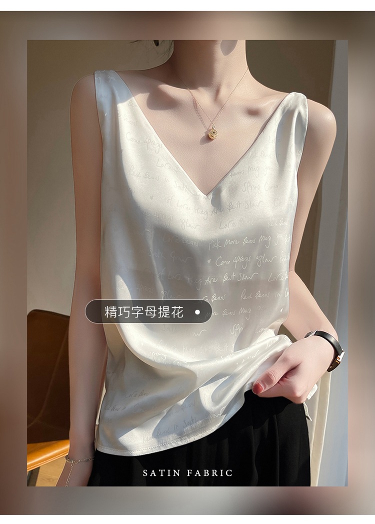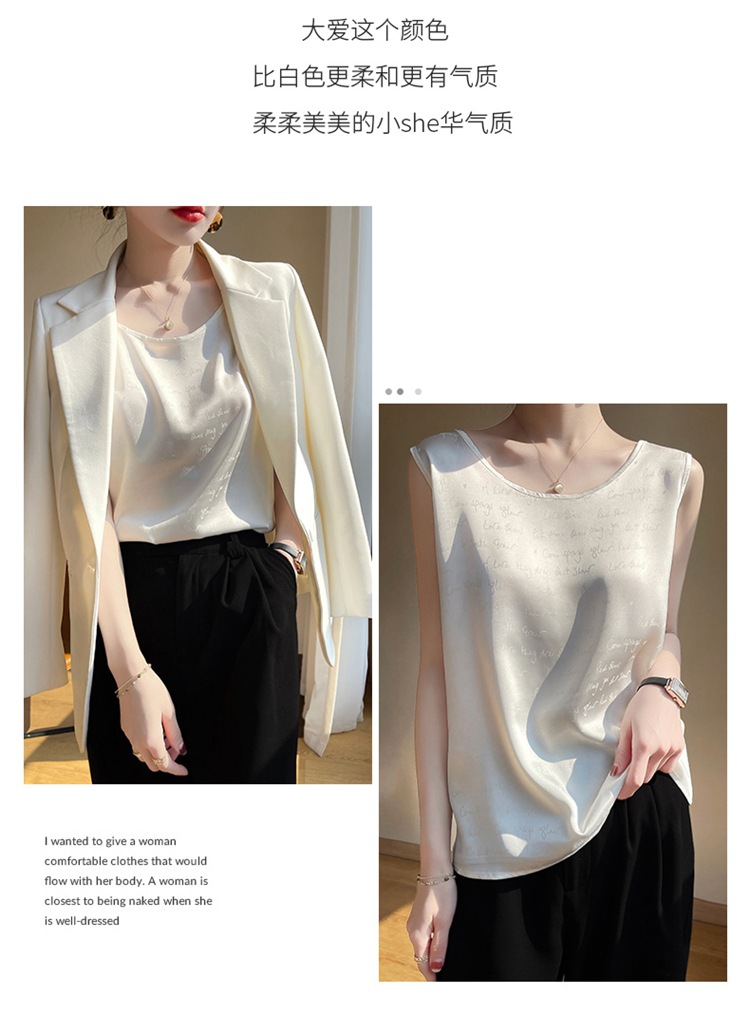 조끼 여성 내복 여름 겉옷 모조 뽕나무 실크 넓은 어깨 끈 흰색 글자 밑바닥 슬링 민소매 아세테이트 티셔츠