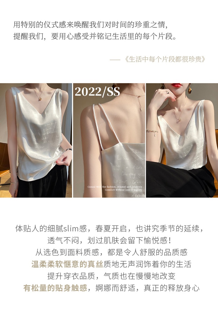 조끼 여성 내복 여름 겉옷 모조 뽕나무 실크 넓은 어깨 끈 흰색 글자 밑바닥 슬링 민소매 아세테이트 티셔츠스토어 가기