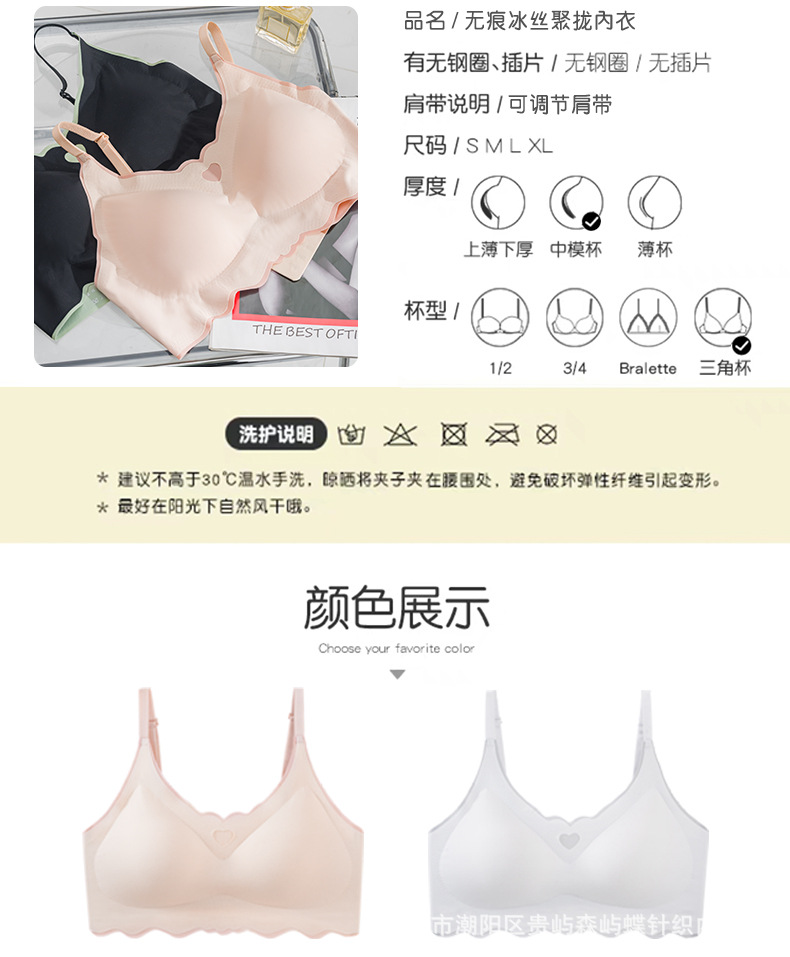 만화 가슴 원활한 속옷 착용 여성용 아이스 실크 브래지어 작은 가슴 개더링 무테 스포츠 뷰티 백 처짐 방지 브래지어스토어 가기