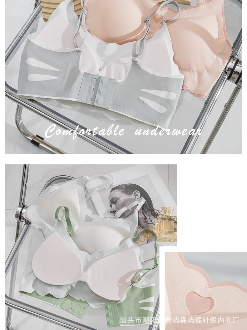 만화 가슴 원활한 속옷 착용 여성용 아이스 실크 브래지어 작은 가슴 개더링 무테 스포츠 뷰티 백 처짐 방지 브래지어