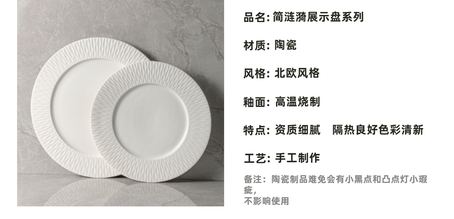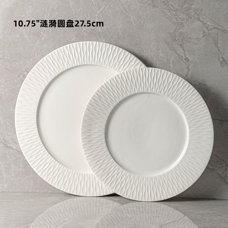 호텔 화이트 세라믹 라운드 디스플레이 플랫 플레이트 클럽 하우스 서양 음식 섬세한 테이블 탑 플레이트 고급 느낌 플레이트 식기스토어 가기