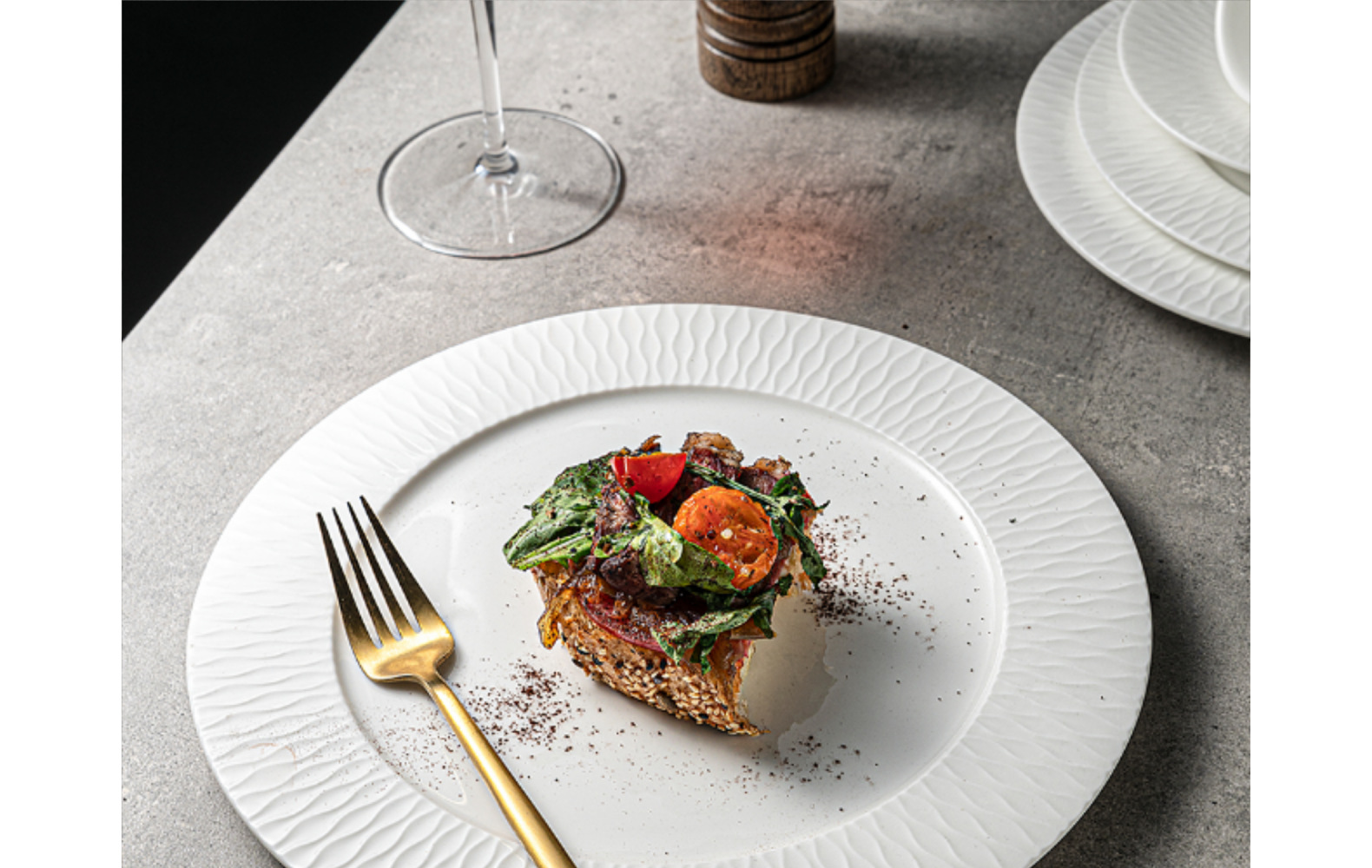 호텔 화이트 세라믹 라운드 디스플레이 플랫 플레이트 클럽 하우스 서양 음식 섬세한 테이블 탑 플레이트 고급 느낌 플레이트 식기