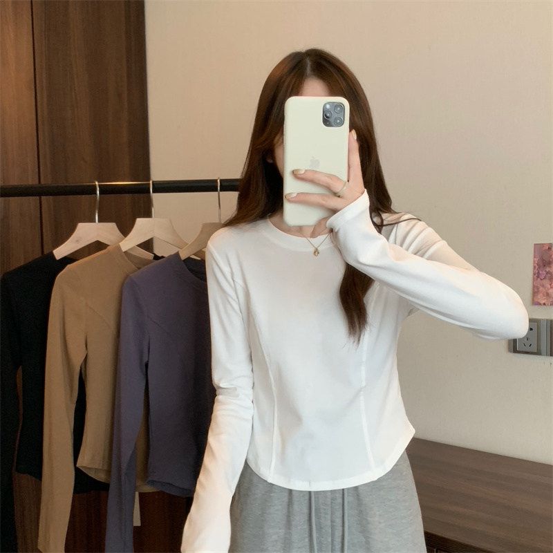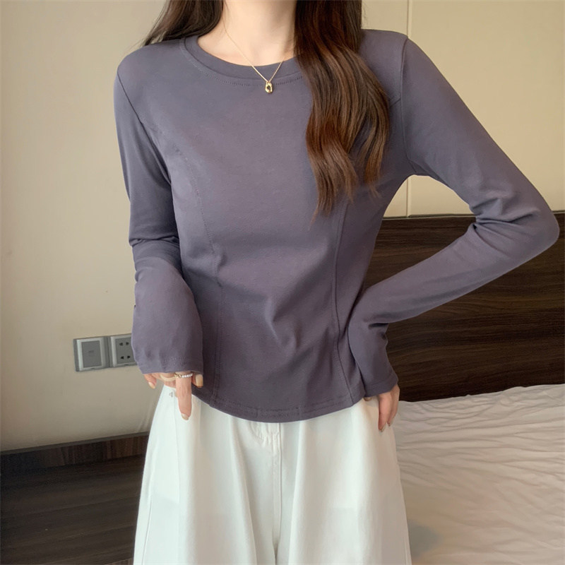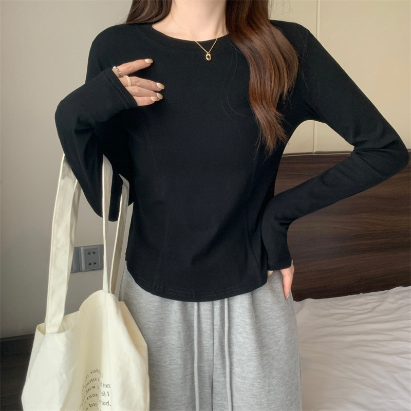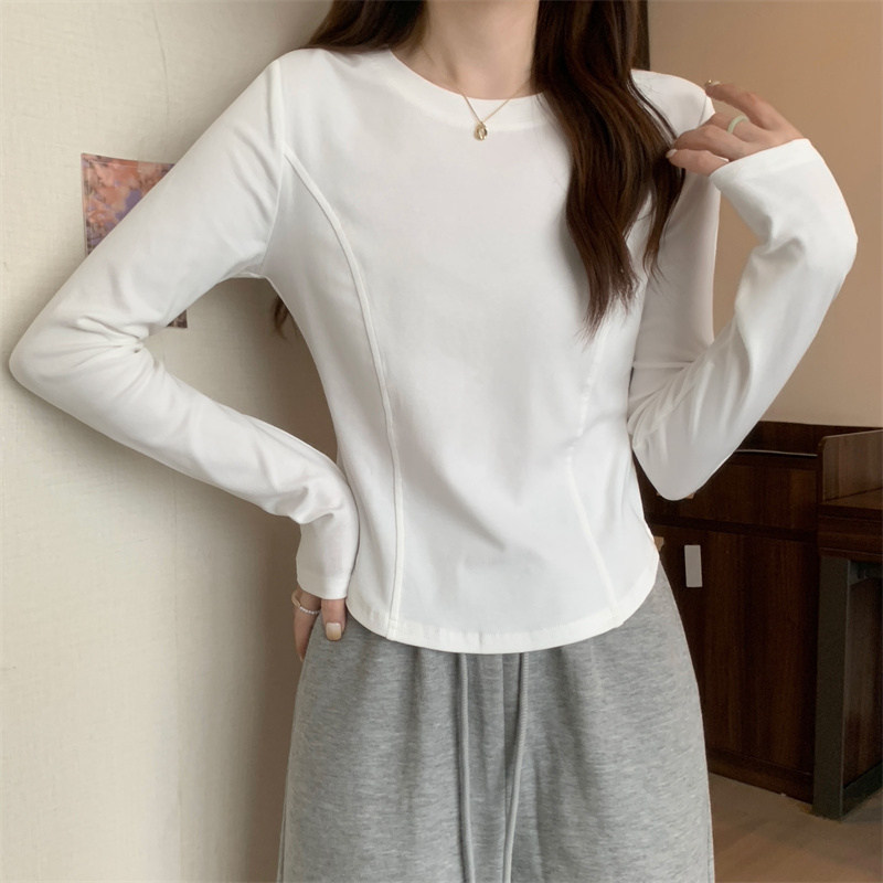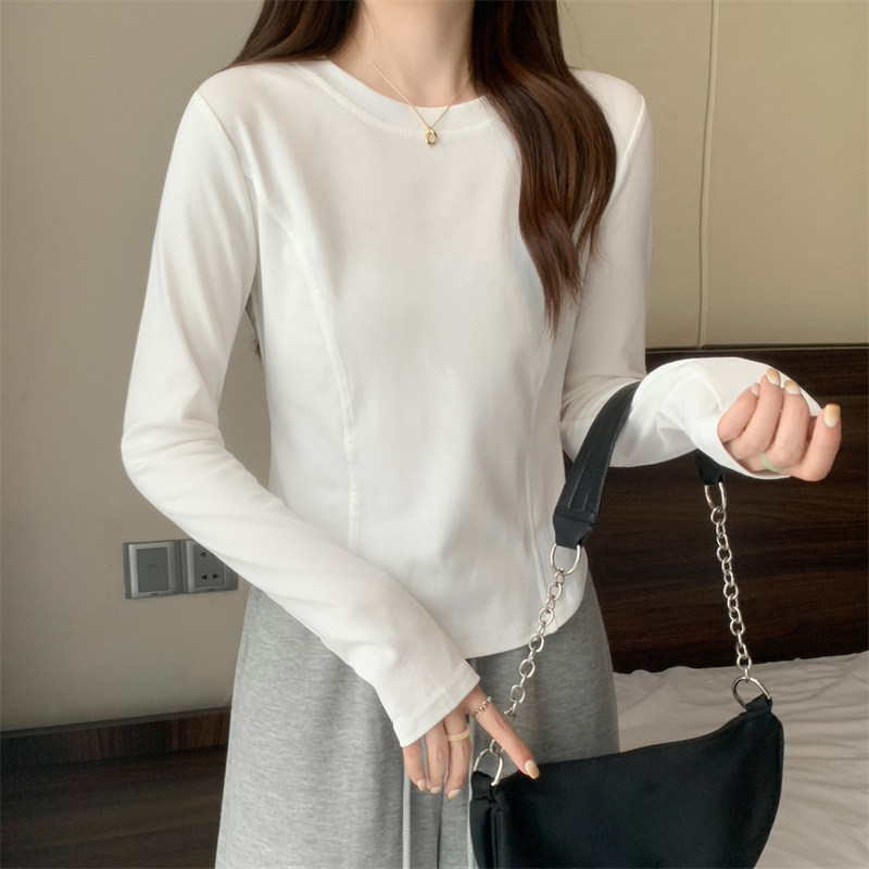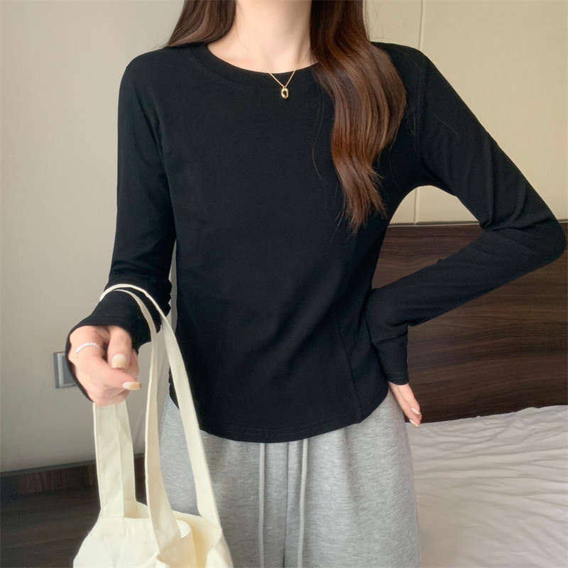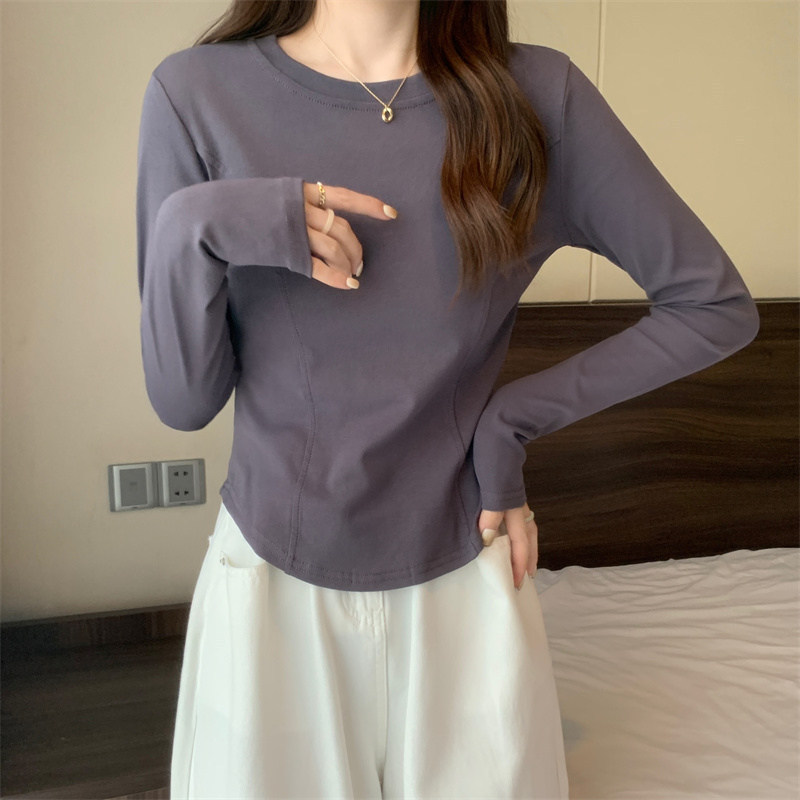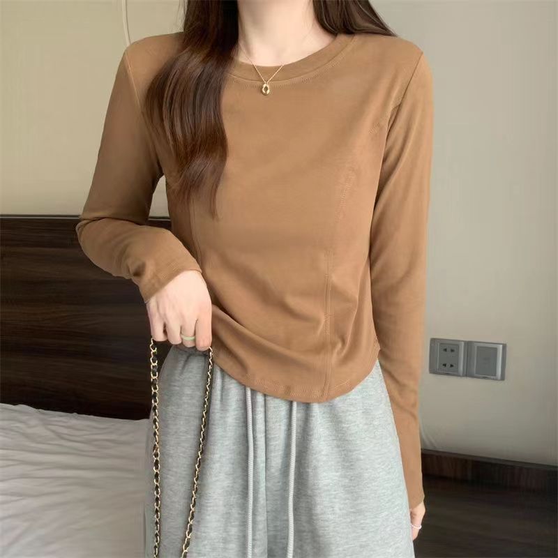 여성용 오른쪽 어깨 티셔츠 봄, 가을 2025 긴팔 새로운 한국 스타일 슬림 불규칙한 바닥 셔츠 탑 아우터 인 트렌드