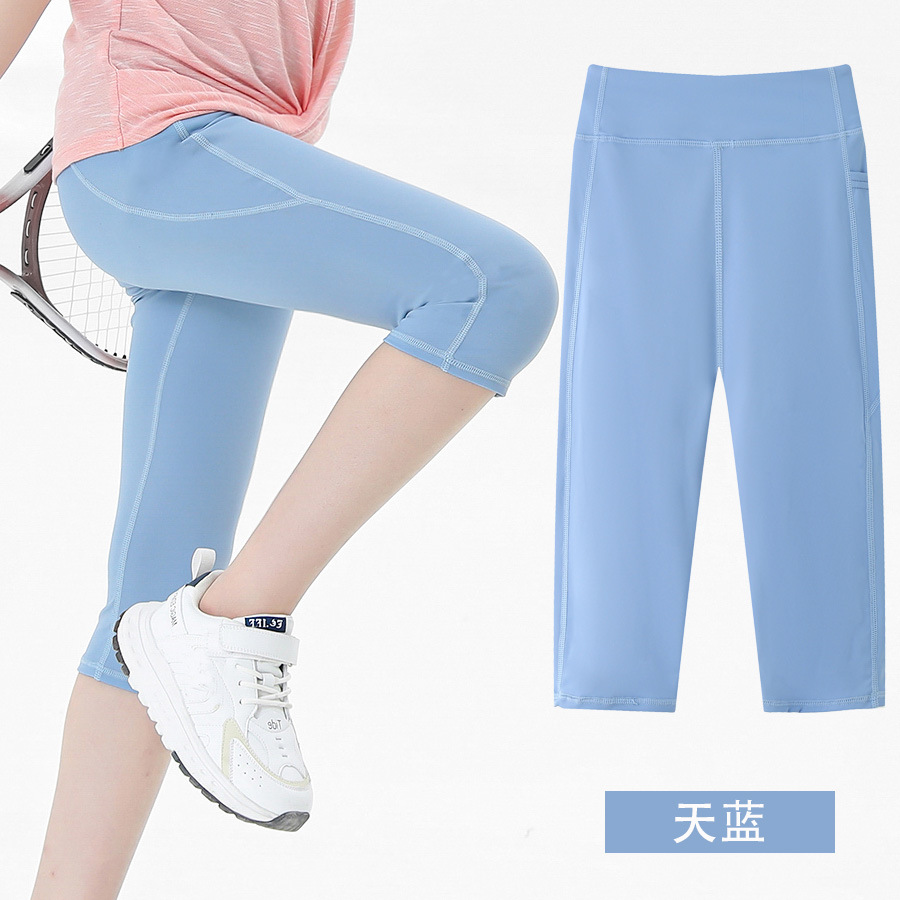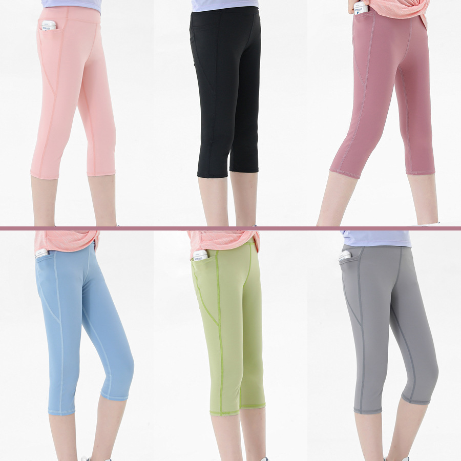 여자 자른 상어 바지 여름 스포츠 바비 바지 사이드 포켓 높은 탄성 레깅스 여름스토어 가기