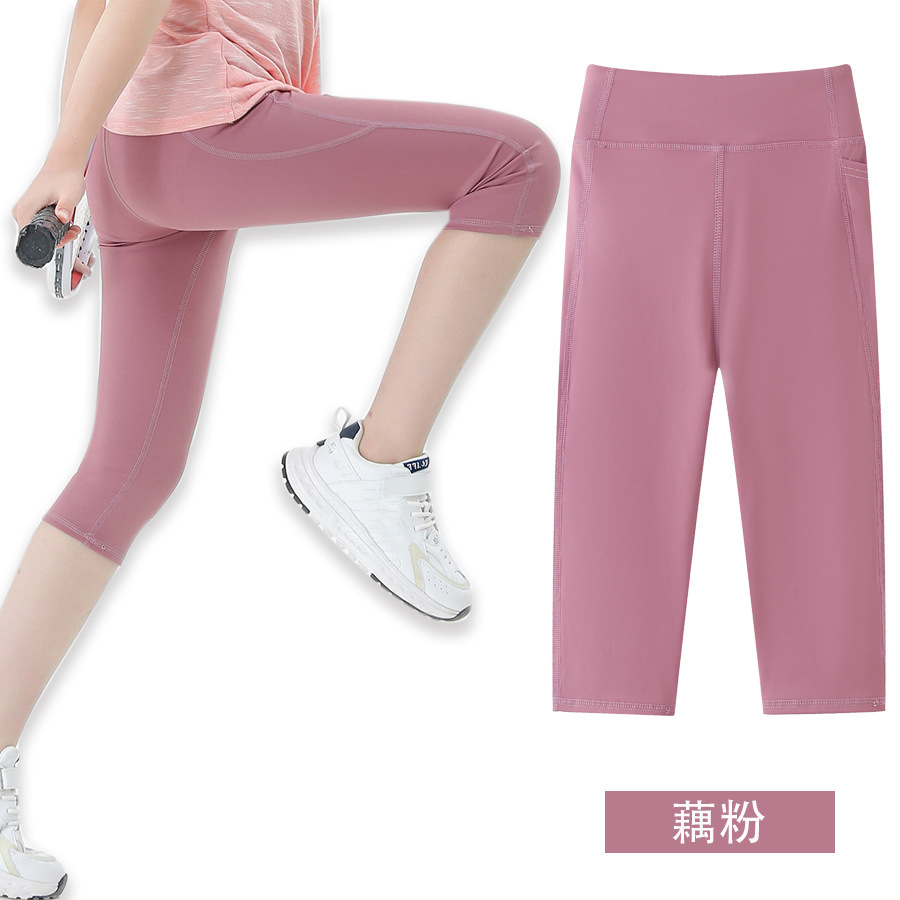 여자 자른 상어 바지 여름 스포츠 바비 바지 사이드 포켓 높은 탄성 레깅스 여름