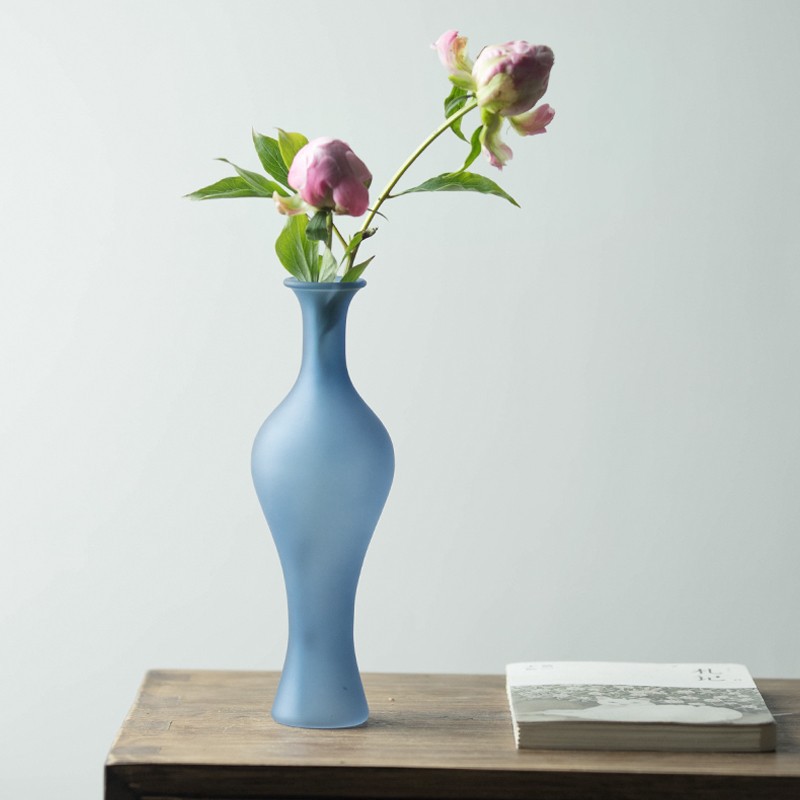 일본식 유리 꽃병 젠 버드 나무 꽃병 두꺼운 높은 붕규산 볼루 젖빛 블루 수경 재배 꽃 차 테이블 꽃 세트