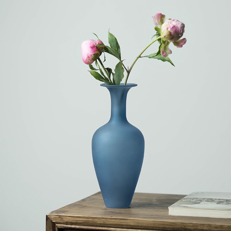 일본식 유리 꽃병 젠 버드 나무 꽃병 두꺼운 높은 붕규산 볼루 젖빛 블루 수경 재배 꽃 차 테이블 꽃 세트스토어 가기