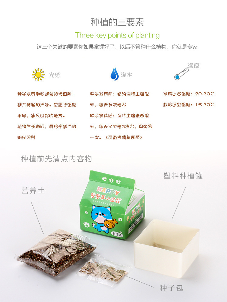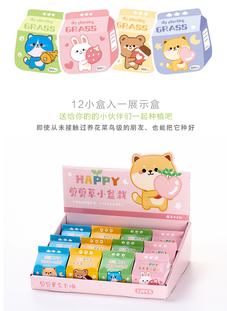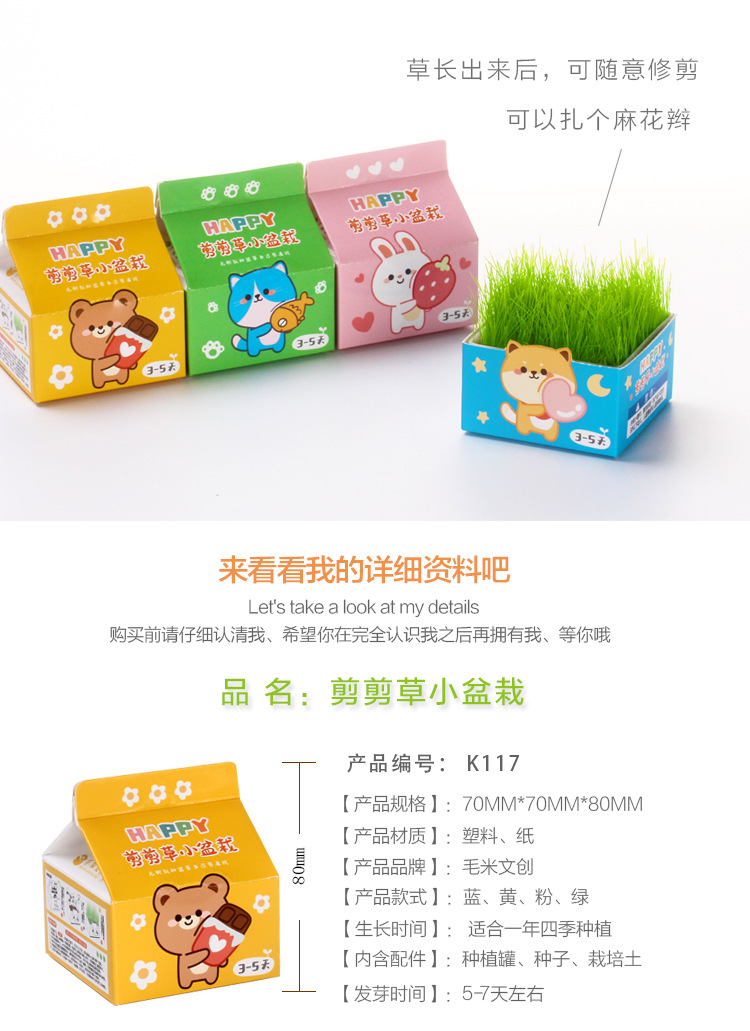 어린이 DIY 녹색 식물 절단 잔디 녹색 식물 작은 화분 수경 분재 데스크탑 미니 심기 학생 잔디 화분스토어 가기