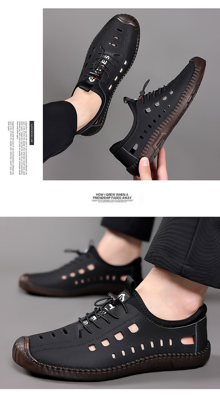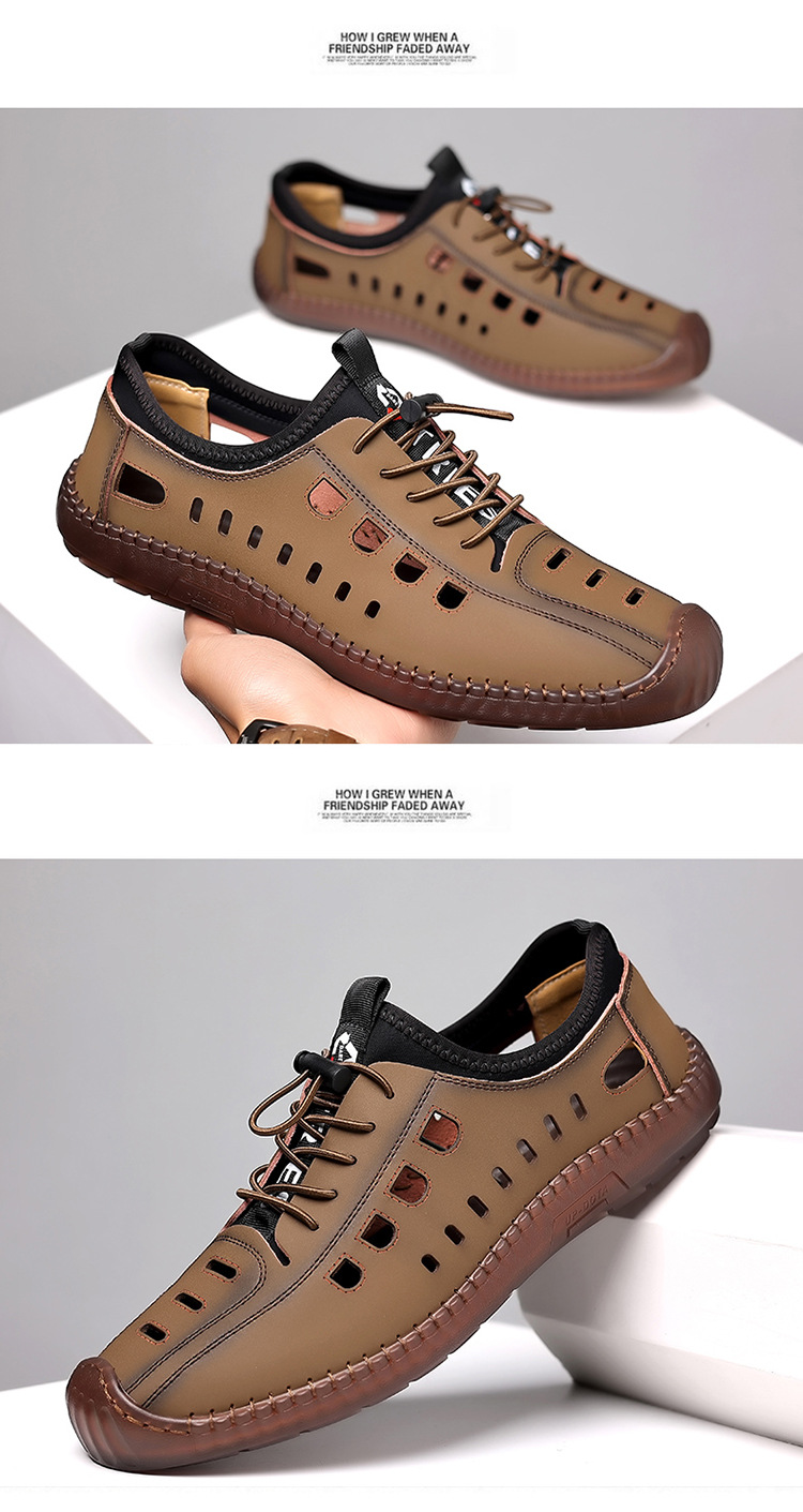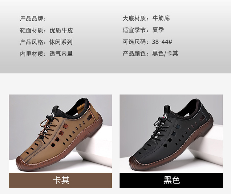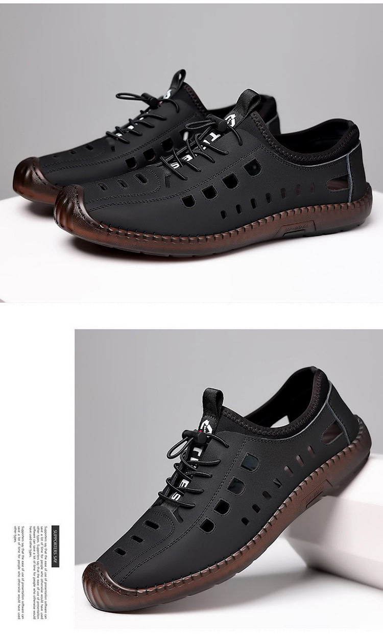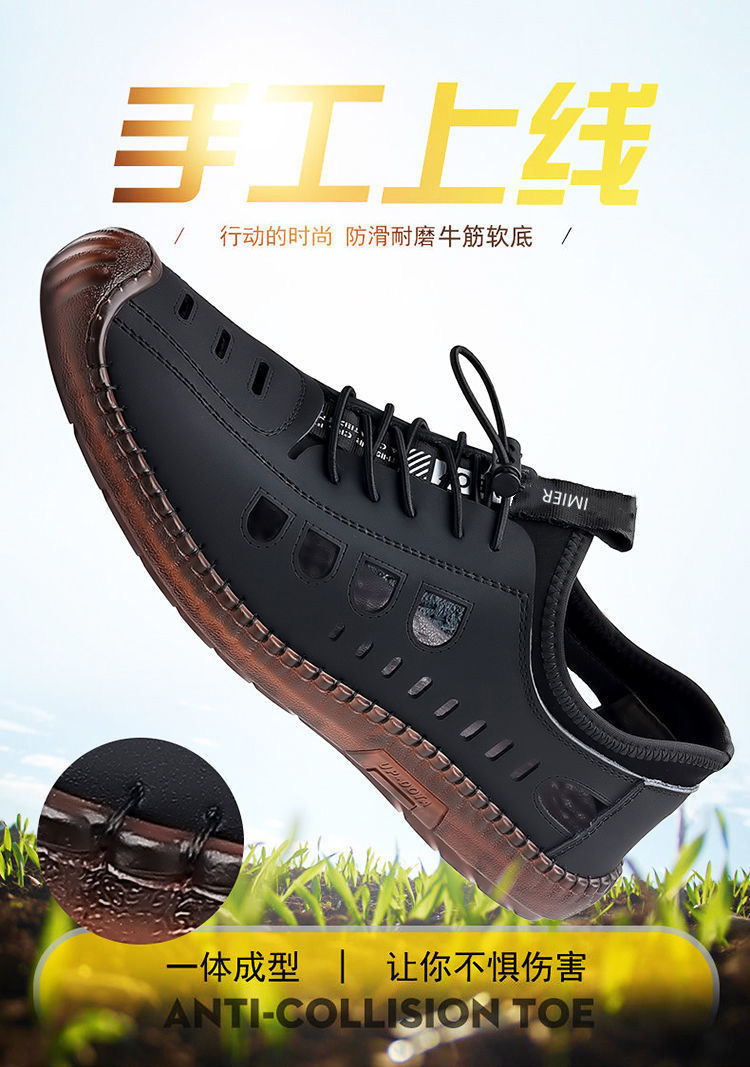 캐주얼 신발 남성 2023 여름 새로운 부드러운 바닥 중공 통기성 구멍 신발 남성용 미끄럼 방지 가죽 샌들 도매스토어 가기