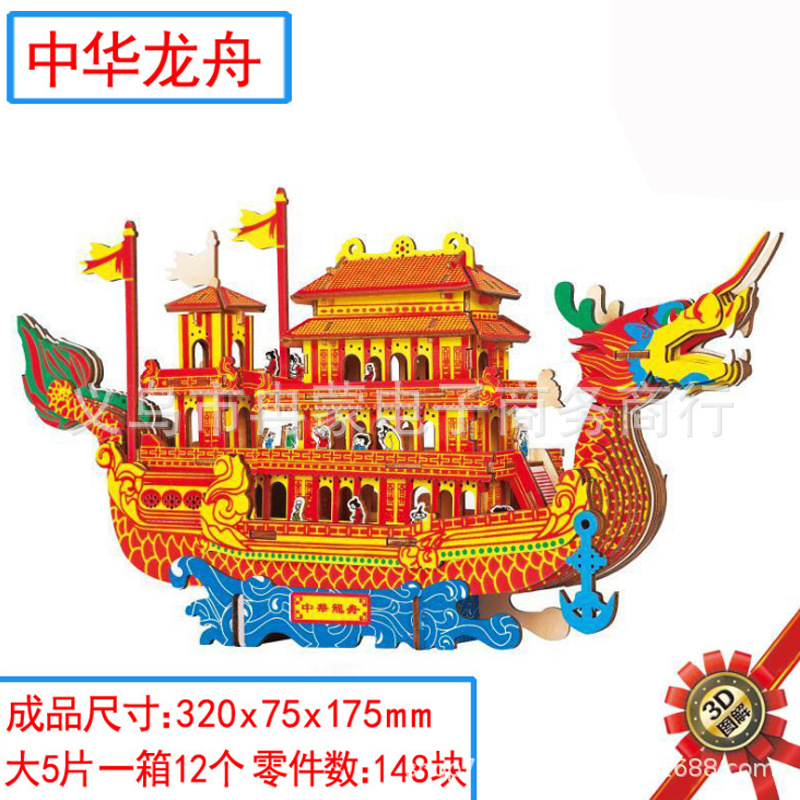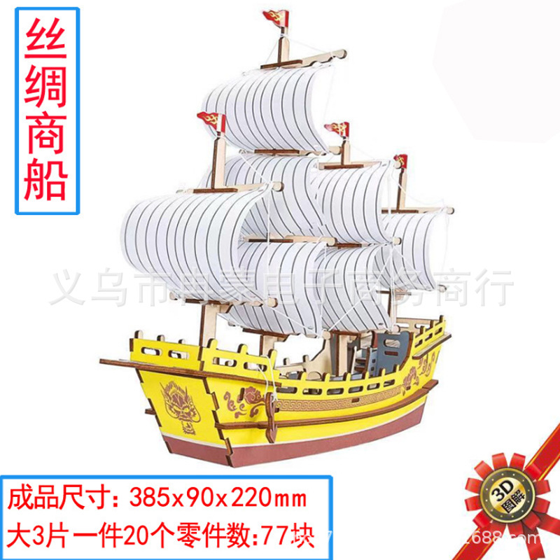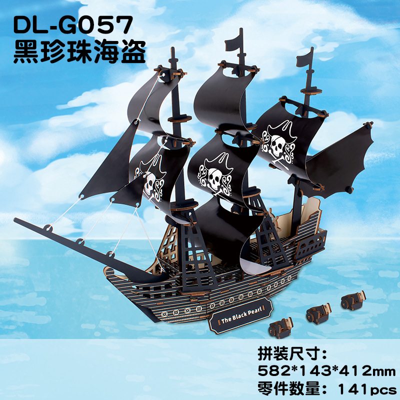 나무 입체 퍼즐 Zhuang Yi 장식품 건축 모델 항해 해적선 DIY 조립 된 교육 완구 남성과 어린이를위한