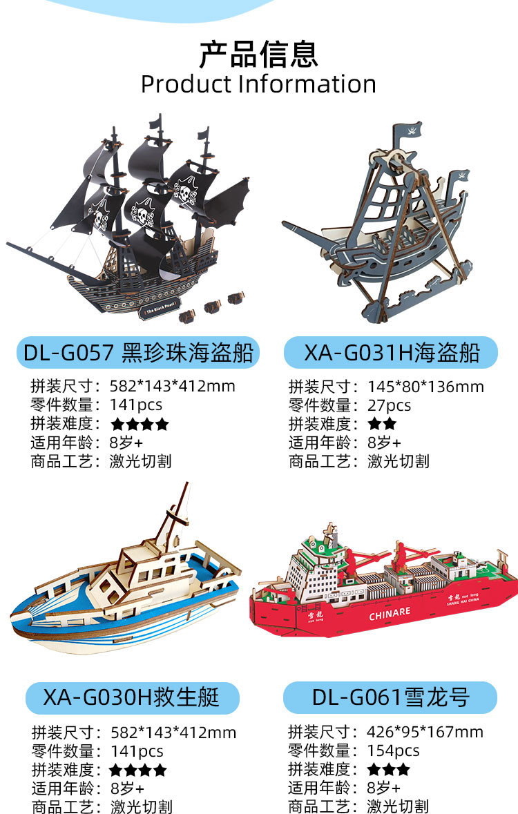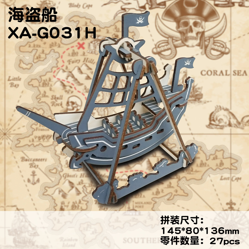 나무 입체 퍼즐 Zhuang Yi 장식품 건축 모델 항해 해적선 DIY 조립 된 교육 완구 남성과 어린이를위한스토어 가기
