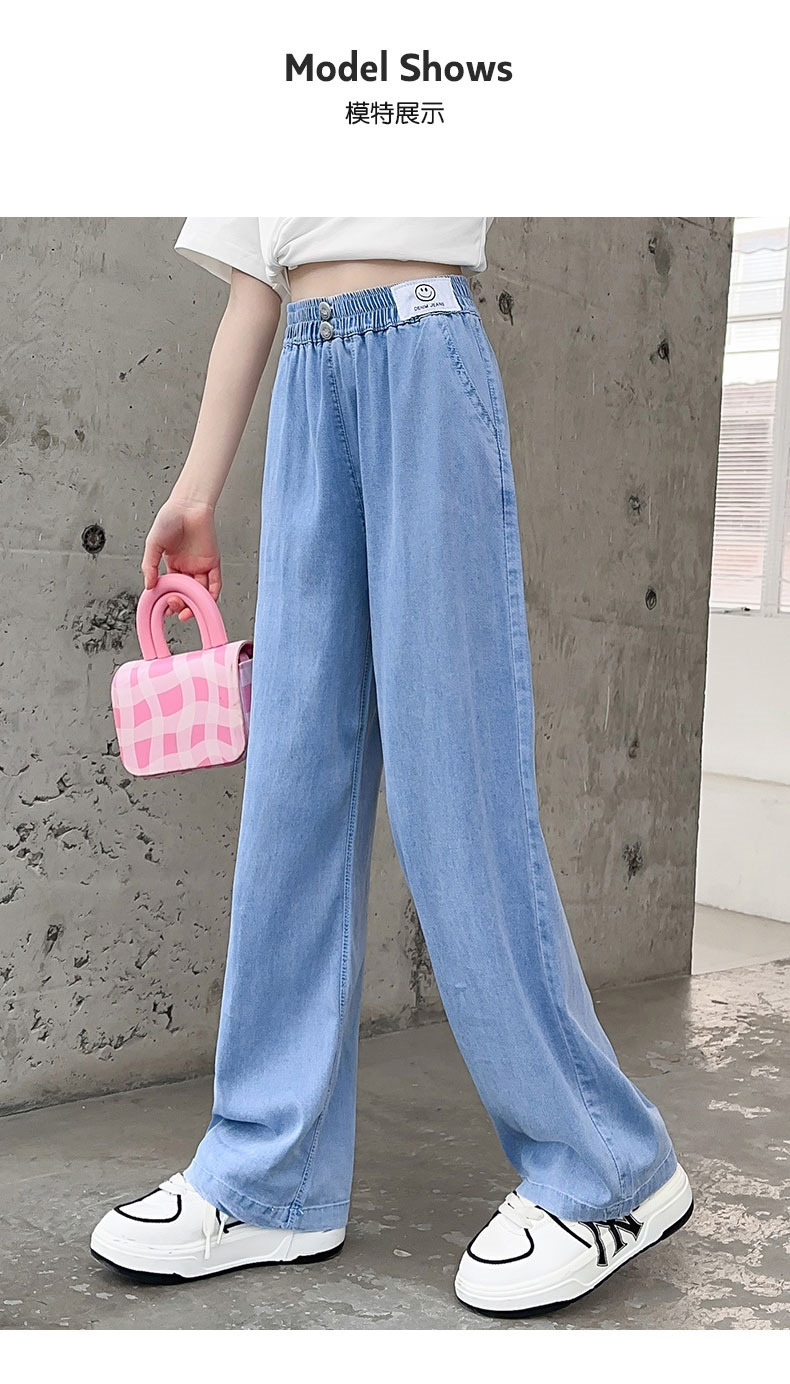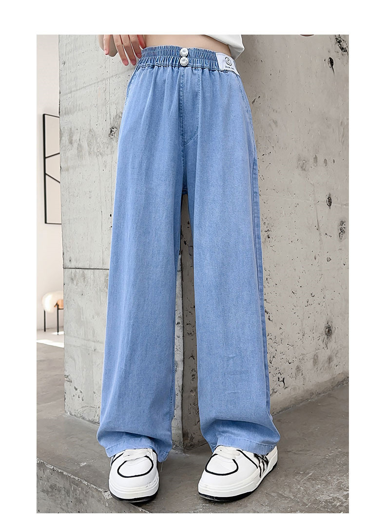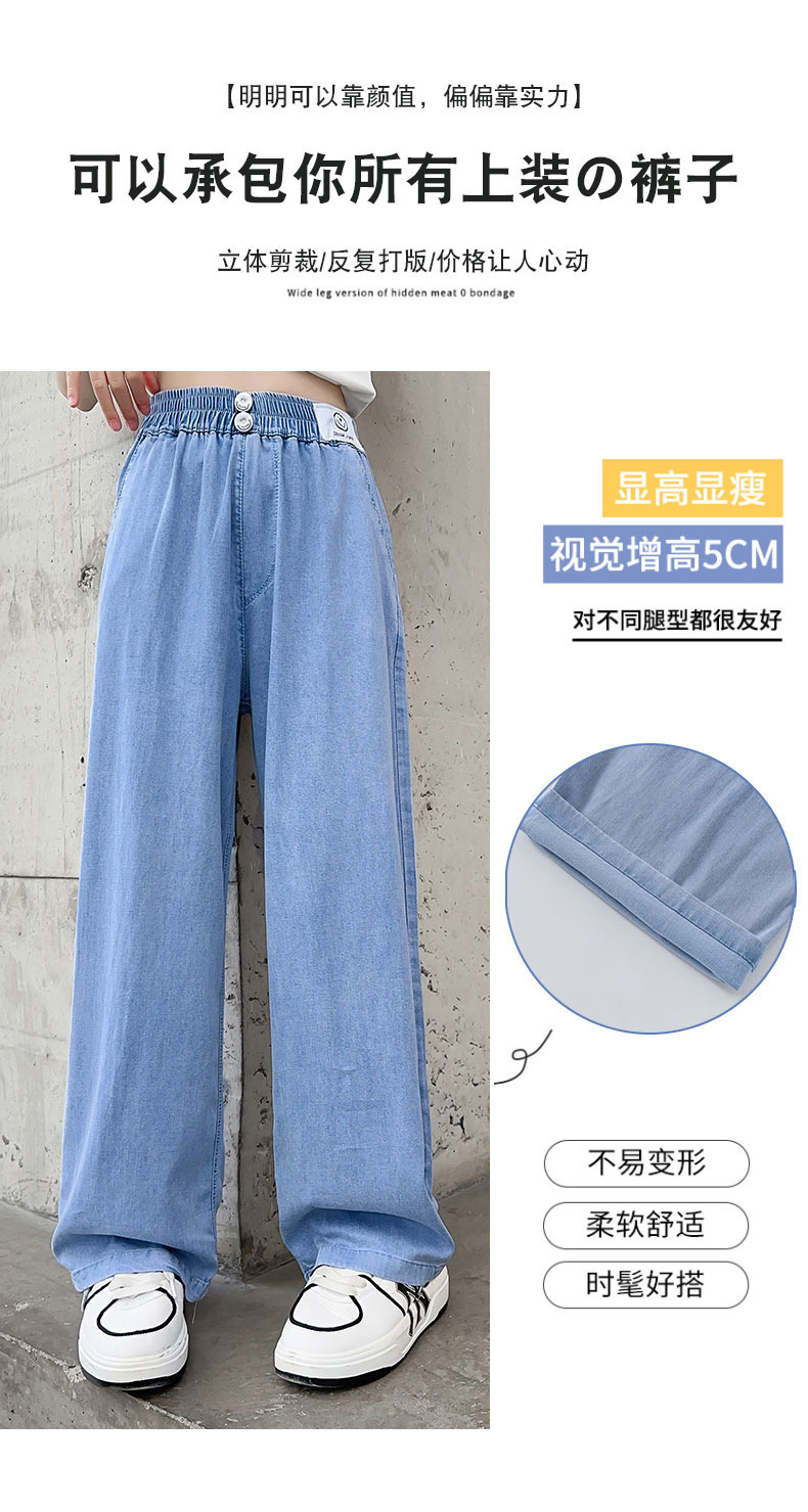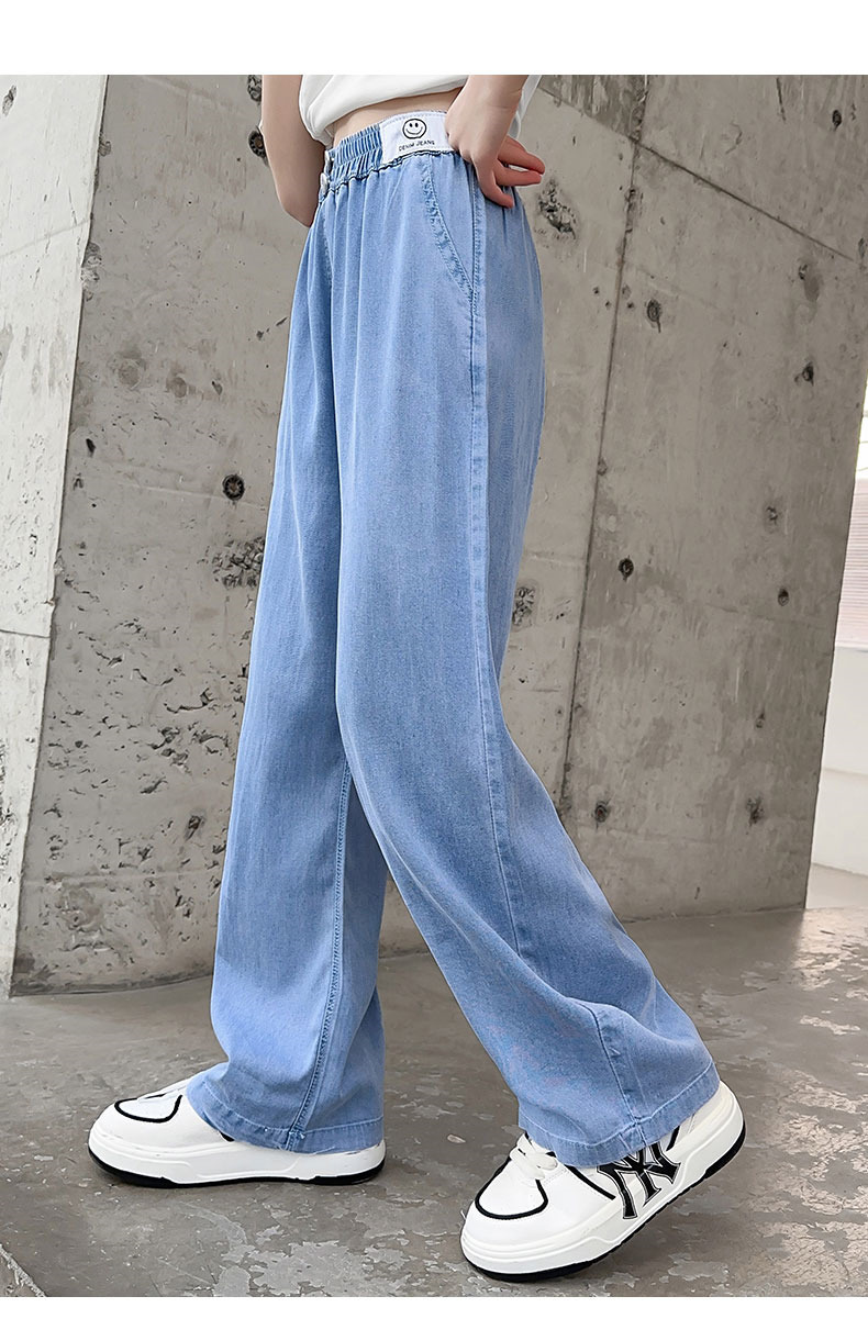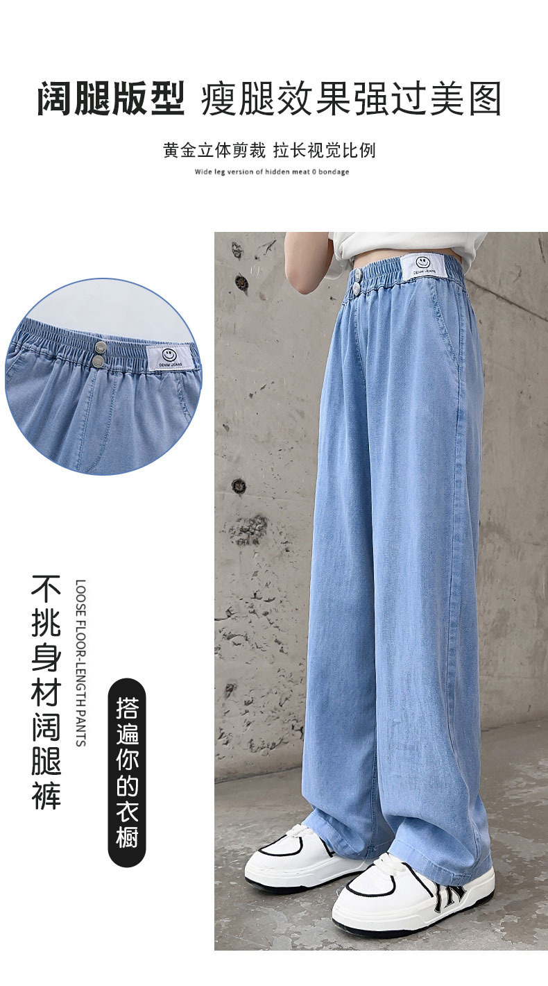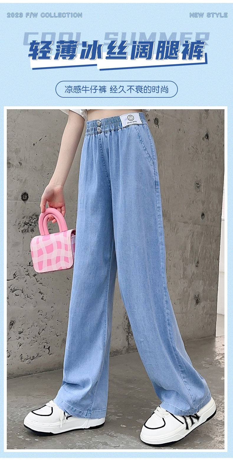 여학생 여름 얼음 실크 얇은 직선 다리 넓은 다리 청바지 초등학생 느슨한 캐주얼 중학생 여름 얇은스토어 가기