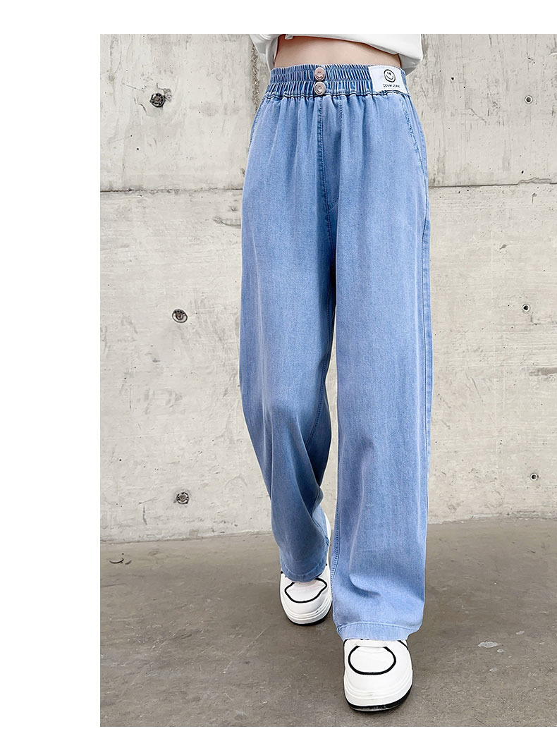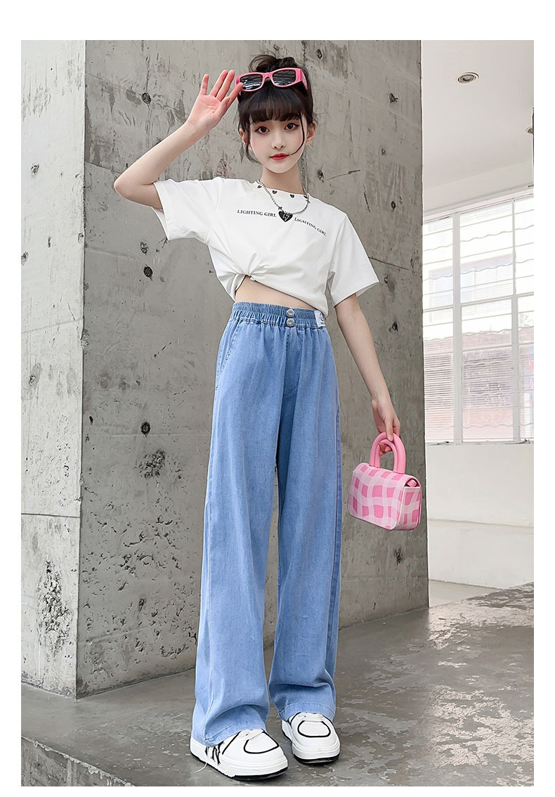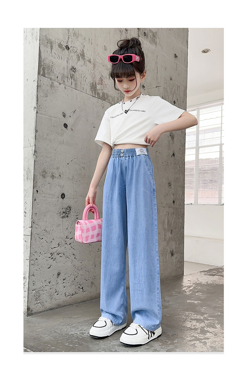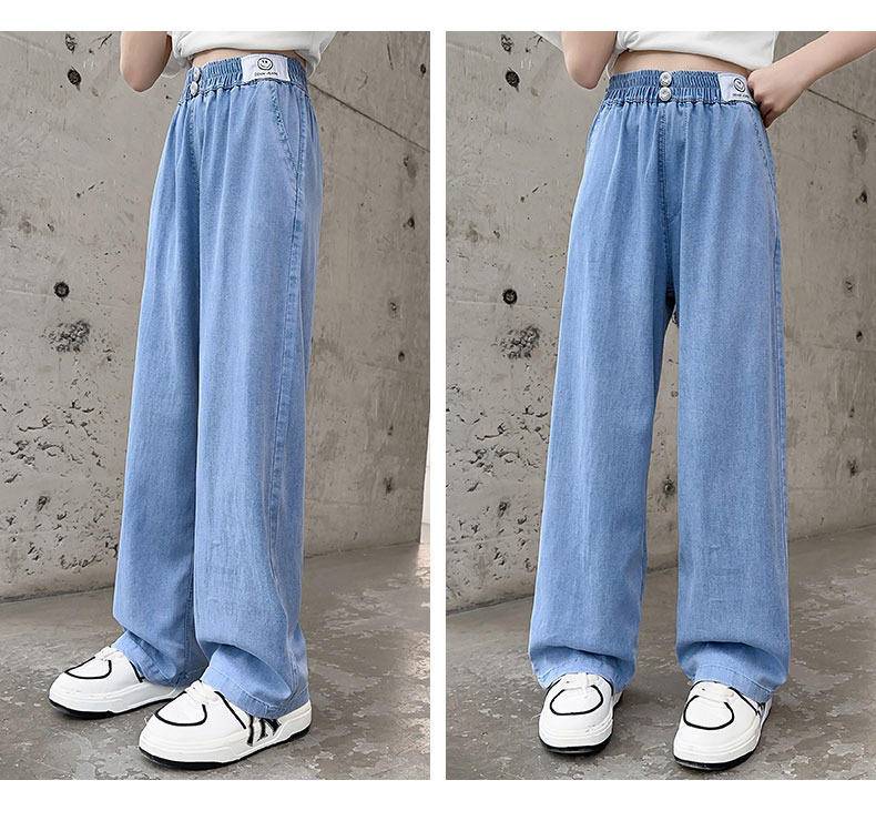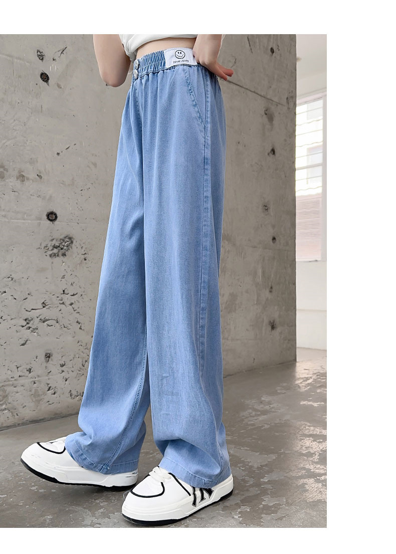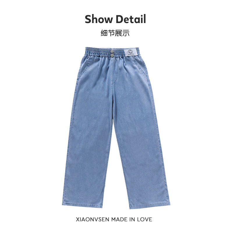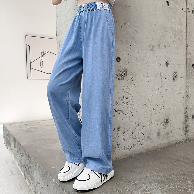 여학생 여름 얼음 실크 얇은 직선 다리 넓은 다리 청바지 초등학생 느슨한 캐주얼 중학생 여름 얇은스토어 가기