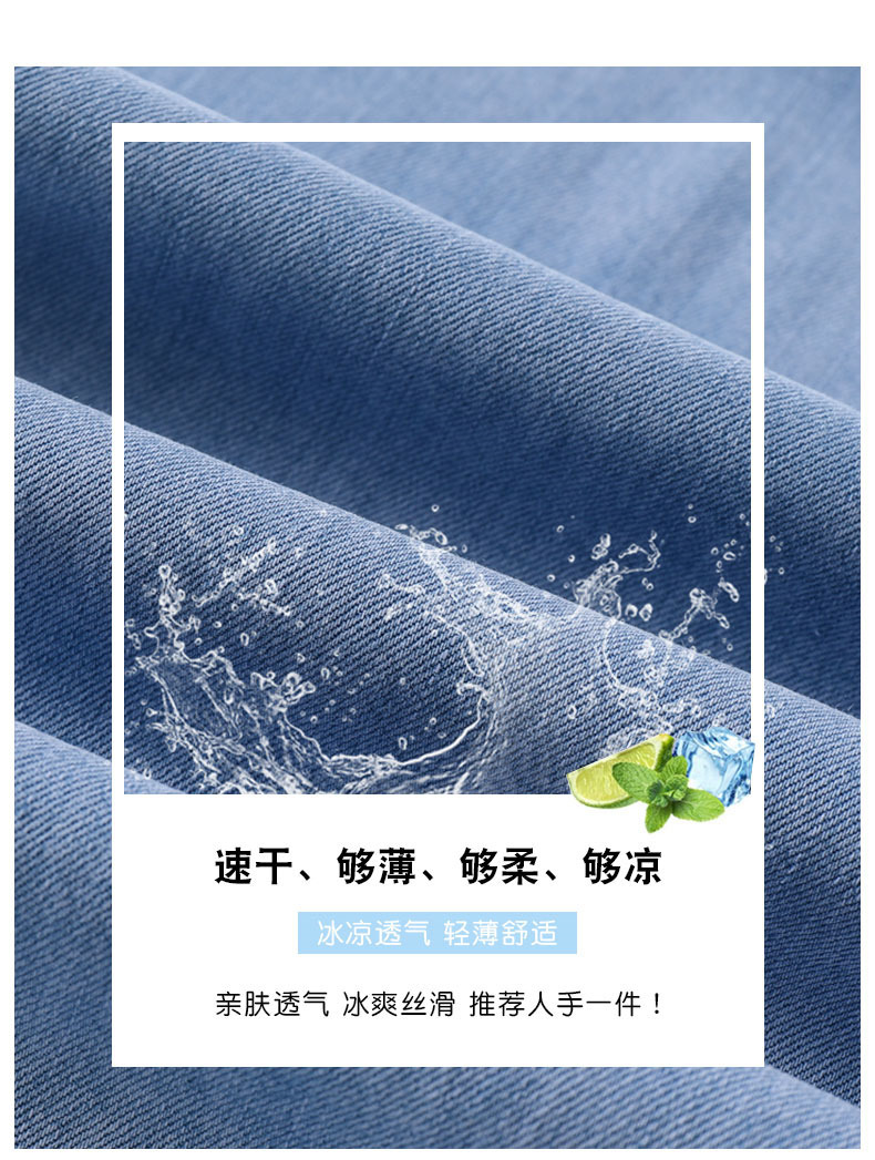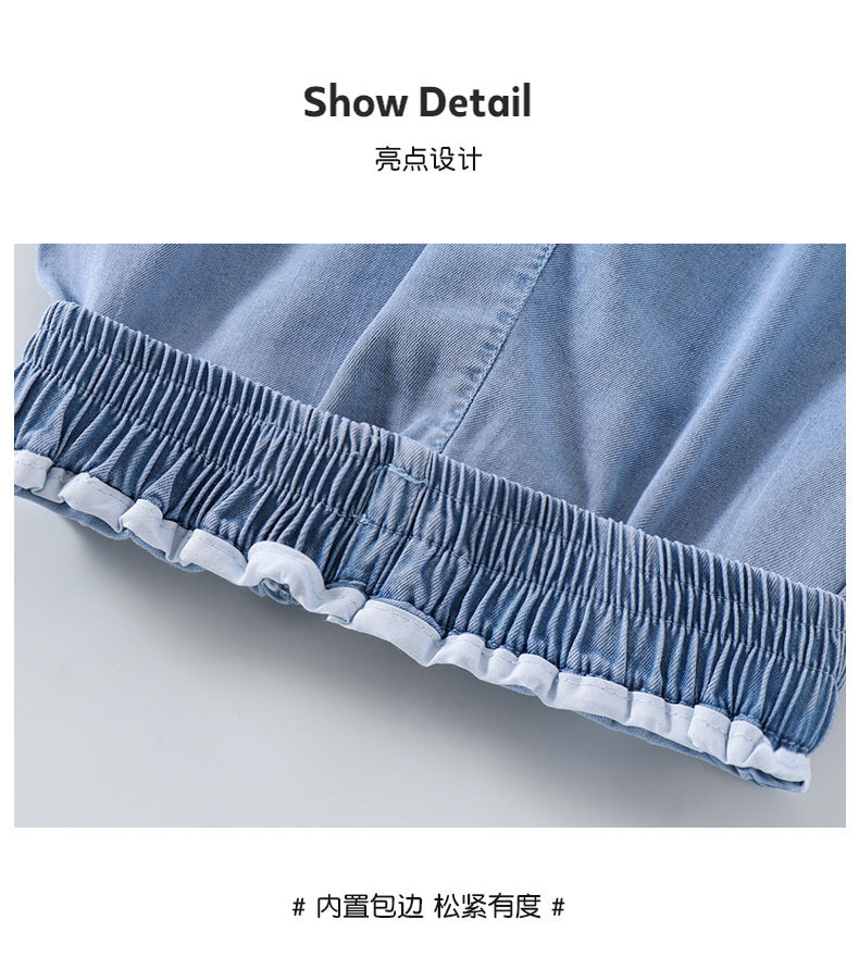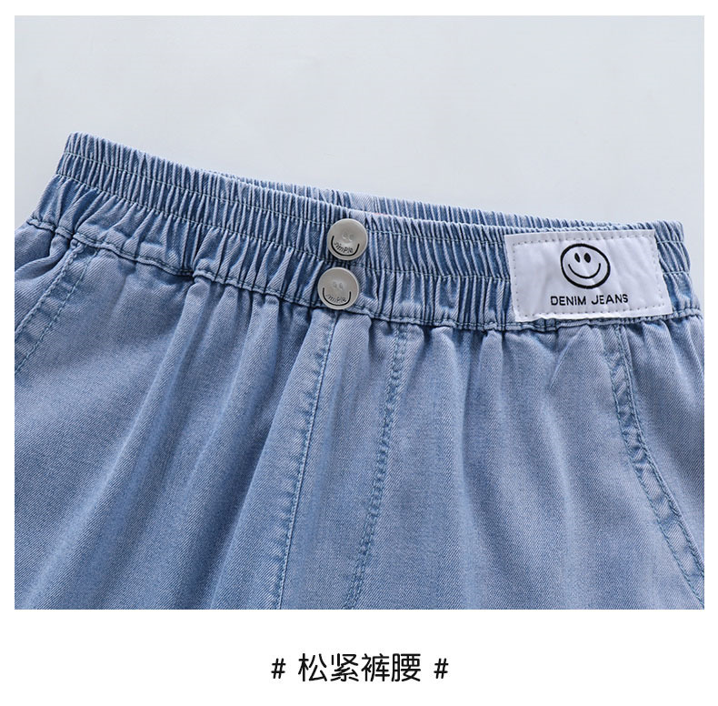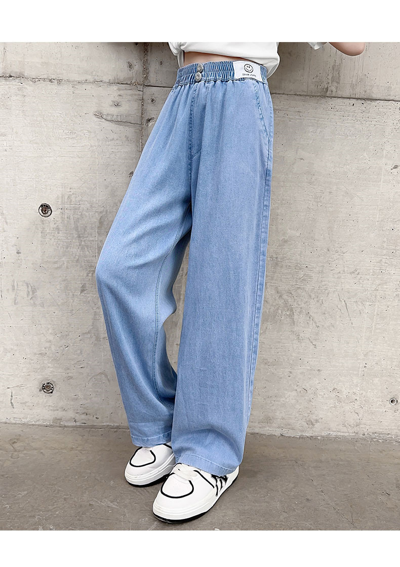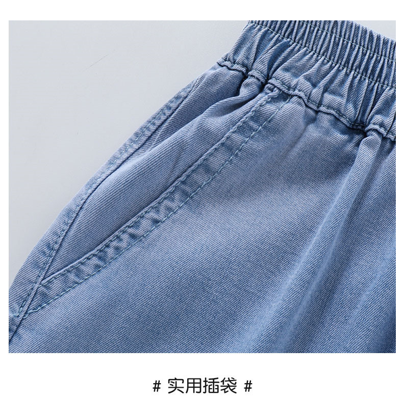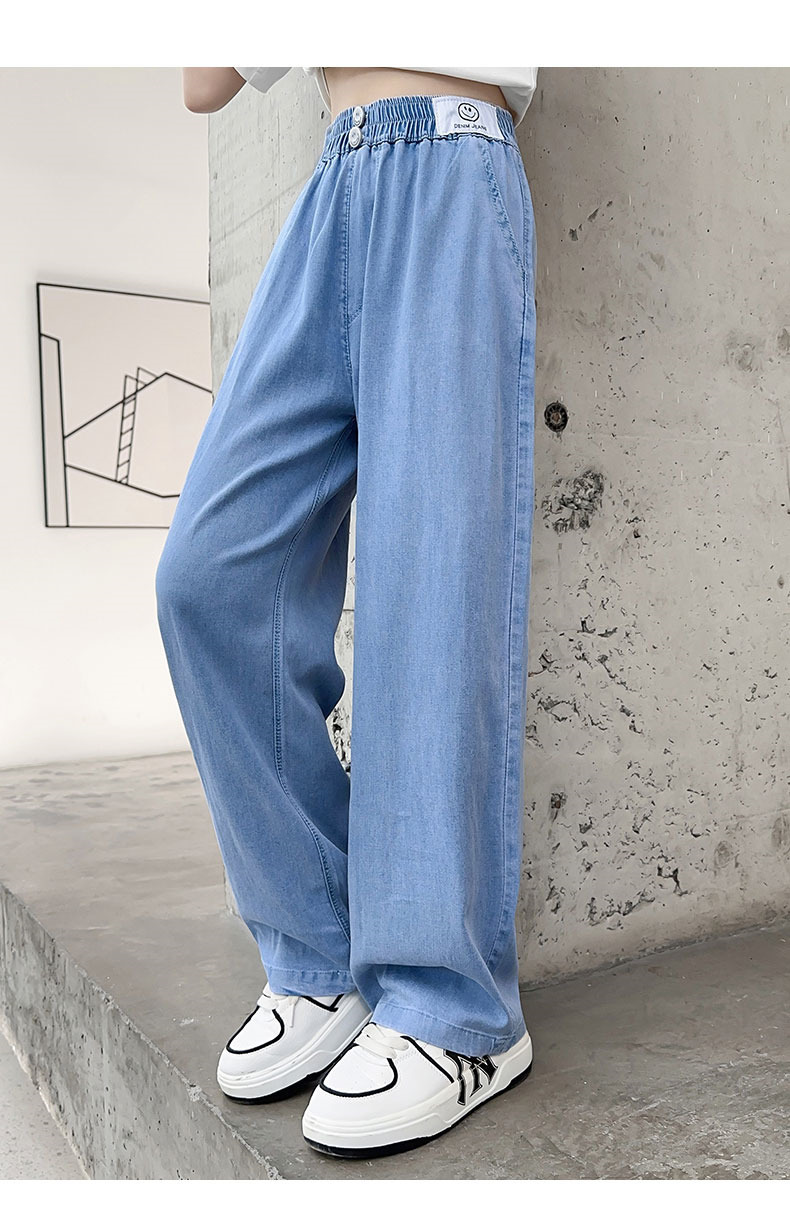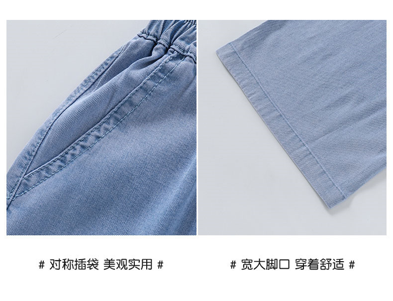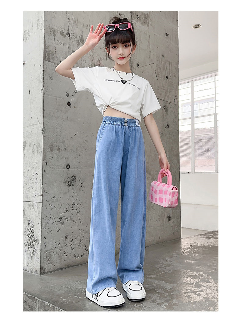 여학생 여름 얼음 실크 얇은 직선 다리 넓은 다리 청바지 초등학생 느슨한 캐주얼 중학생 여름 얇은스토어 가기
