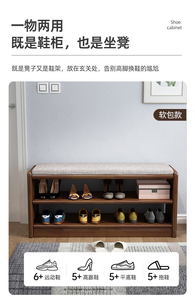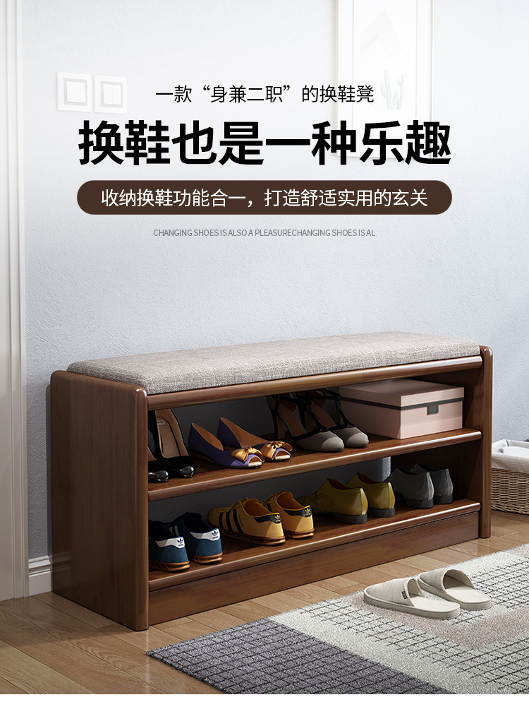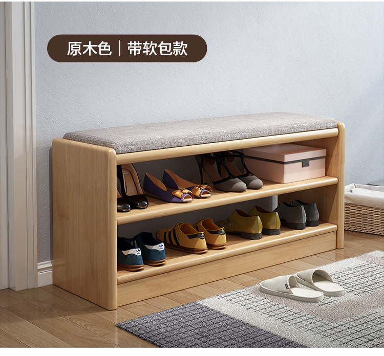 북유럽 단단한 나무 신발 의자 가정용 도어 엔트리 로그 긴 의자 간단한 거실 소프트 백 쿠션 신발장 의자