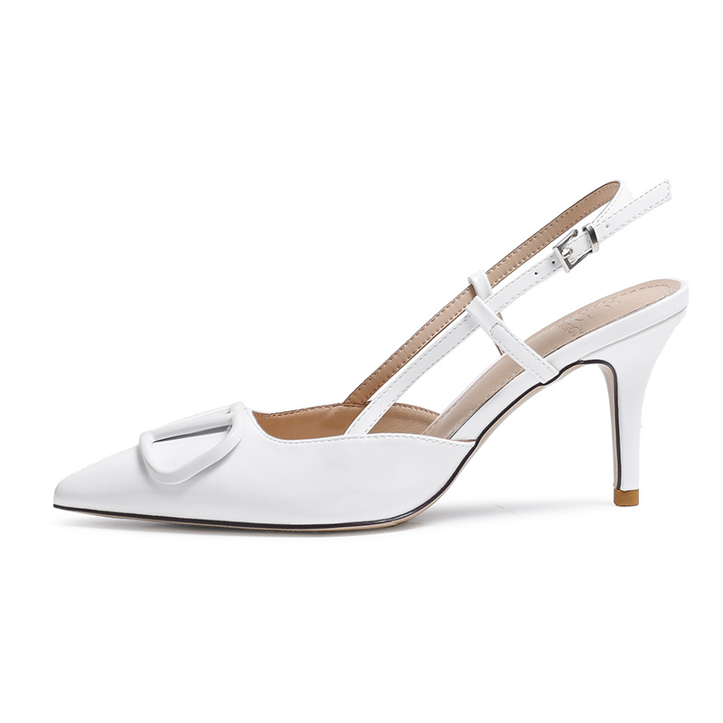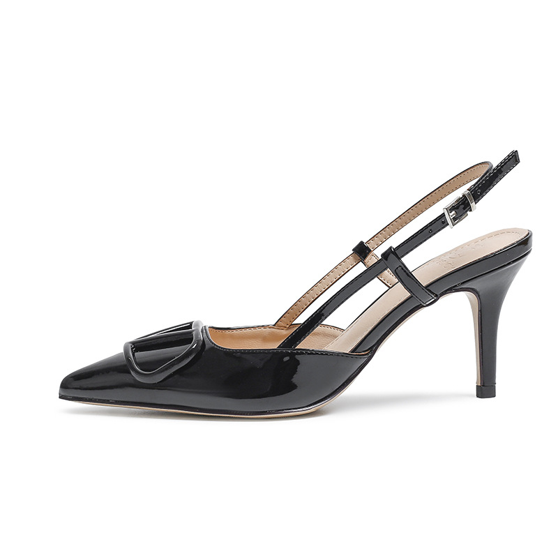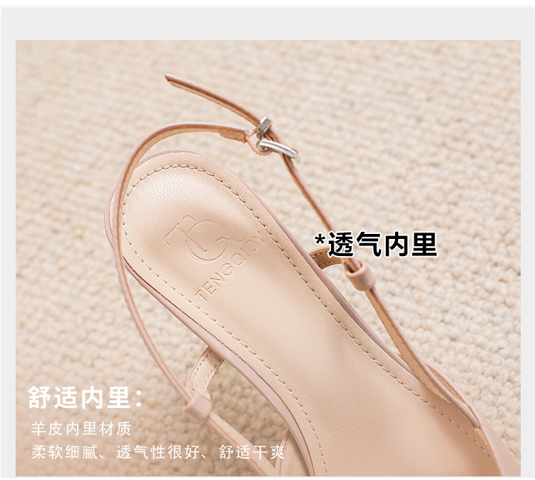 2025 신상 가을 겨울 여성용 하이힐 V자형 포인티드 토 누드 컬러 슈즈, 얇은 굽, 프렌치 스타일, 틈새 시장 요정 스타일, 바오터우 샌들