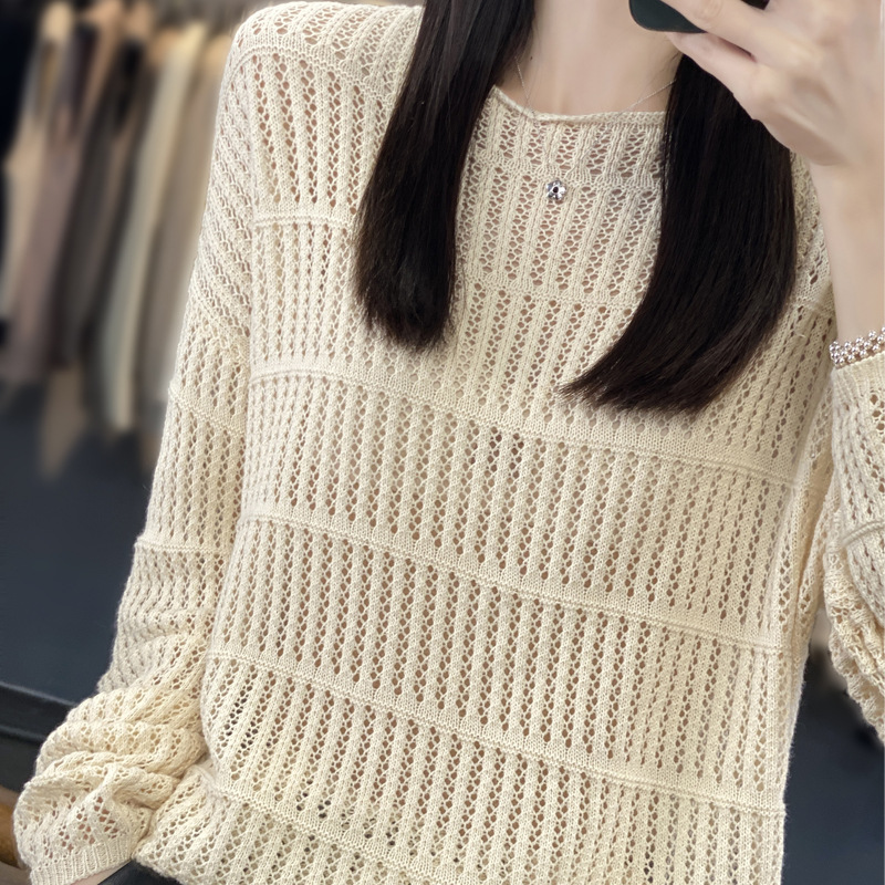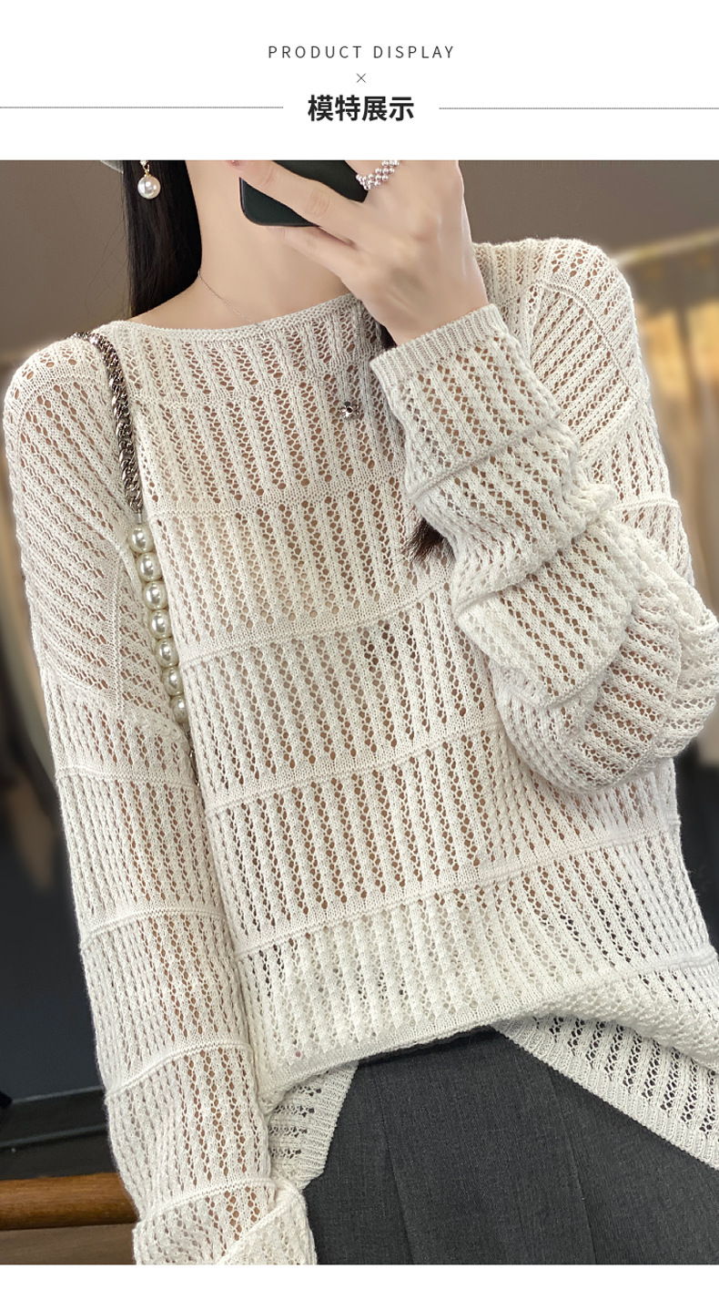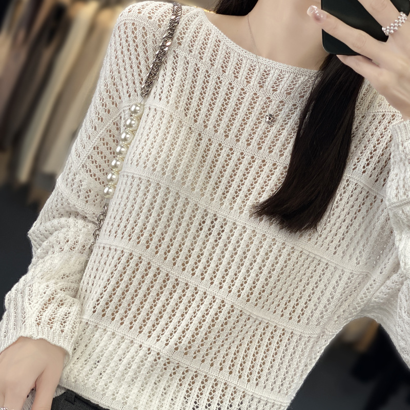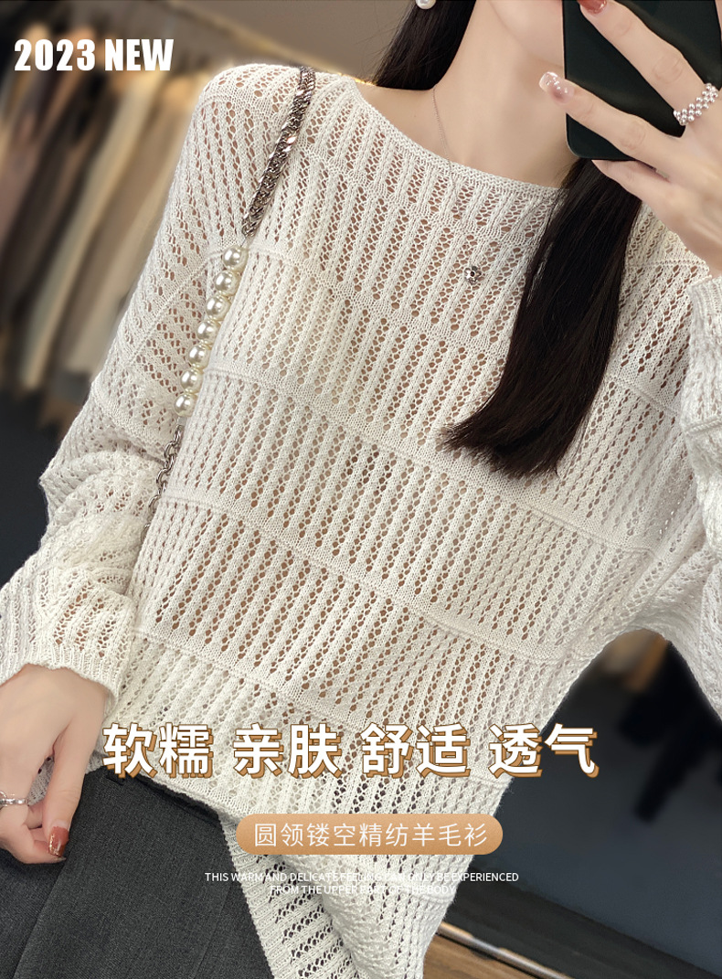 2023 봄과 여름 이탈리아 공예 패션 여성용 울 스웨터 탑 소프트 왁스 한 자 라운드 넥 느슨한 중공 스웨터