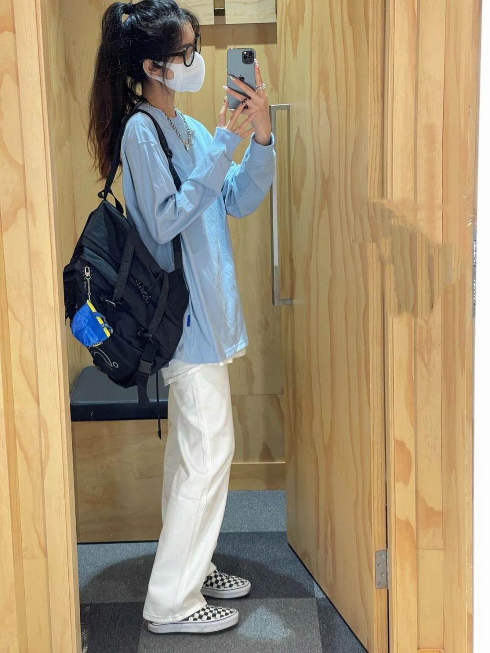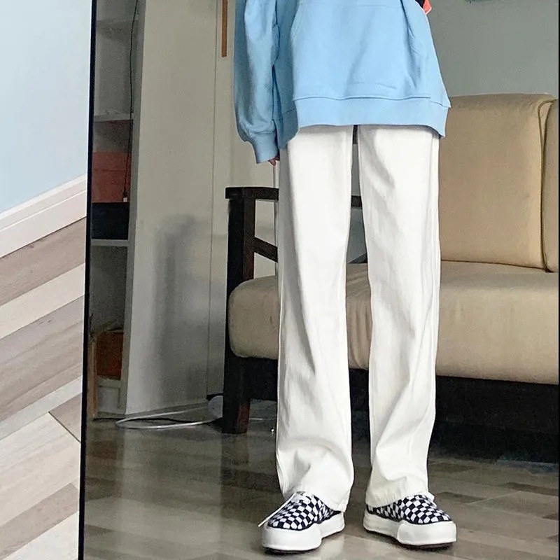 화이트 진 여성용 봄 뉴 한국식 올매치 루즈한 슬리밍 스트레이트 레그 와이드 레그 팬츠 학생스토어 가기