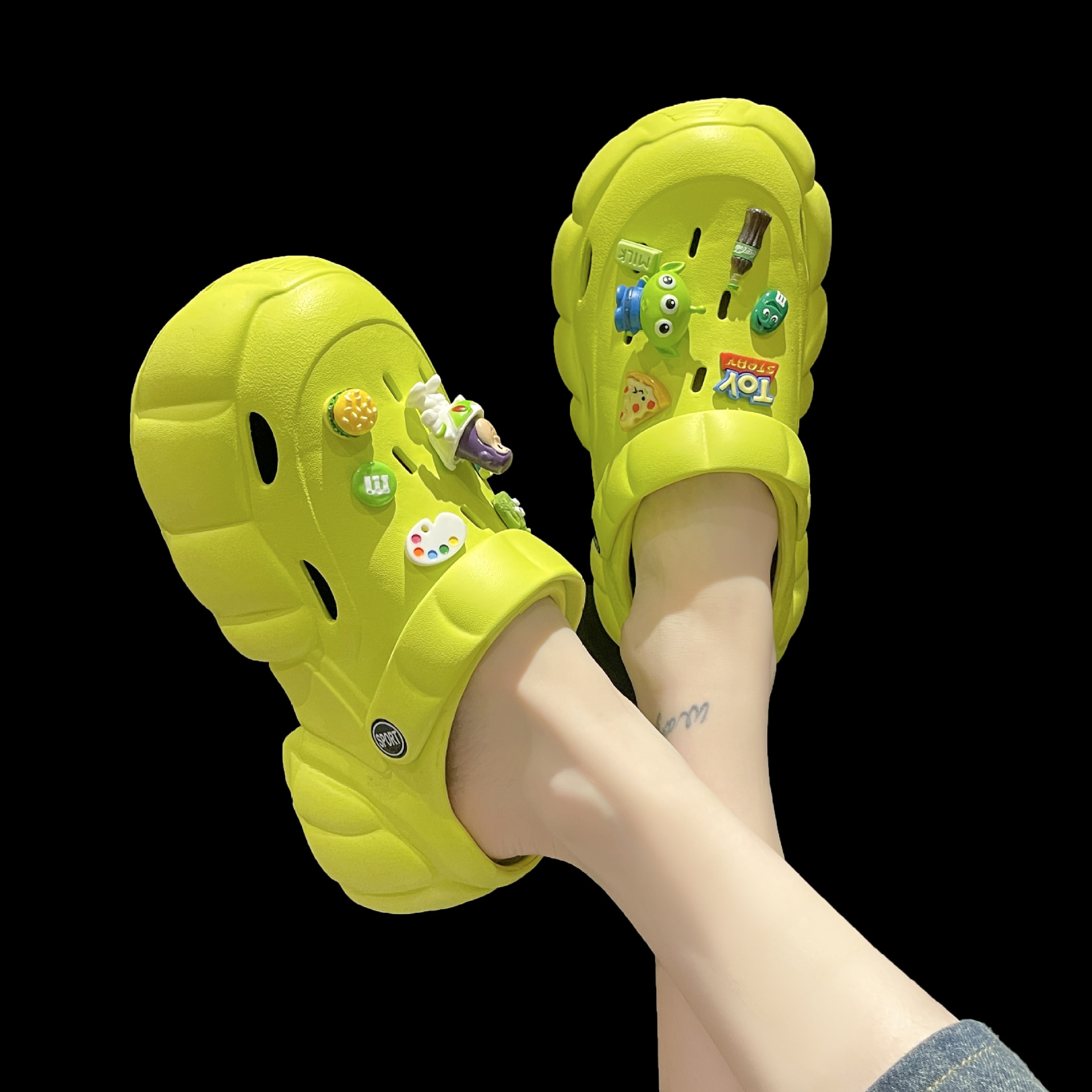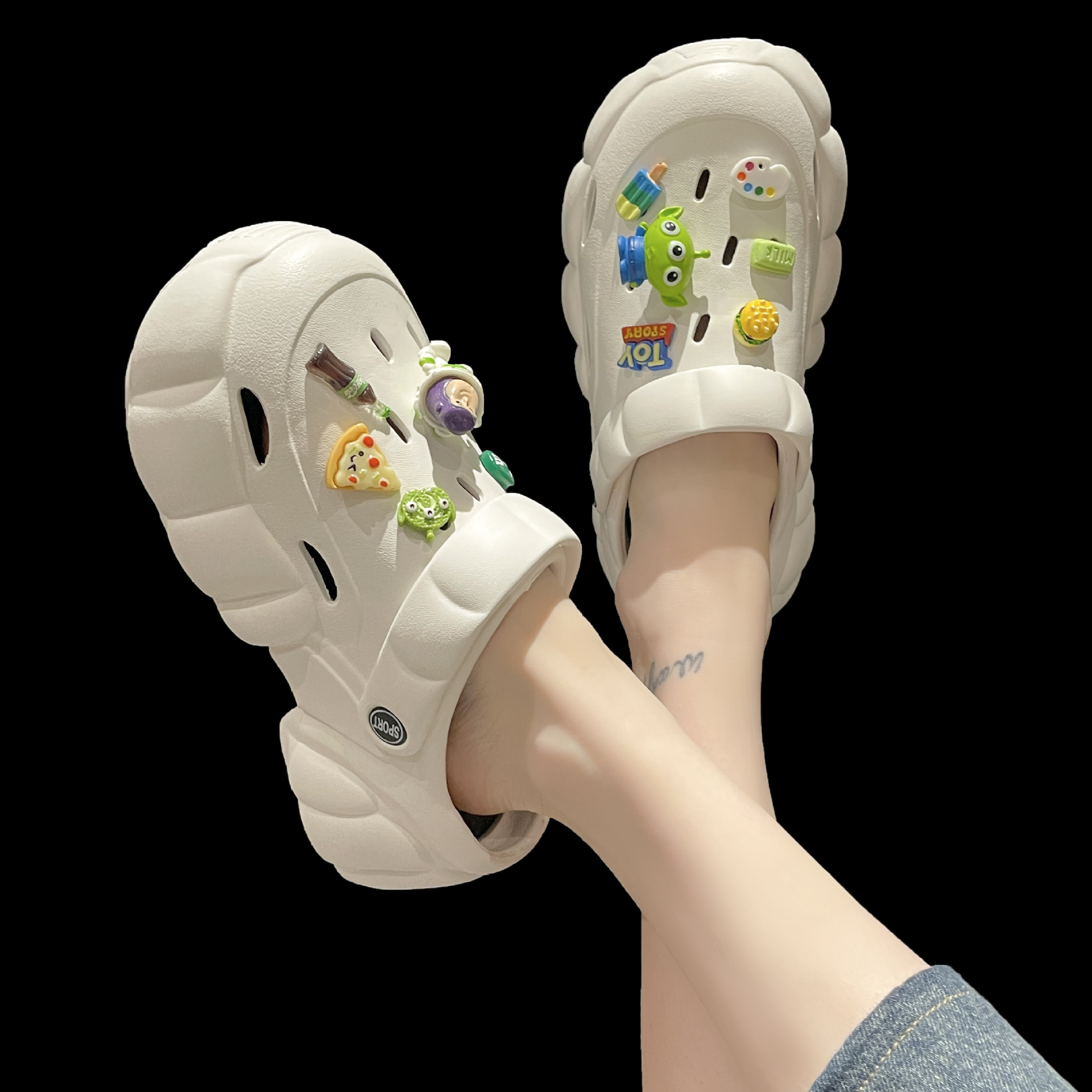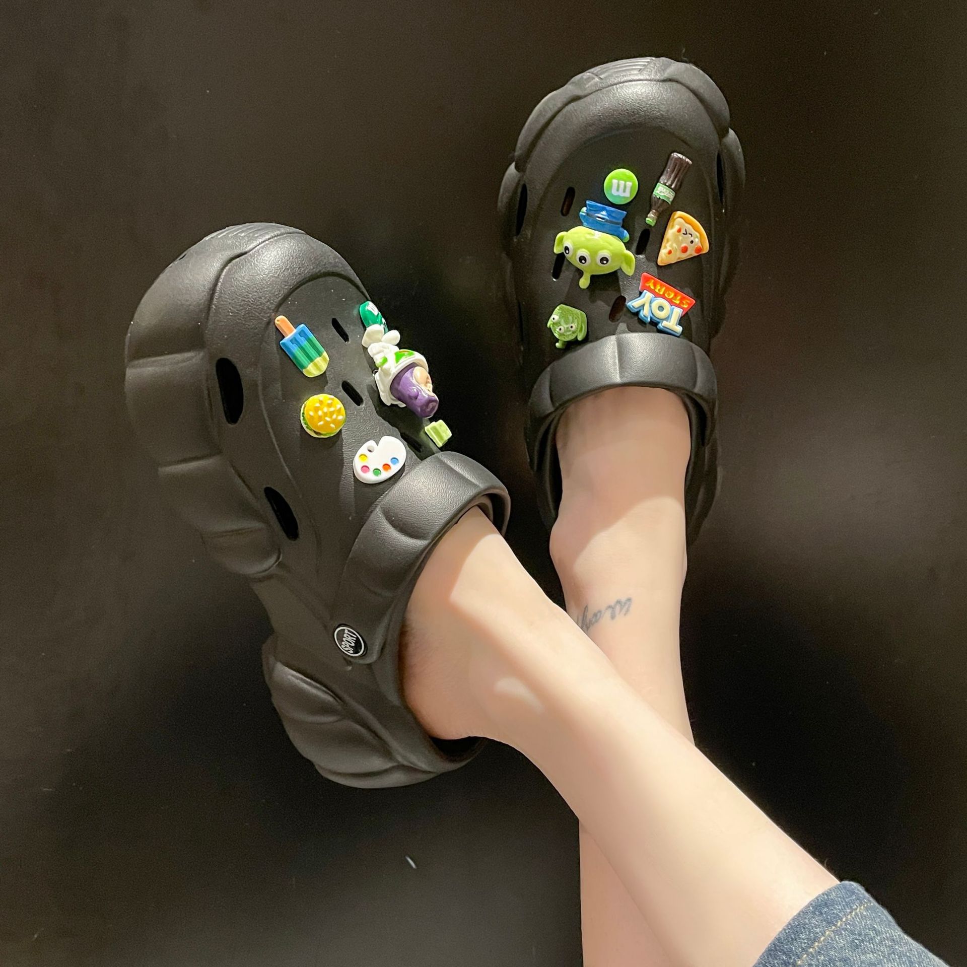2023 새로운 구멍 신발 여성용 겉옷 두꺼운 바닥 경량 두꺼운 바닥 샌들 및 슬리퍼 미끄럼 방지 비치 라인 석 샌들 및 슬리퍼스토어 가기