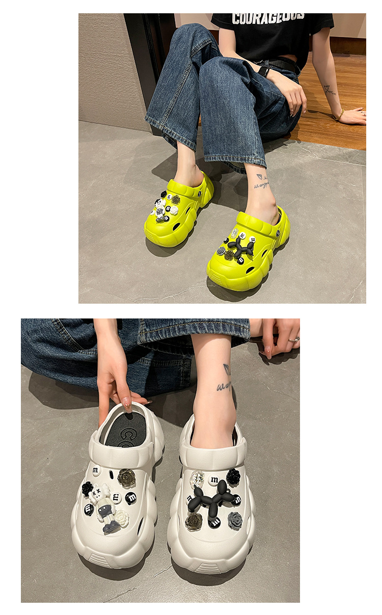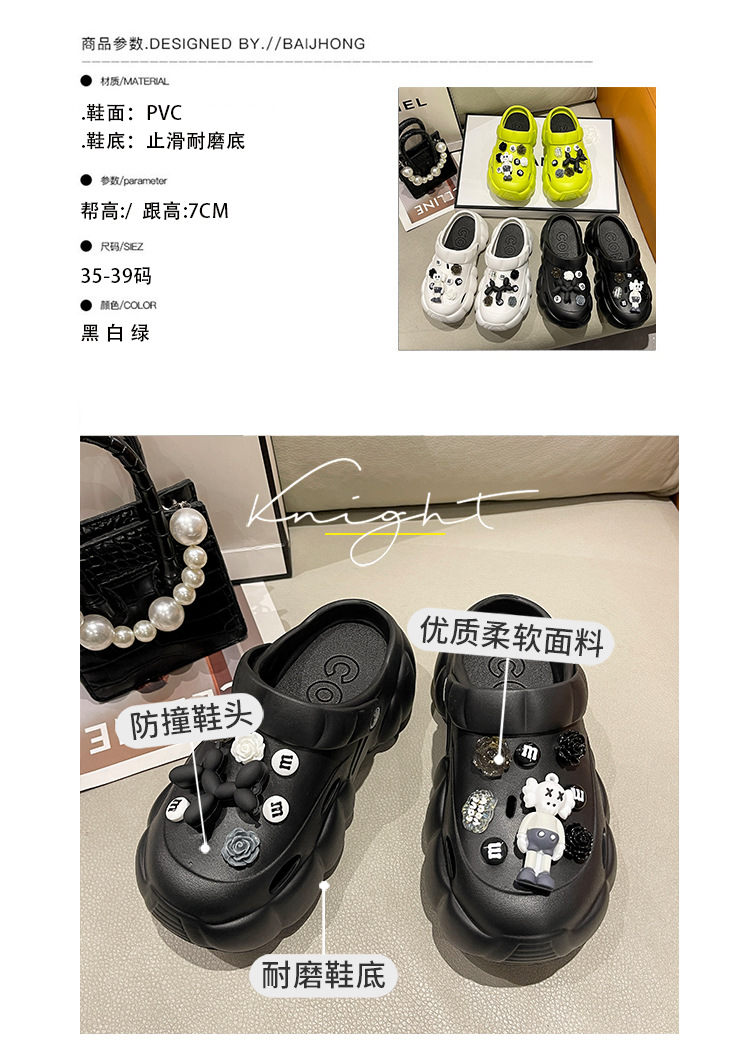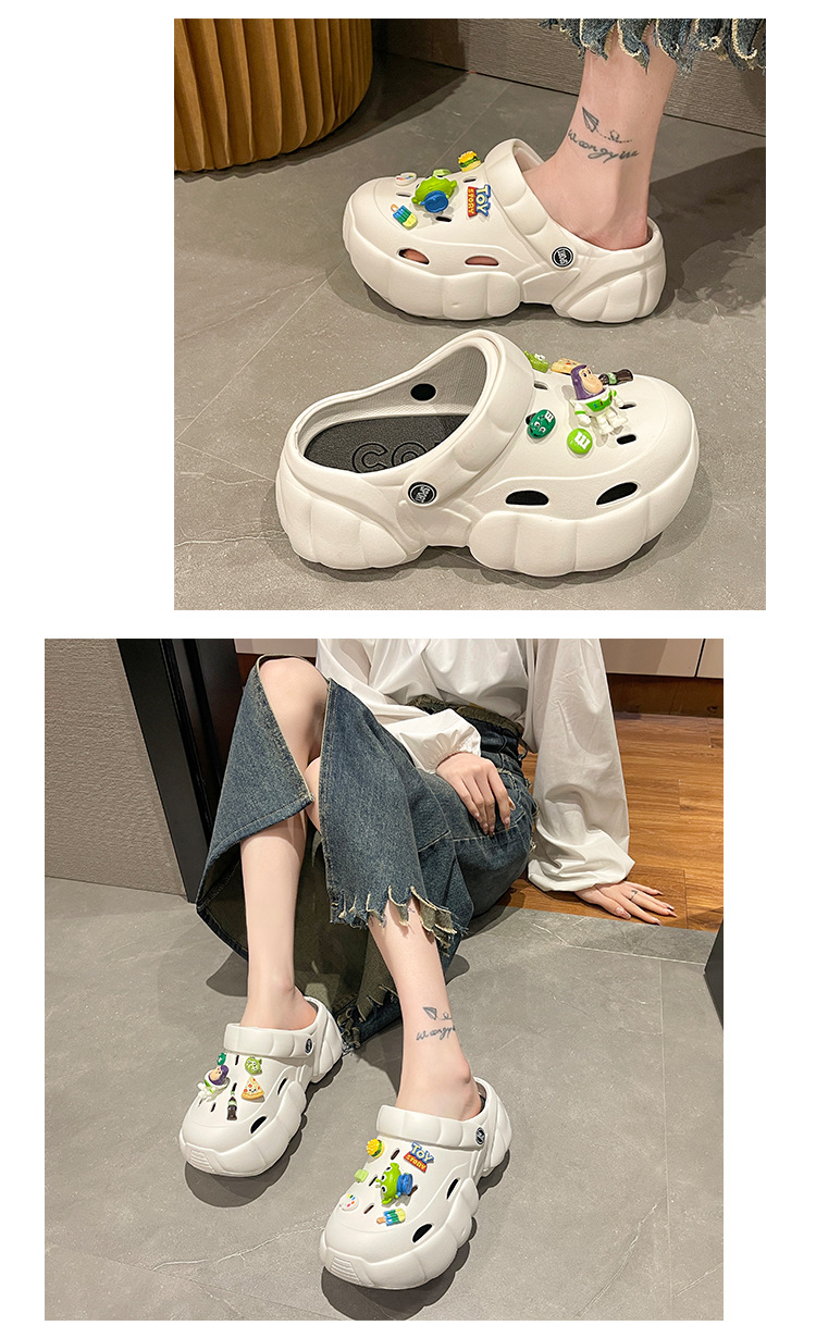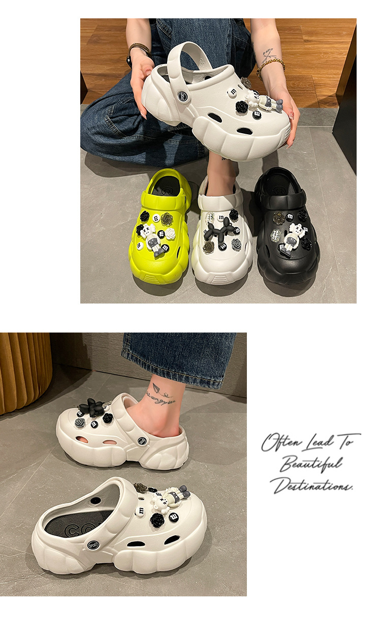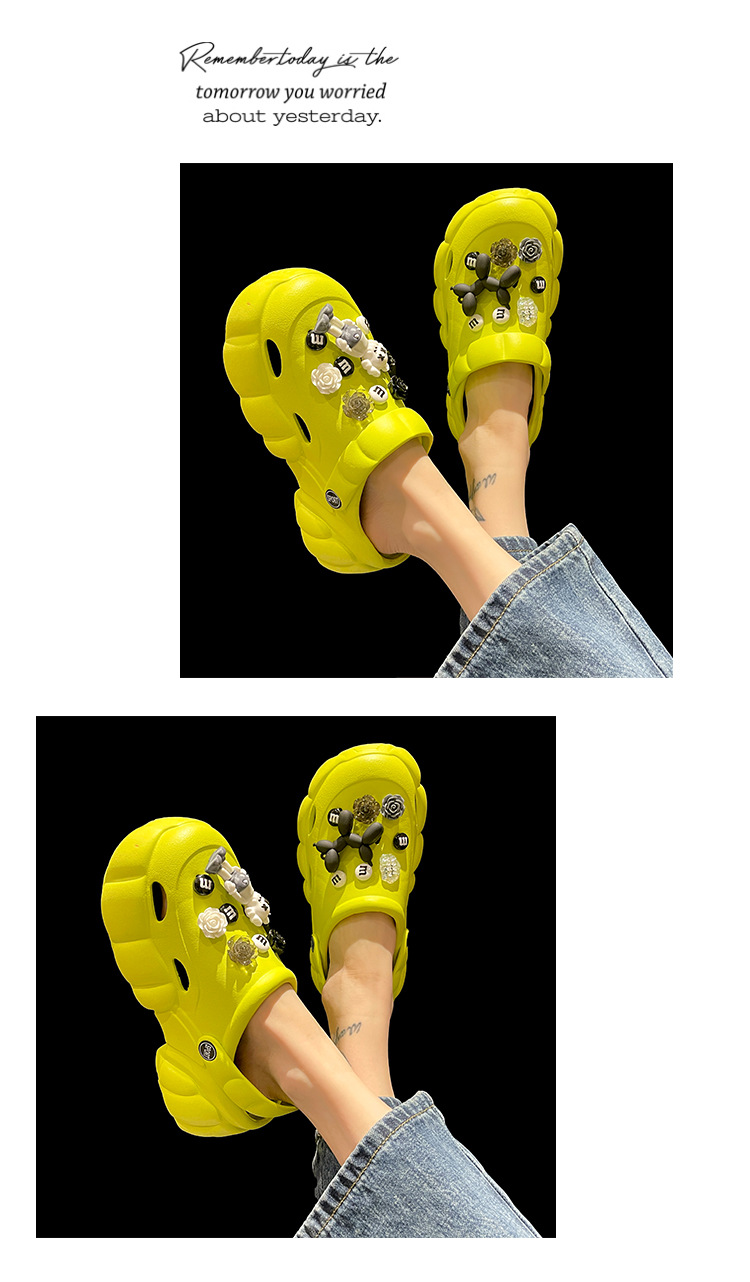 2023 새로운 구멍 신발 여성용 겉옷 두꺼운 바닥 경량 두꺼운 바닥 샌들 및 슬리퍼 미끄럼 방지 비치 라인 석 샌들 및 슬리퍼스토어 가기