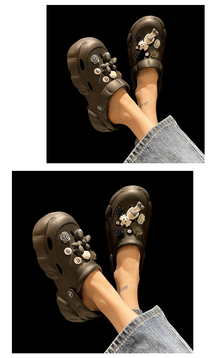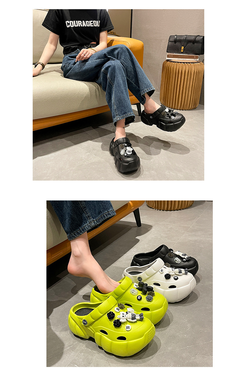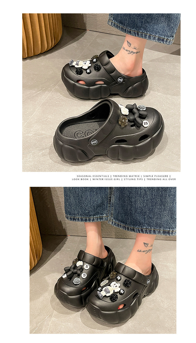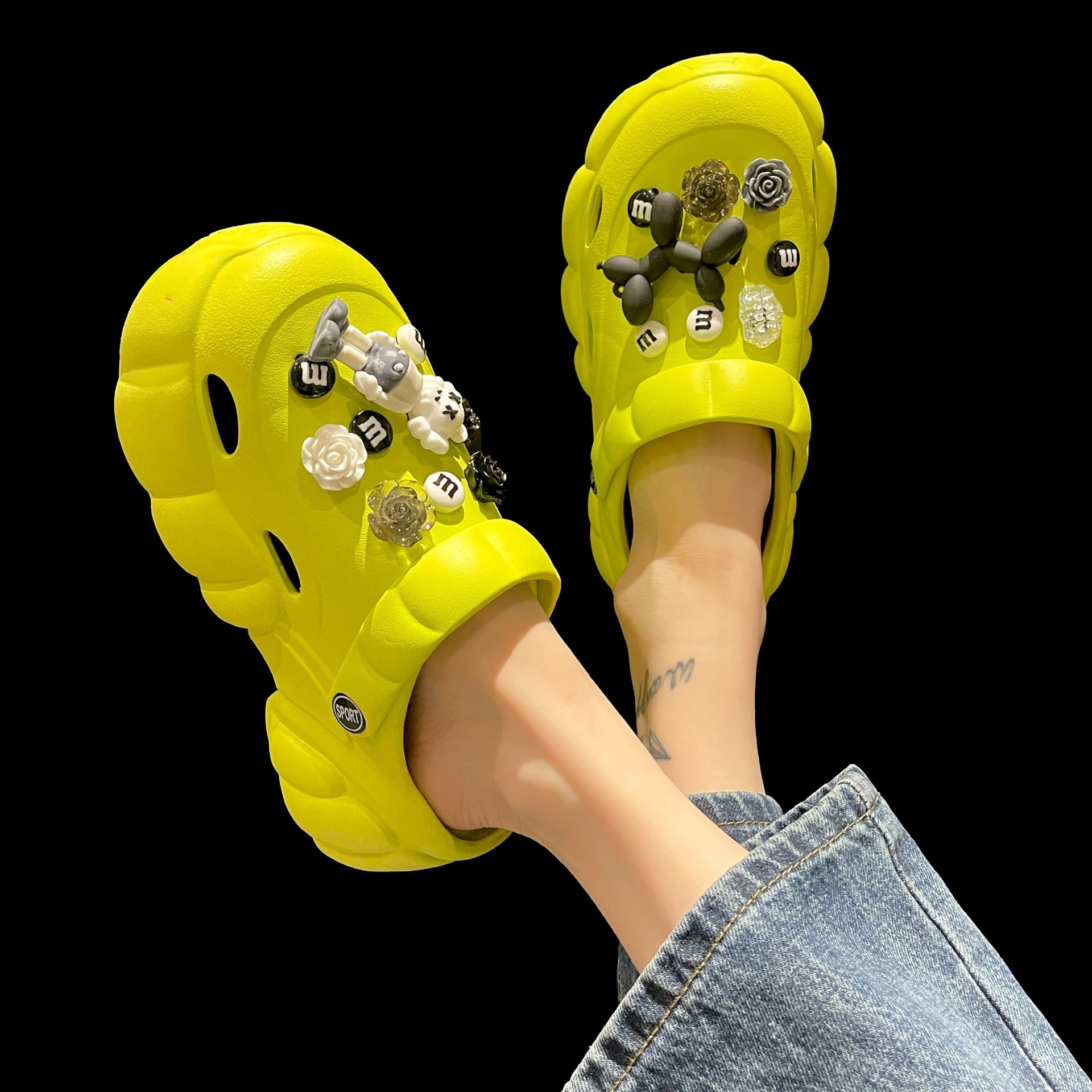 2023 새로운 구멍 신발 여성용 겉옷 두꺼운 바닥 경량 두꺼운 바닥 샌들 및 슬리퍼 미끄럼 방지 비치 라인 석 샌들 및 슬리퍼