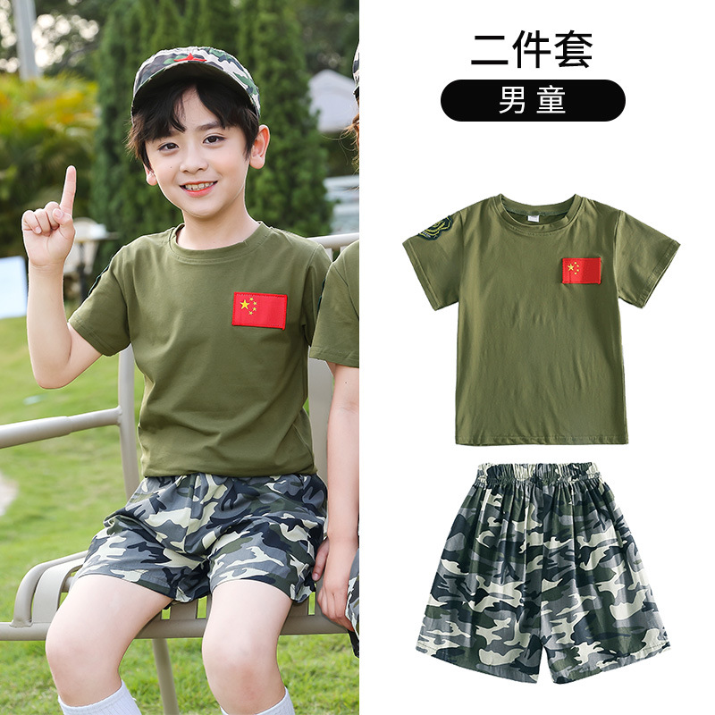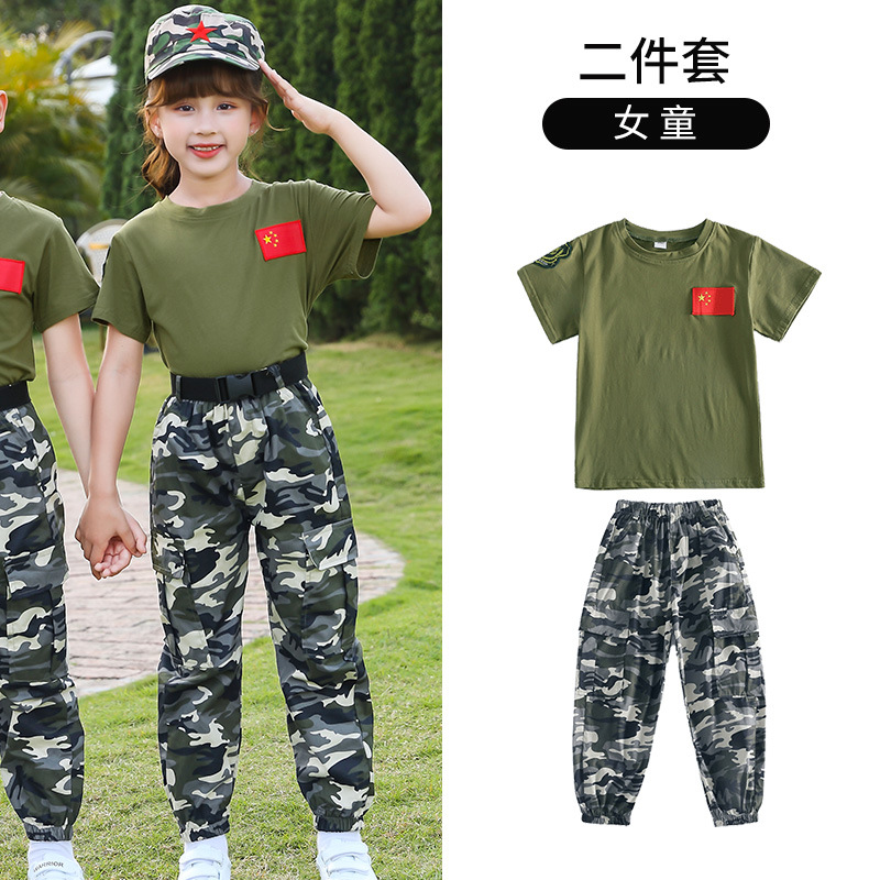 어린이 위장 세트 여름 새로운 소년 소녀 성능 의류 레저 여름 캠프 초등학생 군사 훈련 의류 짧은 소매