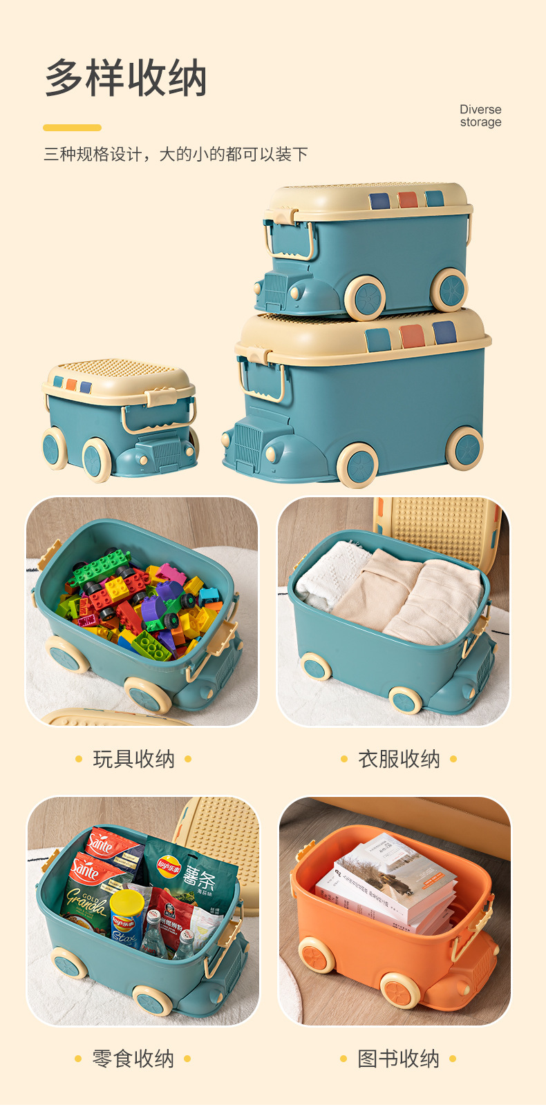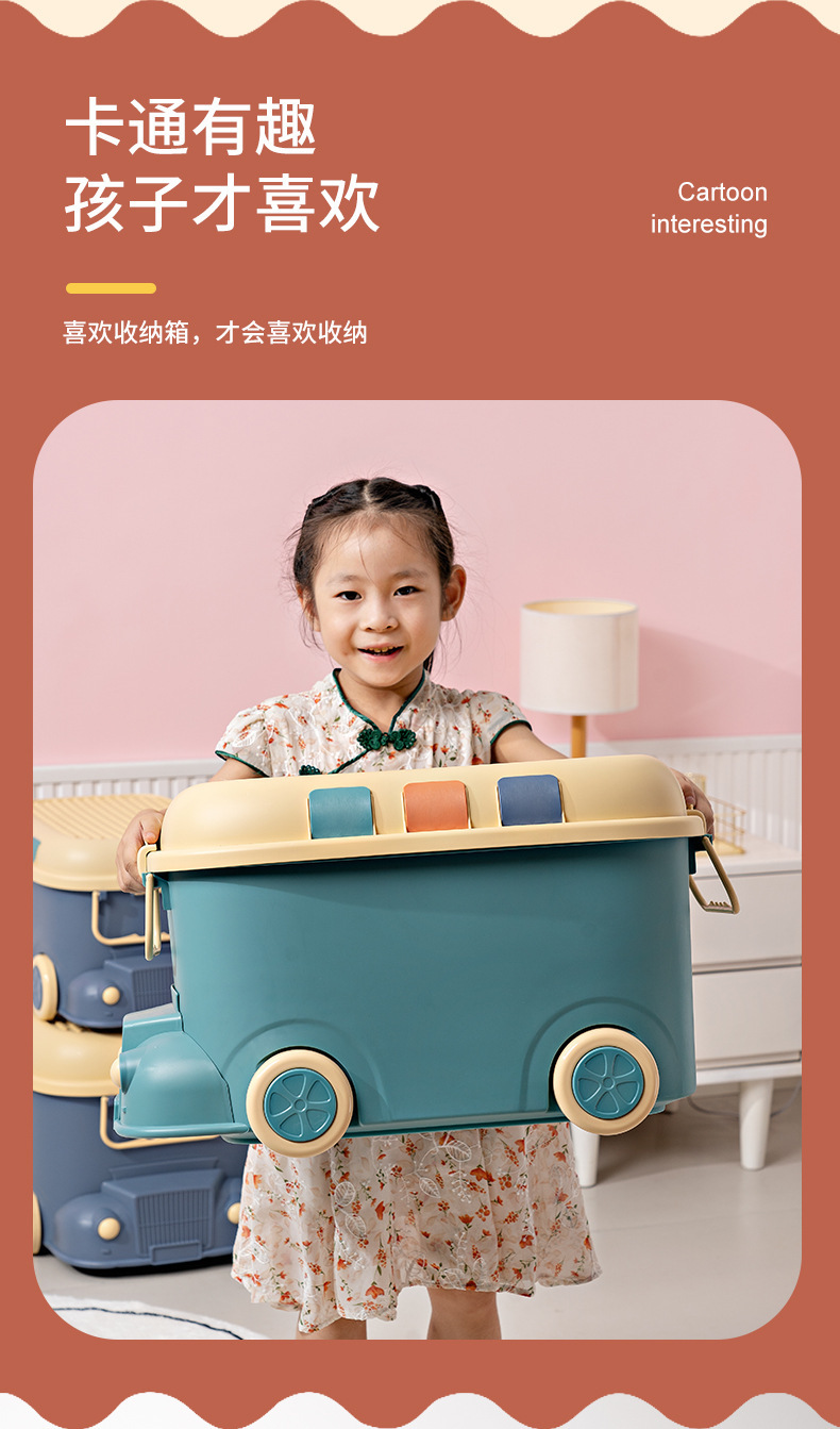 기차 모양 만화 수납함 가정용 어린이 장난감 정리 대용량 바퀴 달린 수납함 두꺼운 수납장스토어 가기