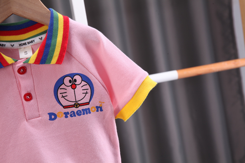 • 도라에몽 반팔 폴로 셔츠 세트 핑크