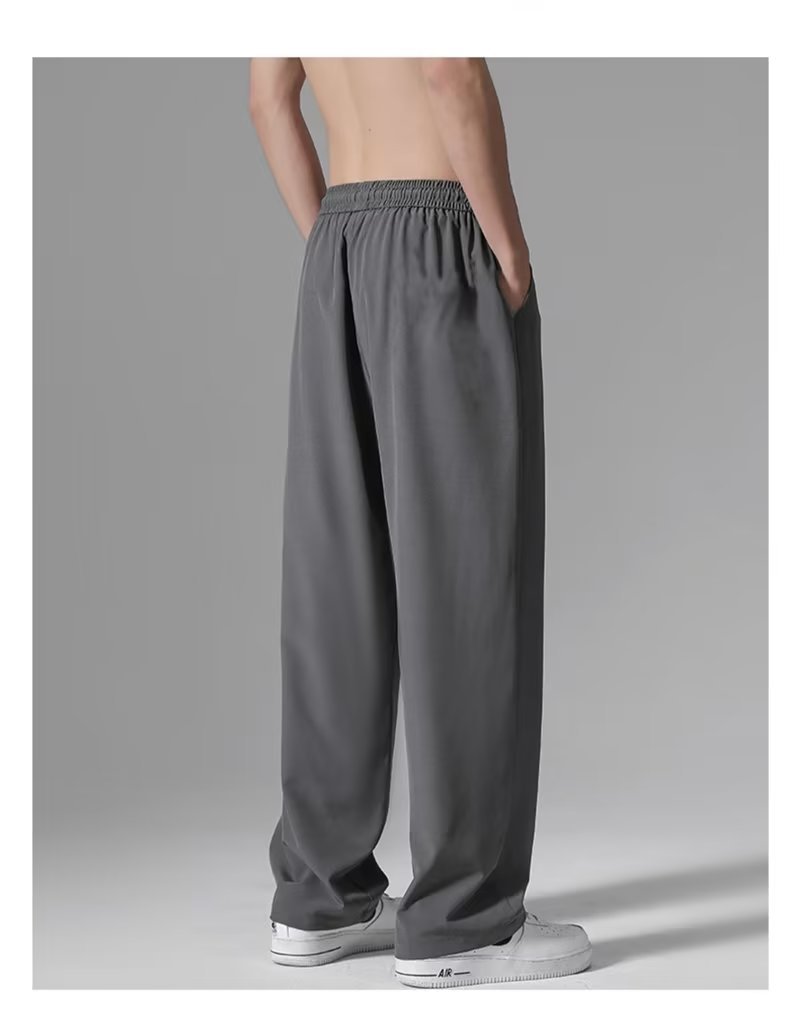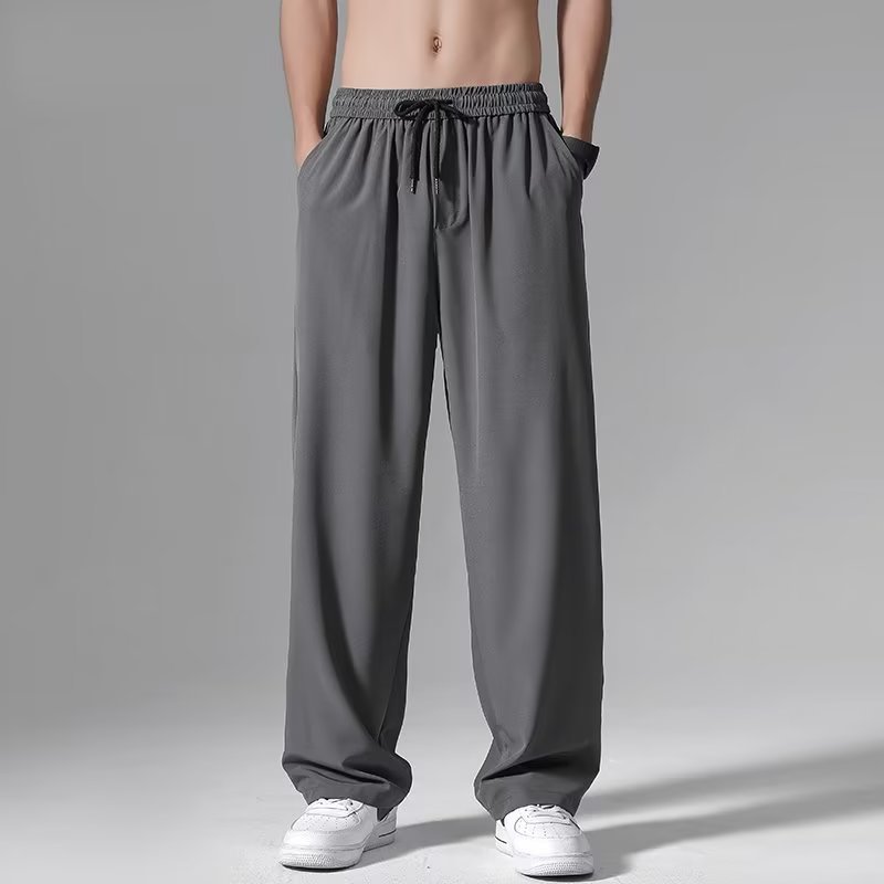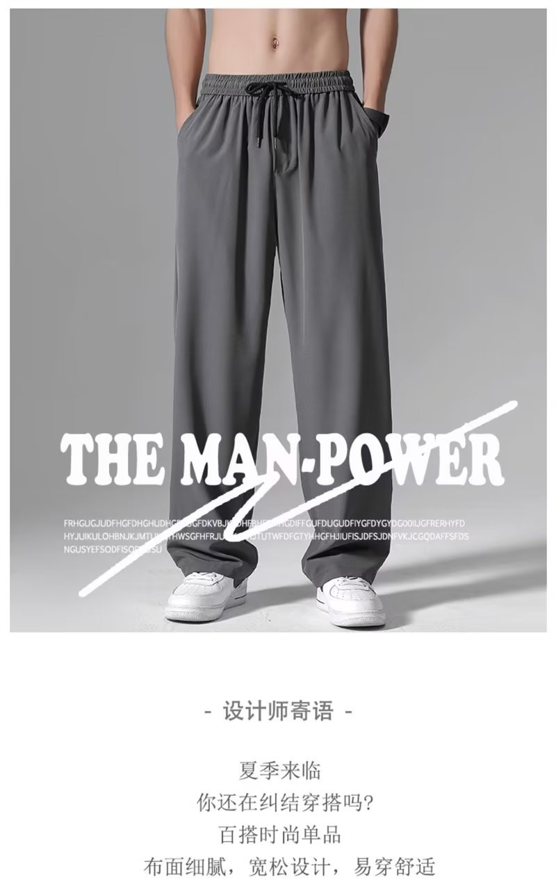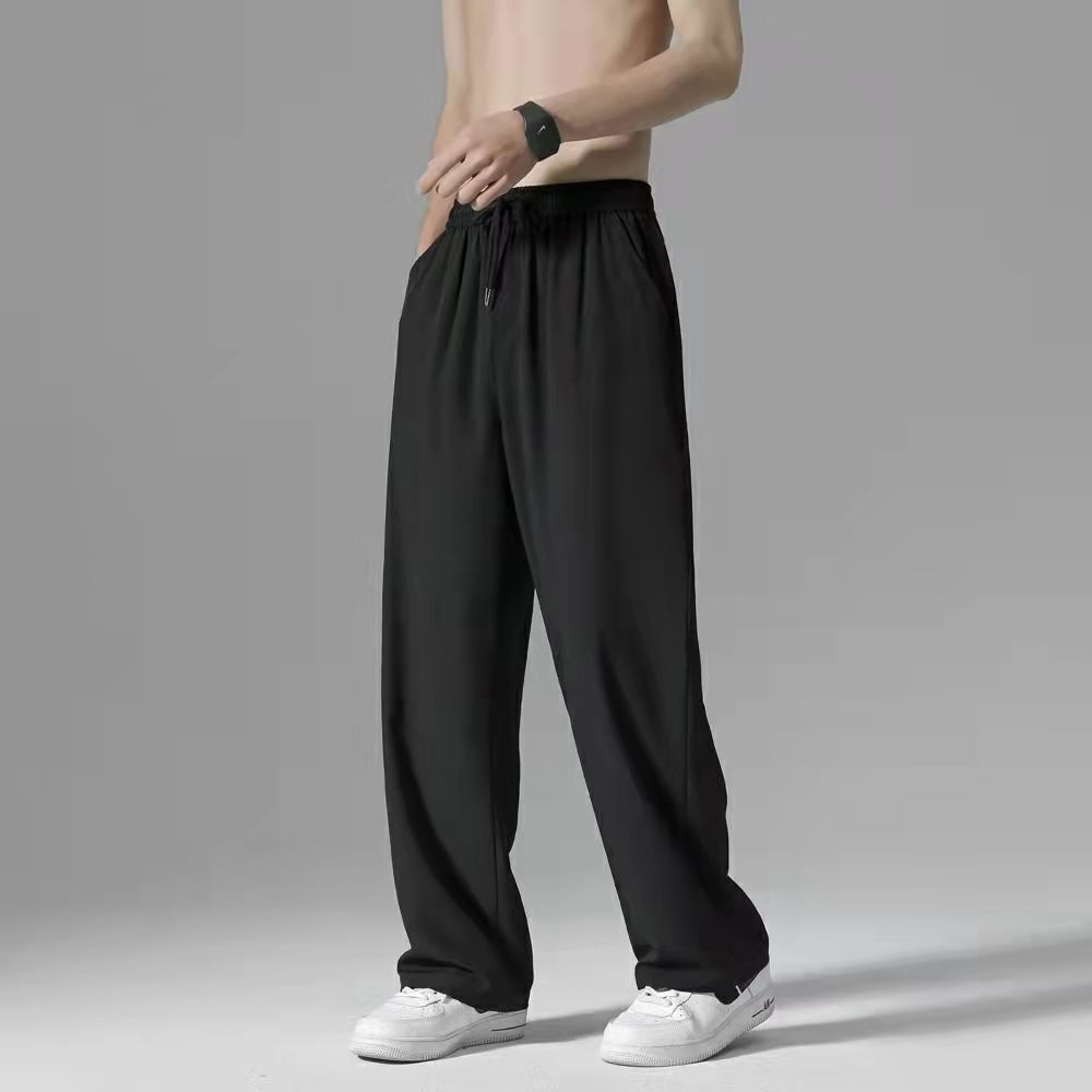아이스 실크 바지 남자의 여름 얇은 느슨한 플러스 사이즈 스트레이트 다리 와이드 팬츠 Instagram 인기 브랜드 속건 스포츠 캐주얼 바지