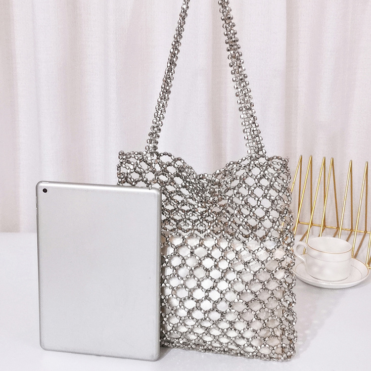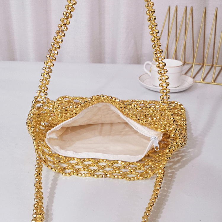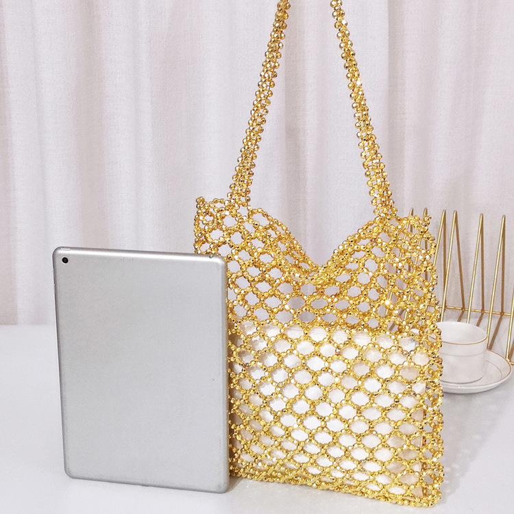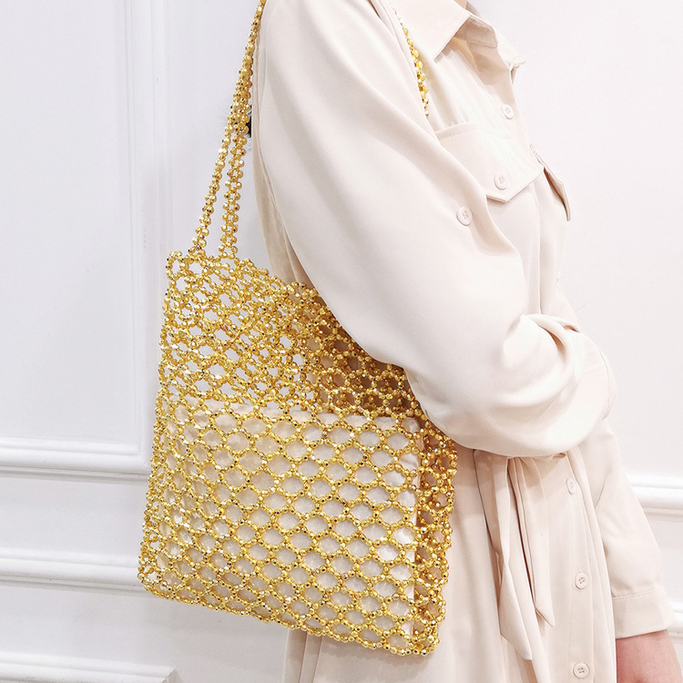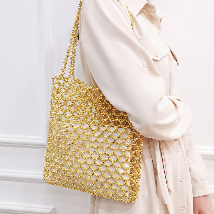 새로운 빈티지 중공업 패션 골드 아크릴 손으로 짠 중공 숄더백 수제 페르시 숄더백스토어 가기