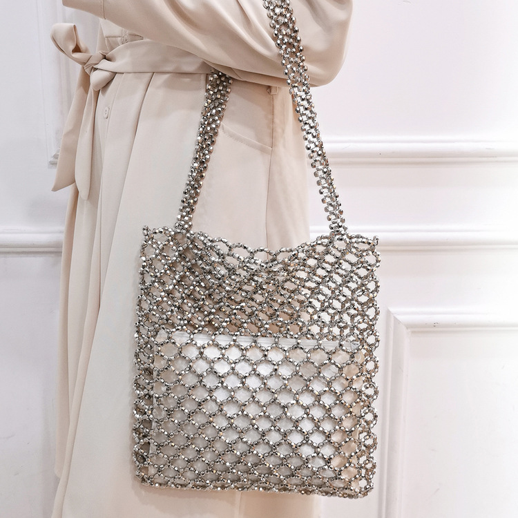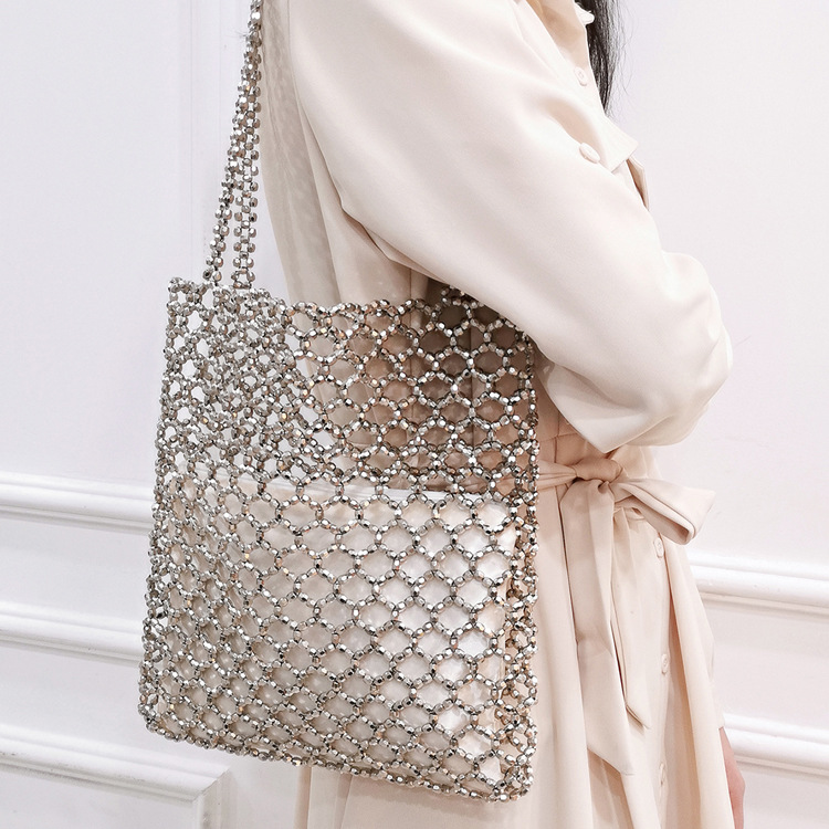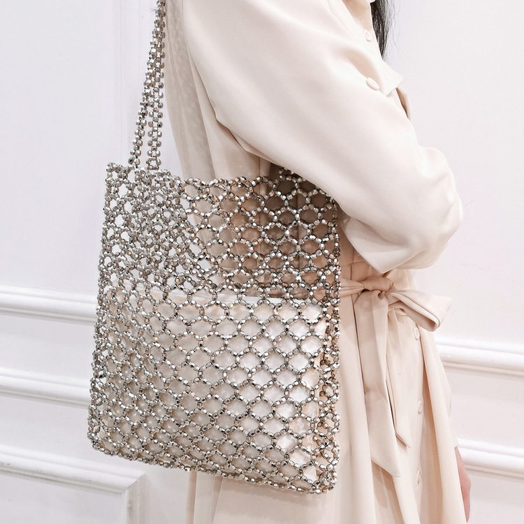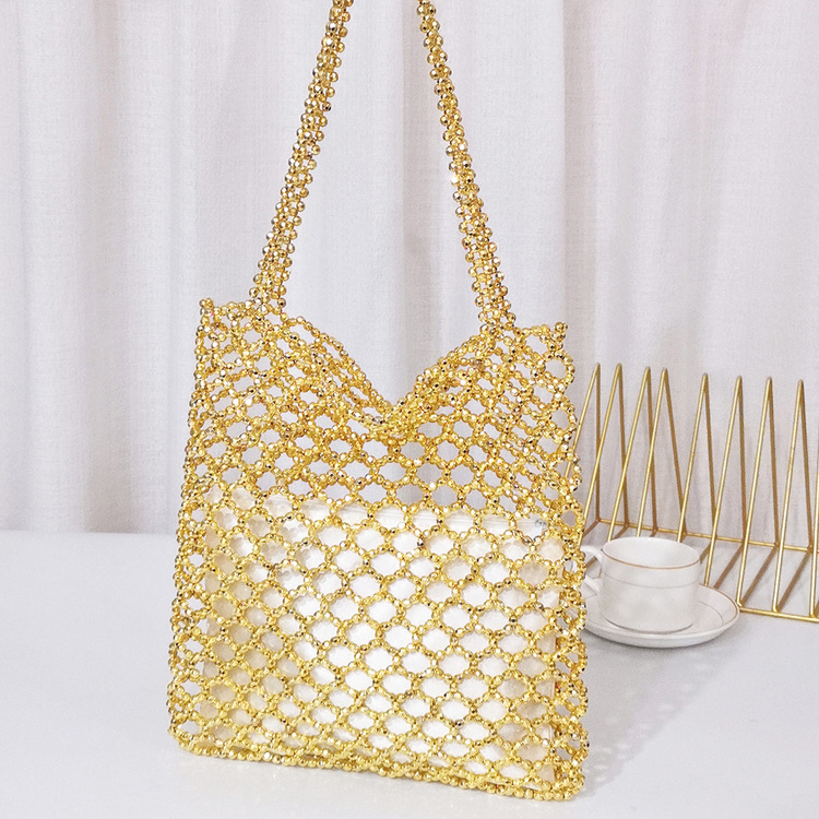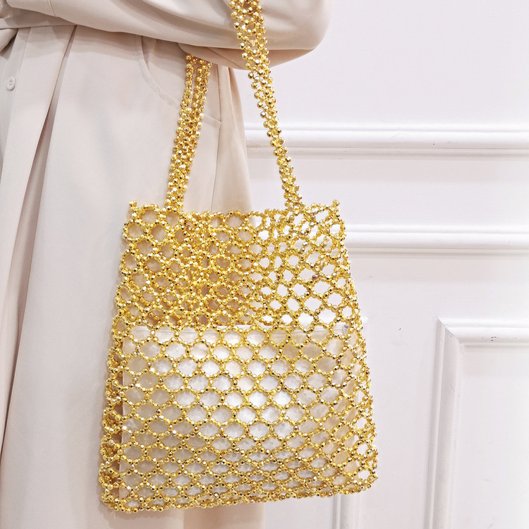 새로운 빈티지 중공업 패션 골드 아크릴 손으로 짠 중공 숄더백 수제 페르시 숄더백