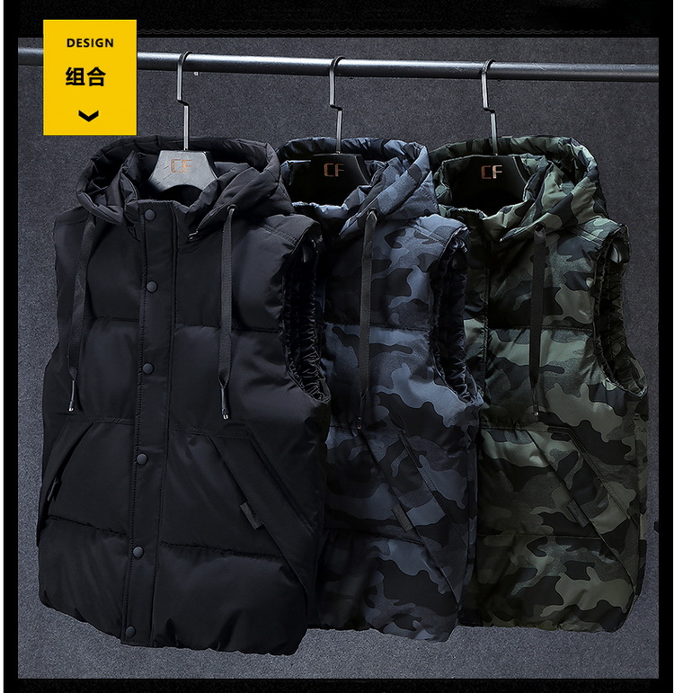 아마존 겨울 남성용 면 조끼 위장 면 패딩 코트 초대형 두꺼운 따뜻한 조끼 조끼